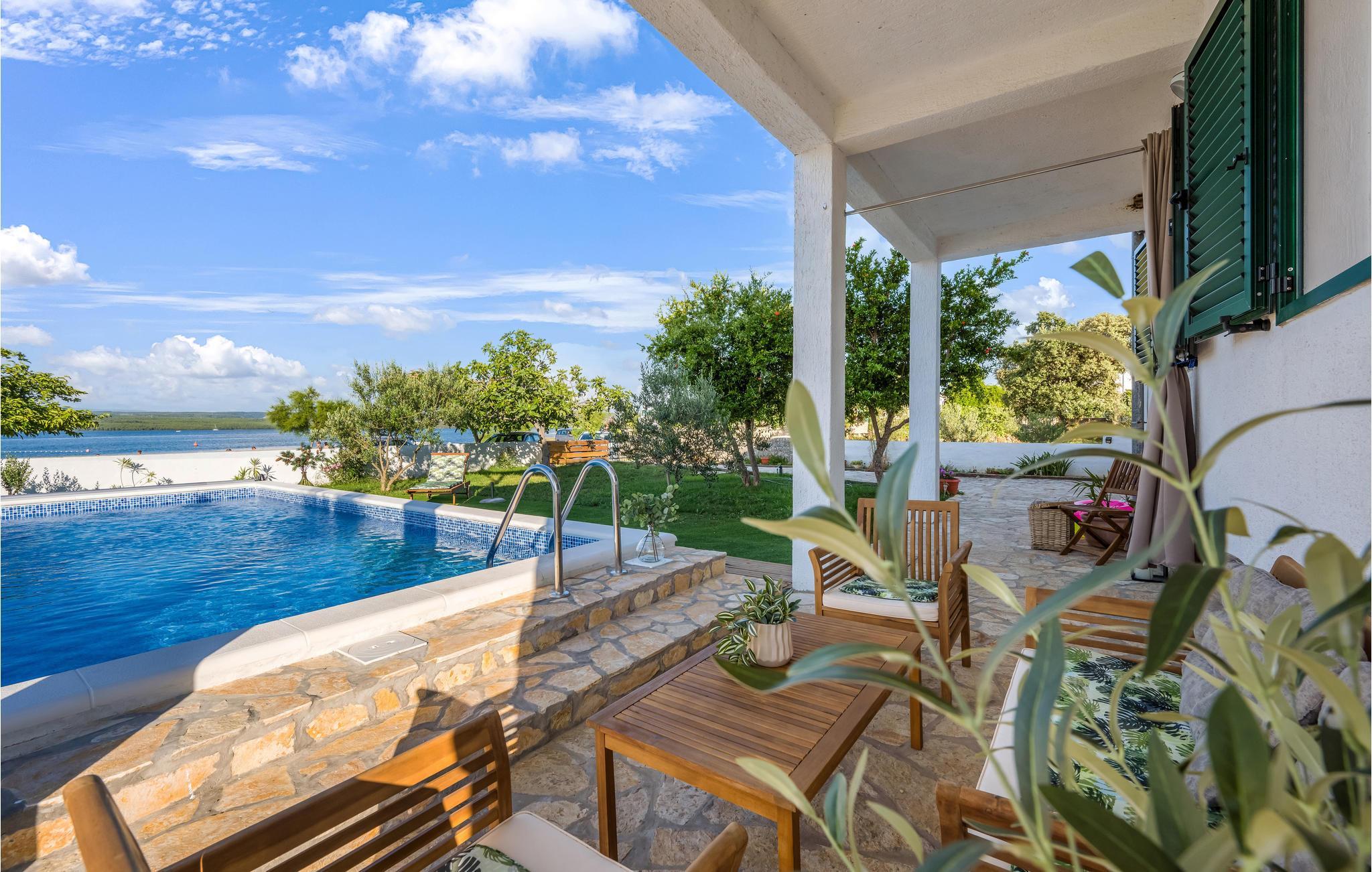 Dette moderne feriehuset med basseng er den ideelle basen for en familieferie nær stranden.