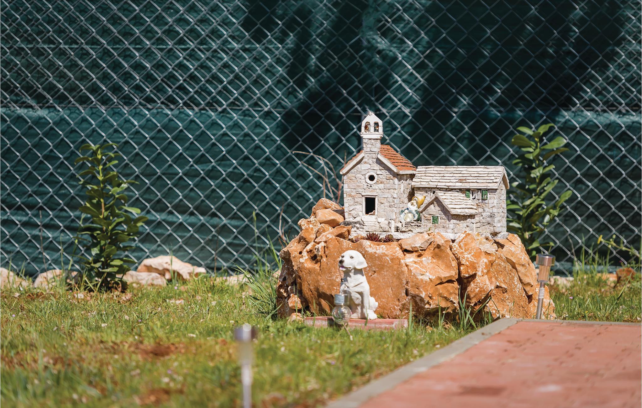 Den romslige, fullt inngjerdede hagen på 1900 m2 gir gjestene privatliv hvor de kan nyte de vakre dalmatiske omgivelsene, tilberede måltider på utegrillen eller slappe av på komfortable solsenger ved bassenget. På varme dager kan du forfriske deg i det private bassenget, og de yngste gjestene vil garantert like å leke på lekeplassen.