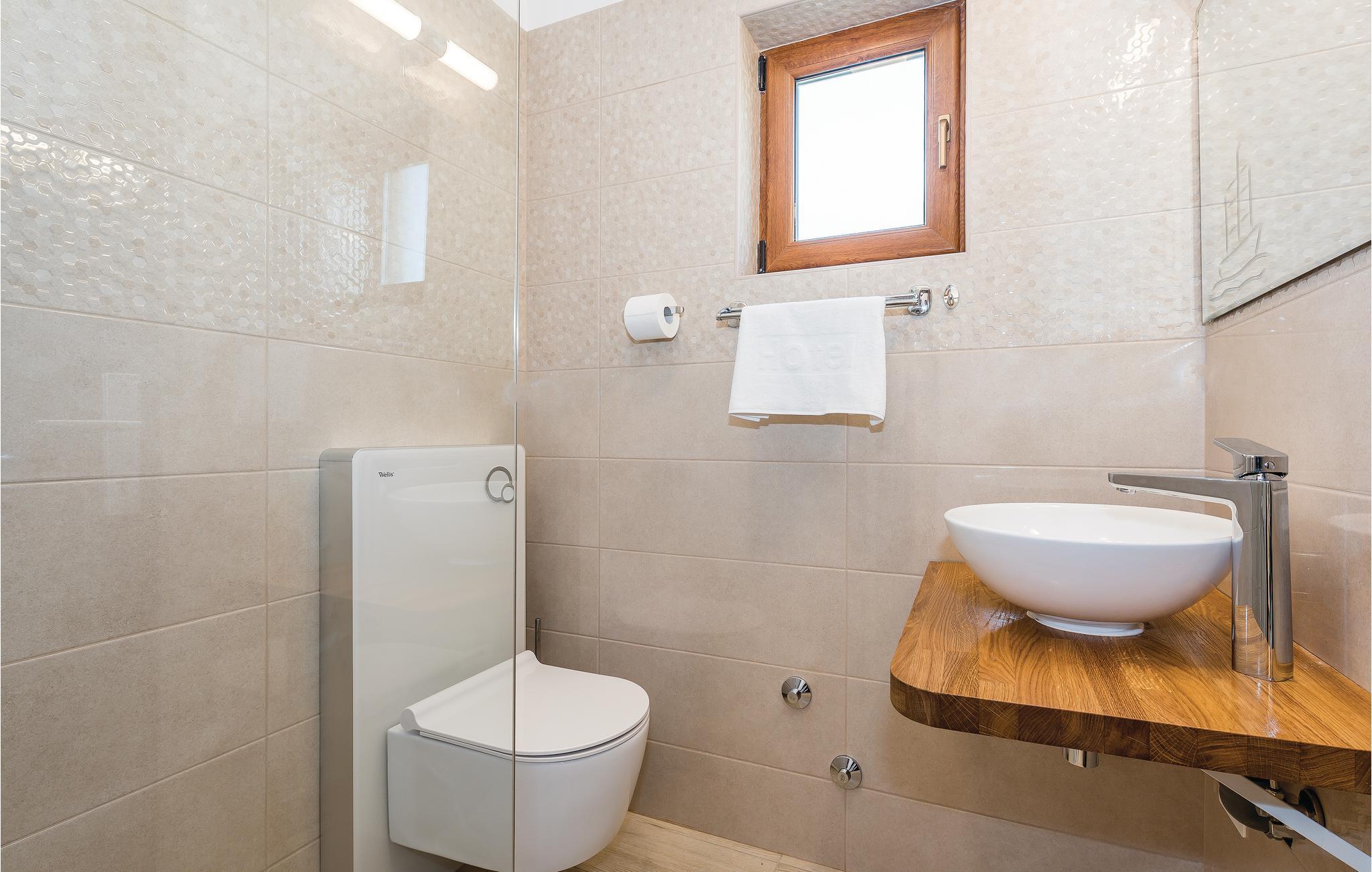- WC med varmt og kaldt vann, Dusj