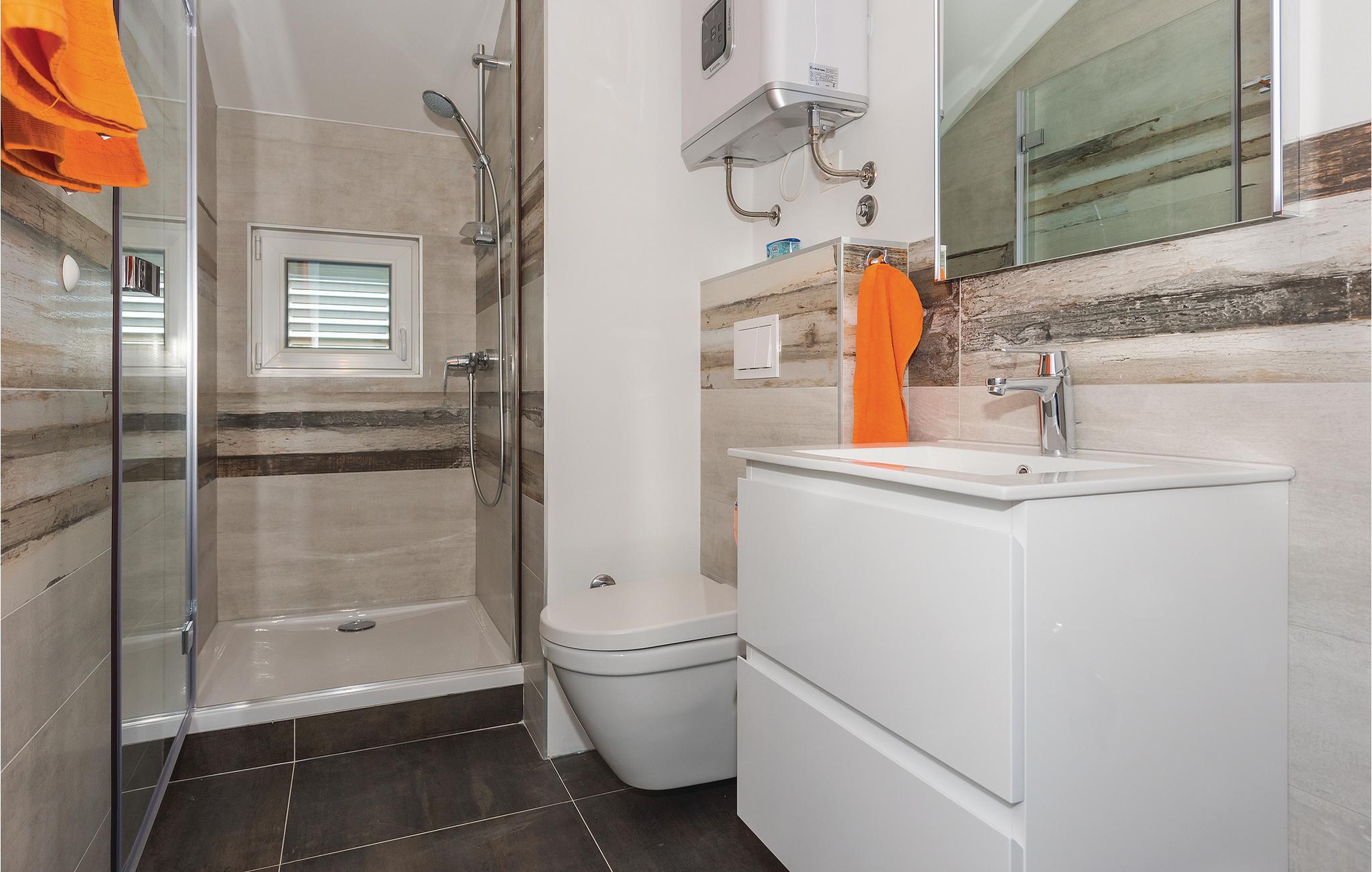 - WC med varmt og kaldt vann, Dusj