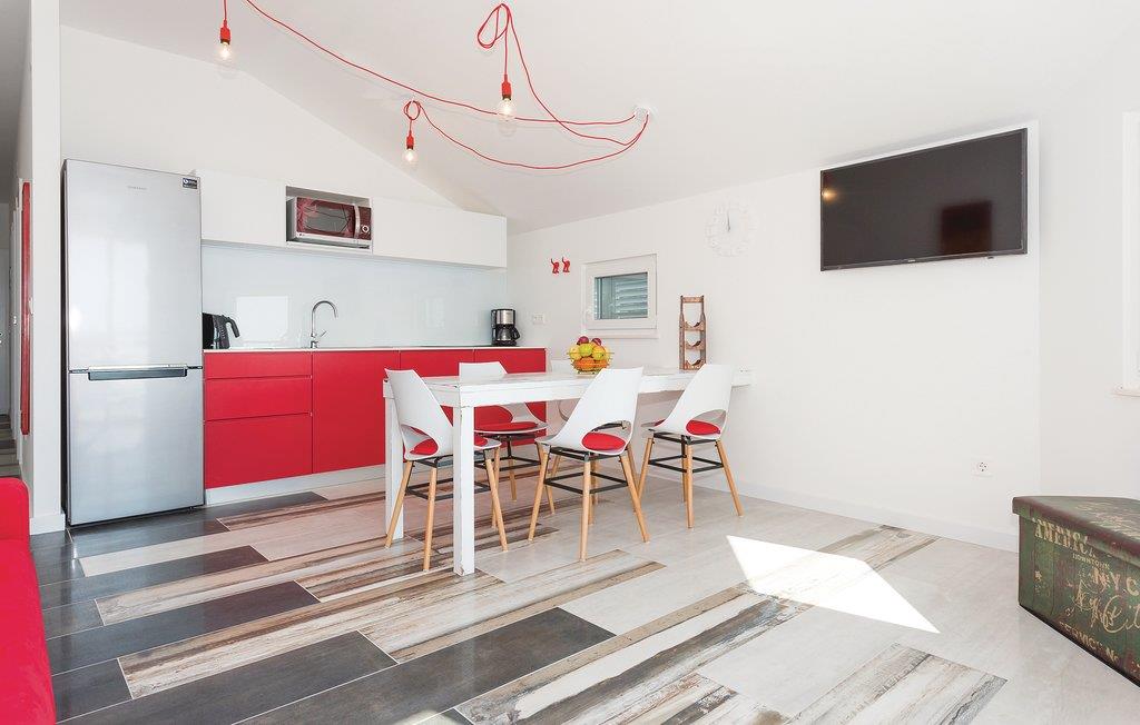 Disse to moderne innredede ferieleilighetene i Brodarica ligger nær kysten og venter på deg i nærheten av Ibenik. CDJ448 ligger i andre etasje og CDJ449 i første etasje. Fra terrassene til begge leilighetene er det en vakker utsikt over havet og den nærliggende øya Krapanj. De leies ut sammen, og er ideelle for familier eller en større vennegjeng. Du kan tilberede deilige måltider på den felles grillen. Du kan bade på stein- og rullesteinstrendene og de nærliggende øyene, som du kan nå ved å leie en båt.