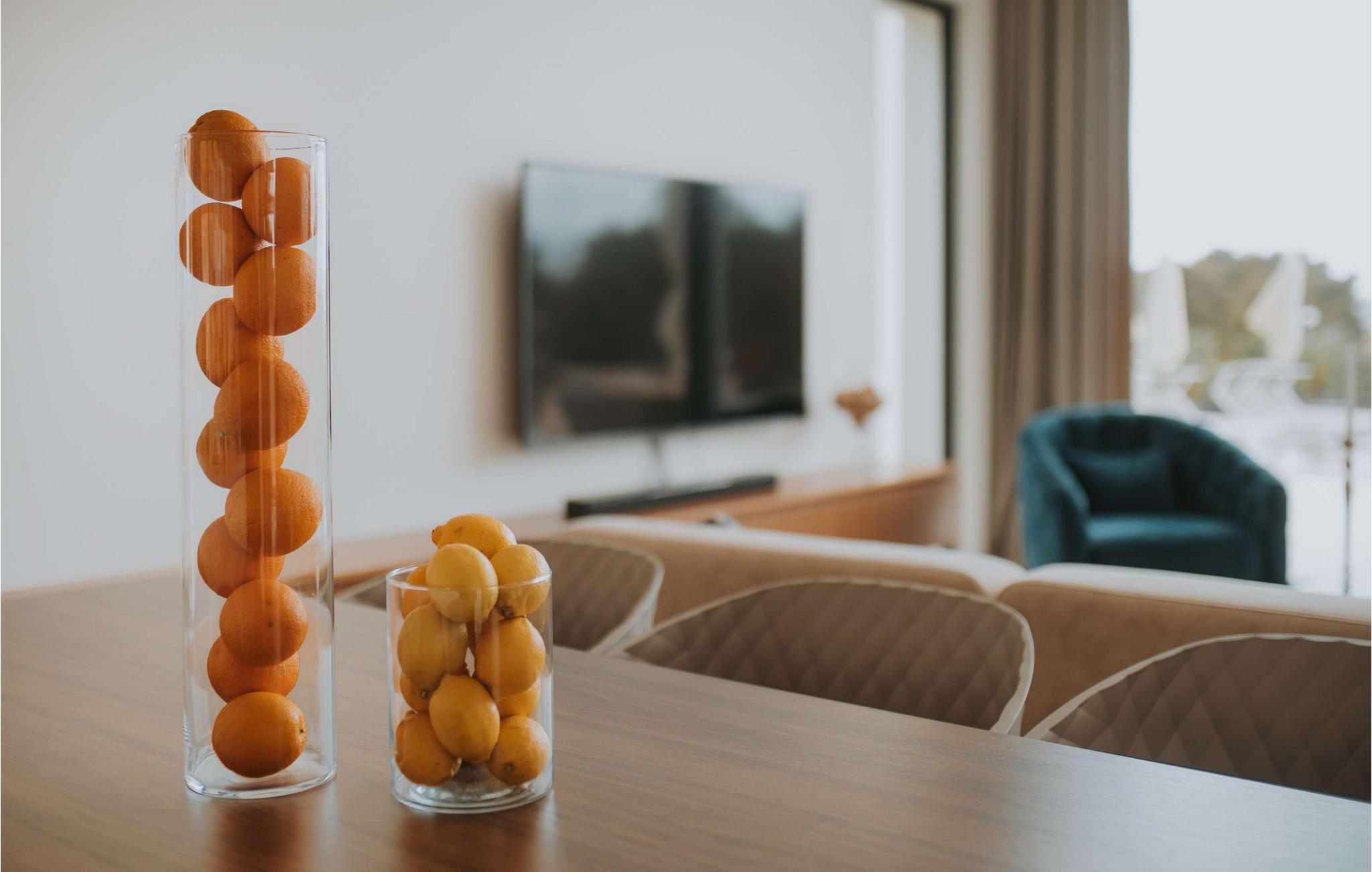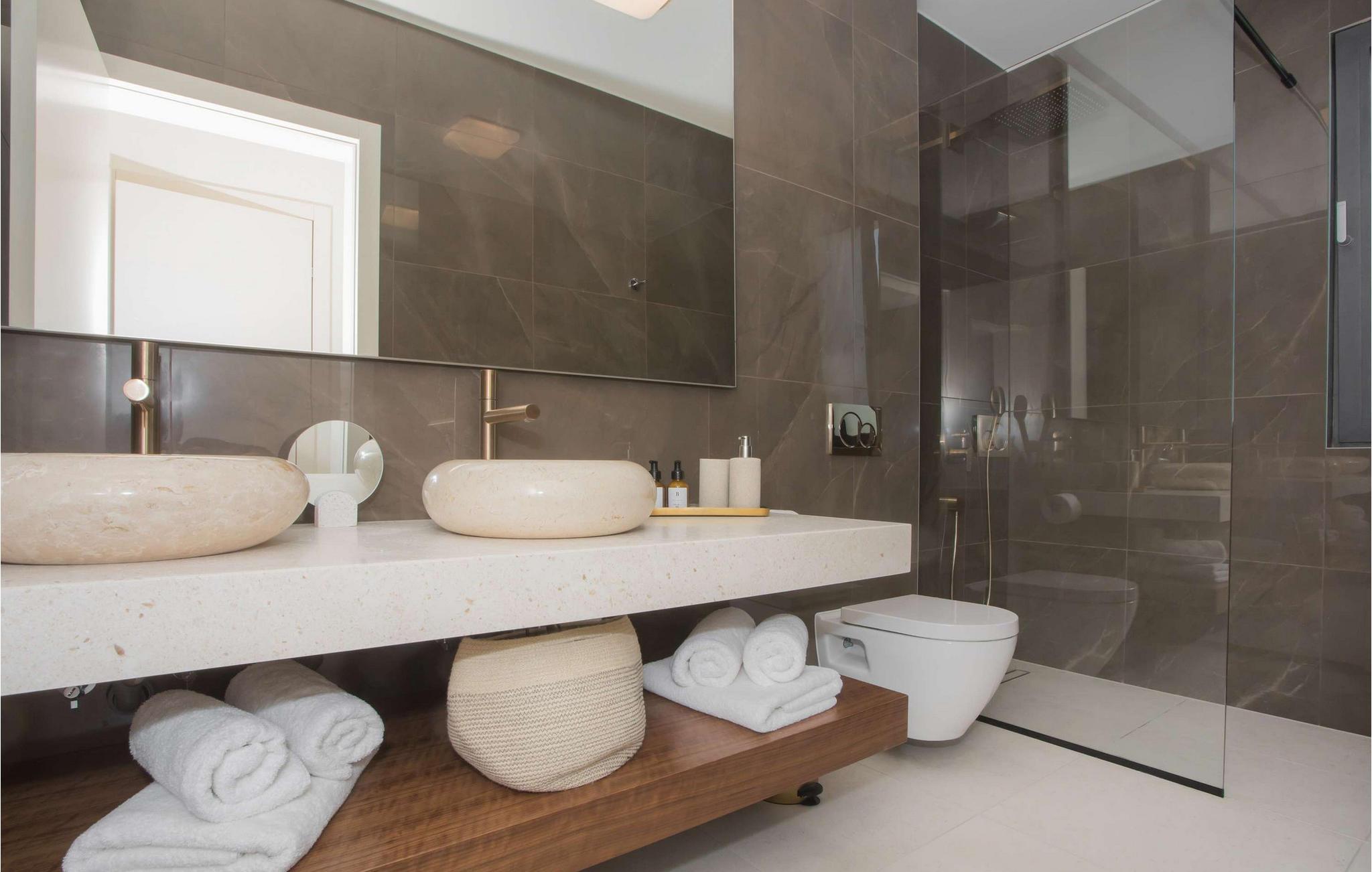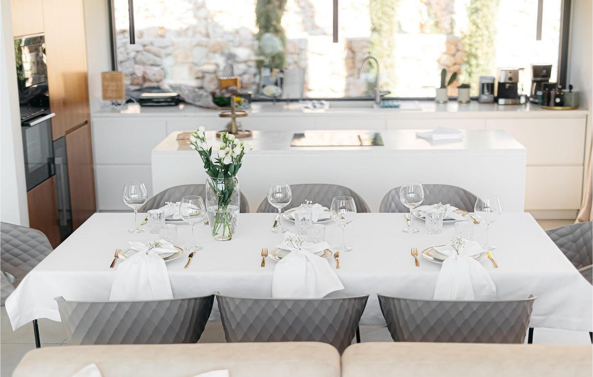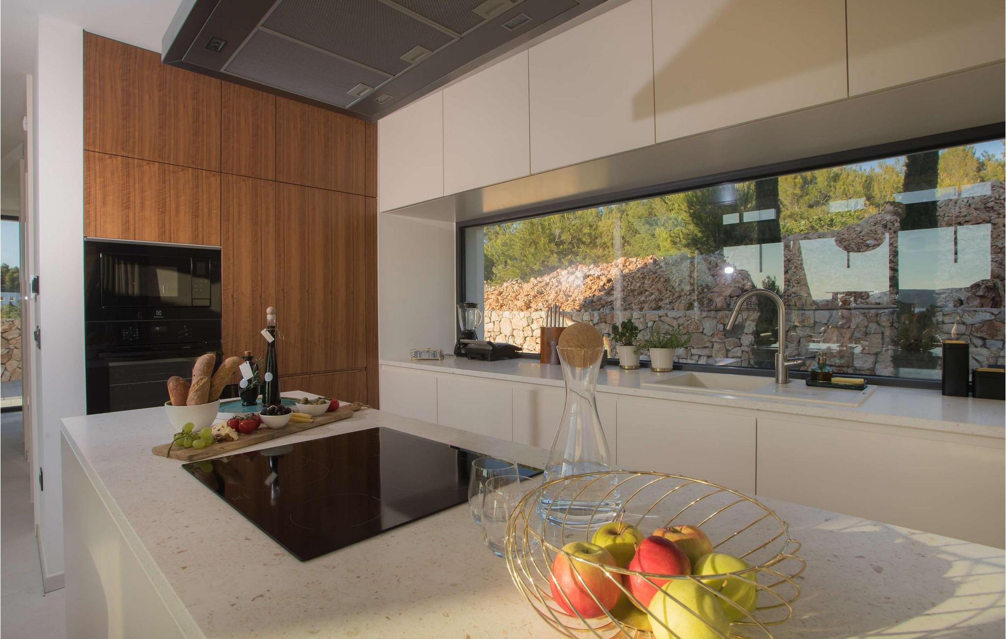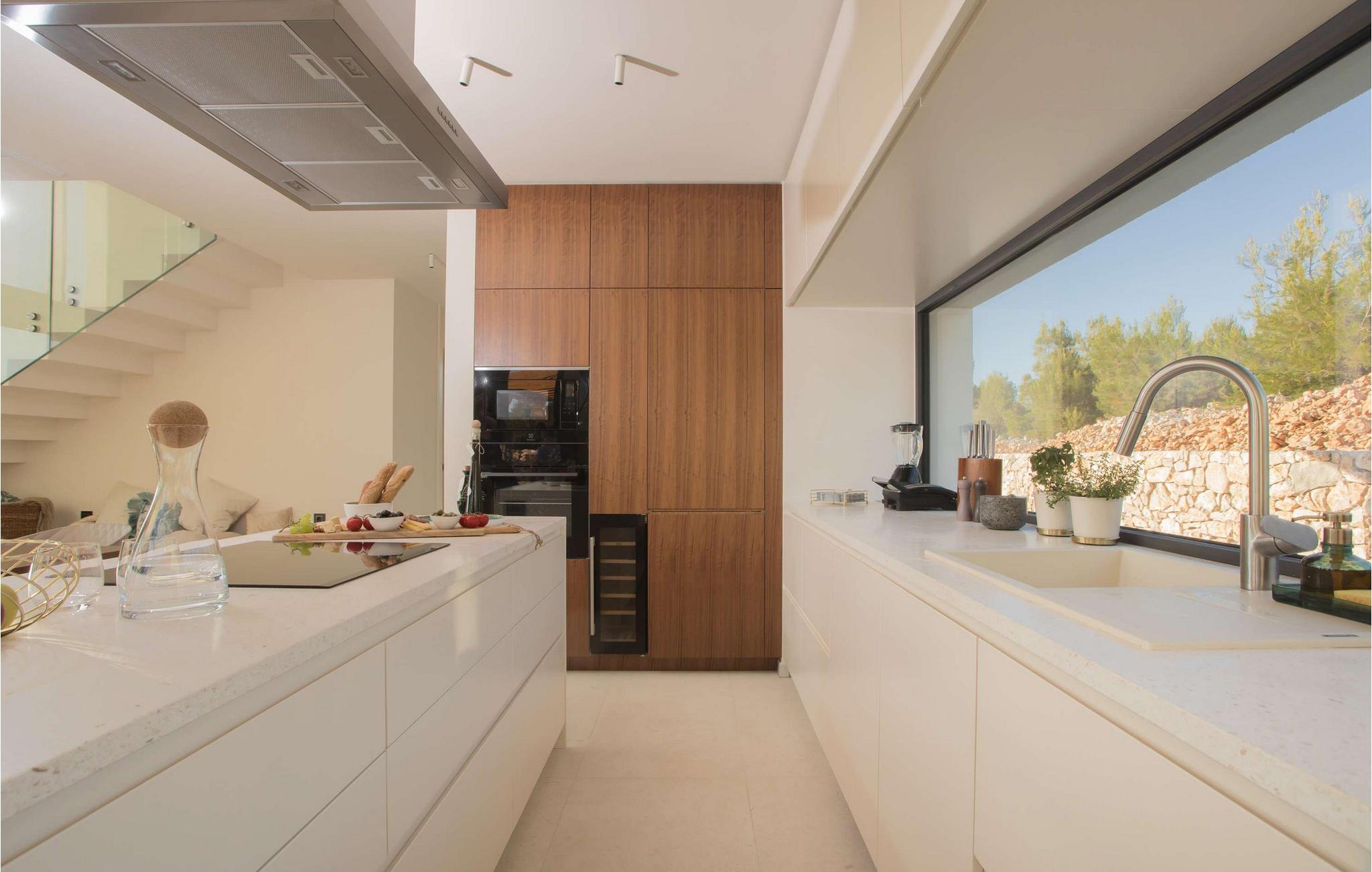 Den fantastiske Villa Maris ønsker deg velkommen bare en spasertur fra kysten og skjemmer deg bort med komfort på høyeste nivå og et romslig, stilfullt møblert interiør. Store vindusflater gir interiøret rikelig med naturlig dagslys og en fantastisk utsikt over havet og øyene. Gled deg til hyggelig matlaging i det fullt utstyrte, minimalistiske kjøkkenet og harmoniske måltider i en unik atmosfære. Etter en begivenhetsrik dag kan du slå av en prat i den innbydende stuen eller trekke deg tilbake til favorittstedet ditt med en god bok.