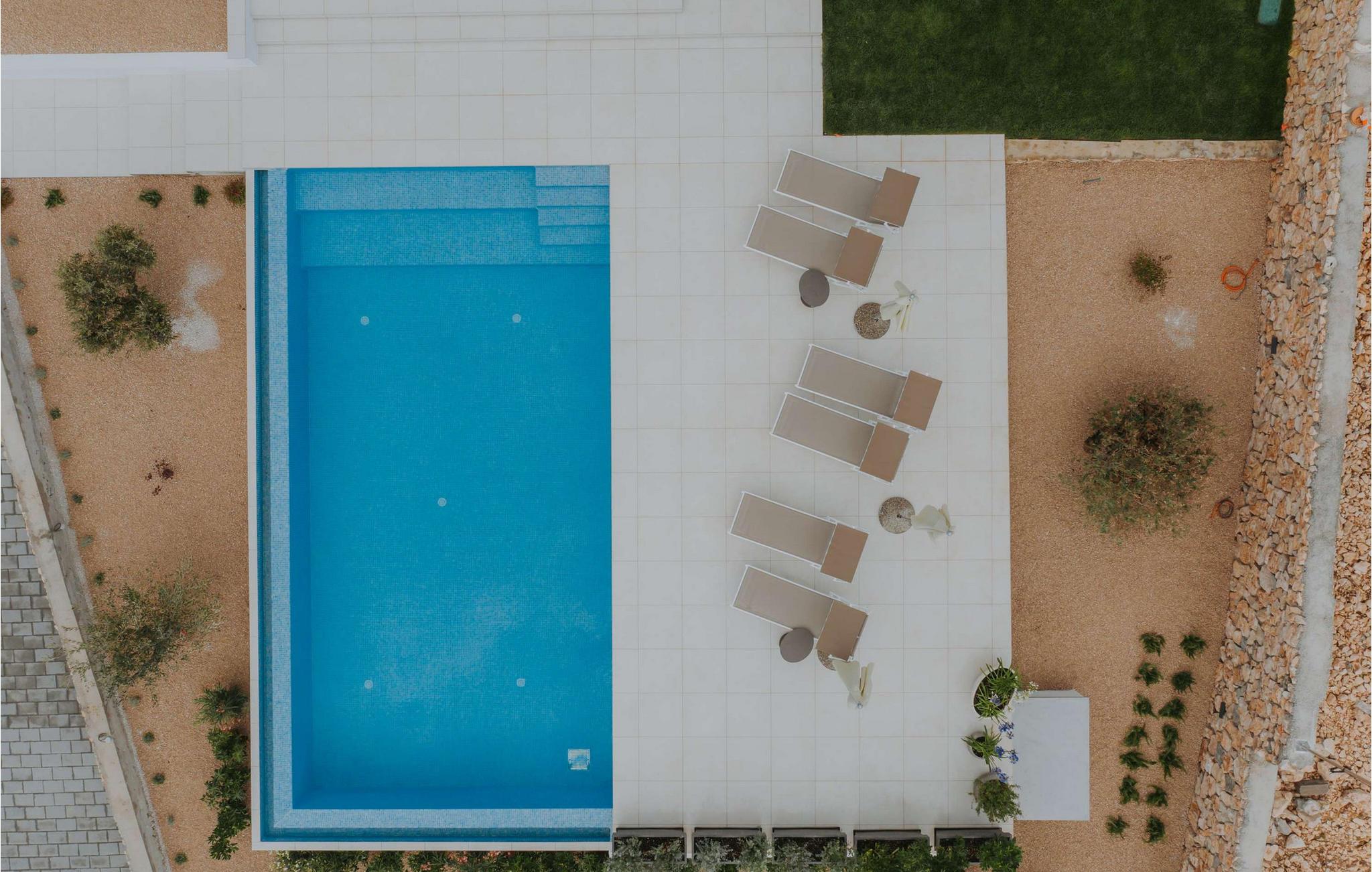 Et stort basseng venter på deg i det elegante uteområdet, hvor du kan ta en avslappende dukkert om morgenen. Nyt en solid frokost utendørs, og om kvelden kan du beundre vakre solnedganger under stemningsfulle grillkvelder.