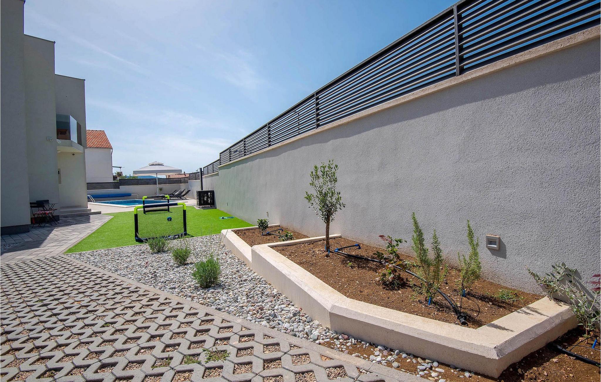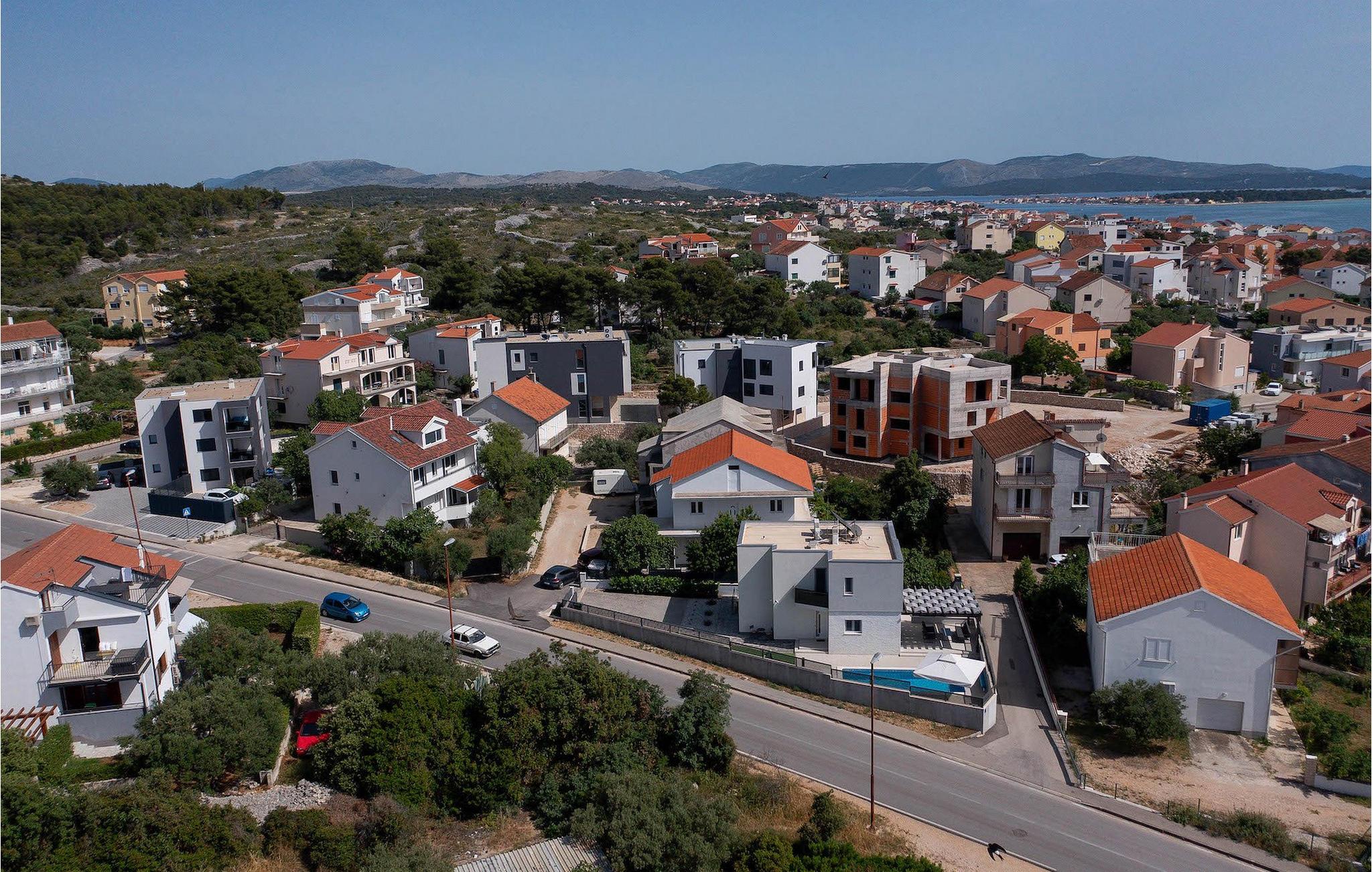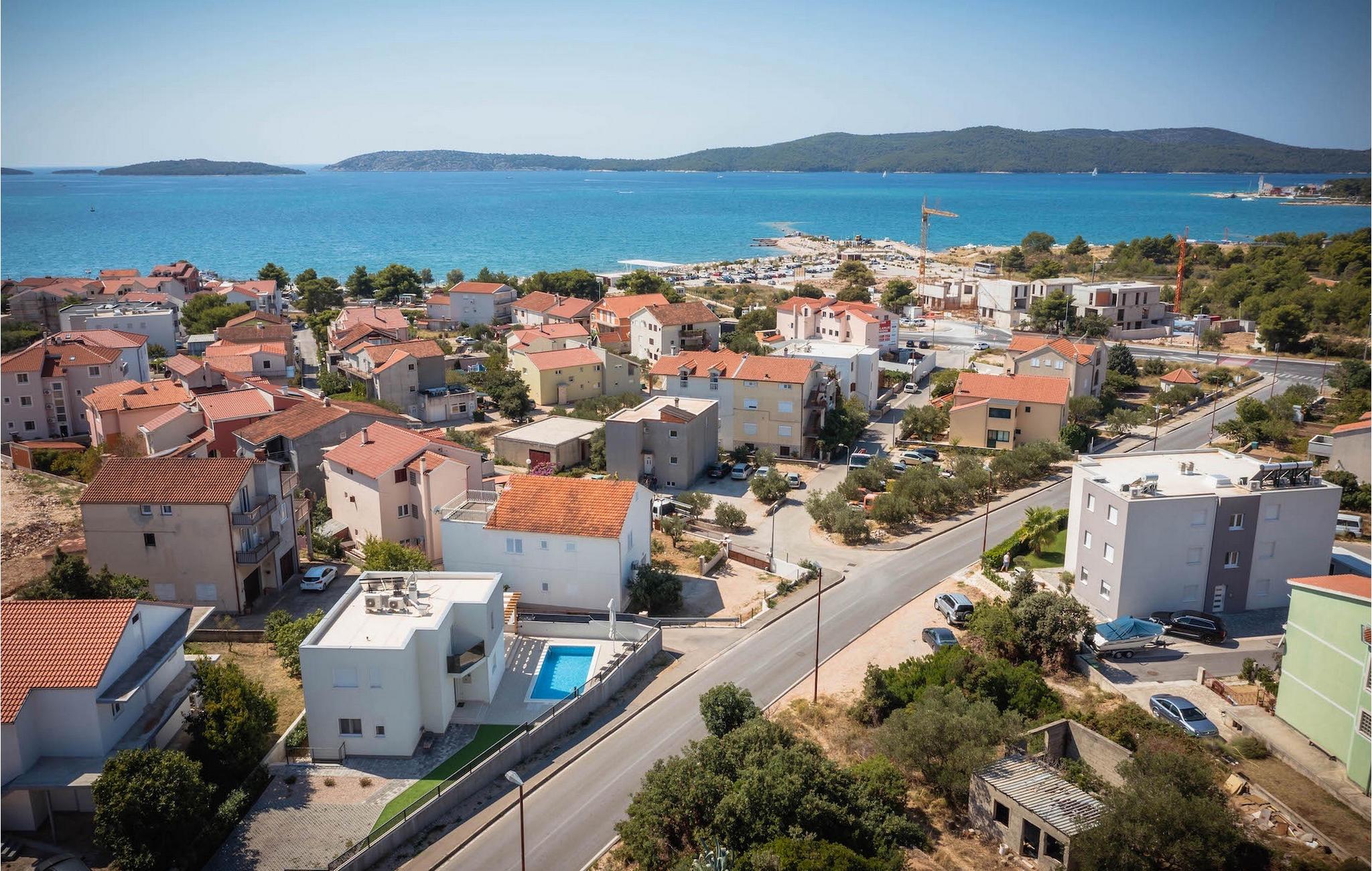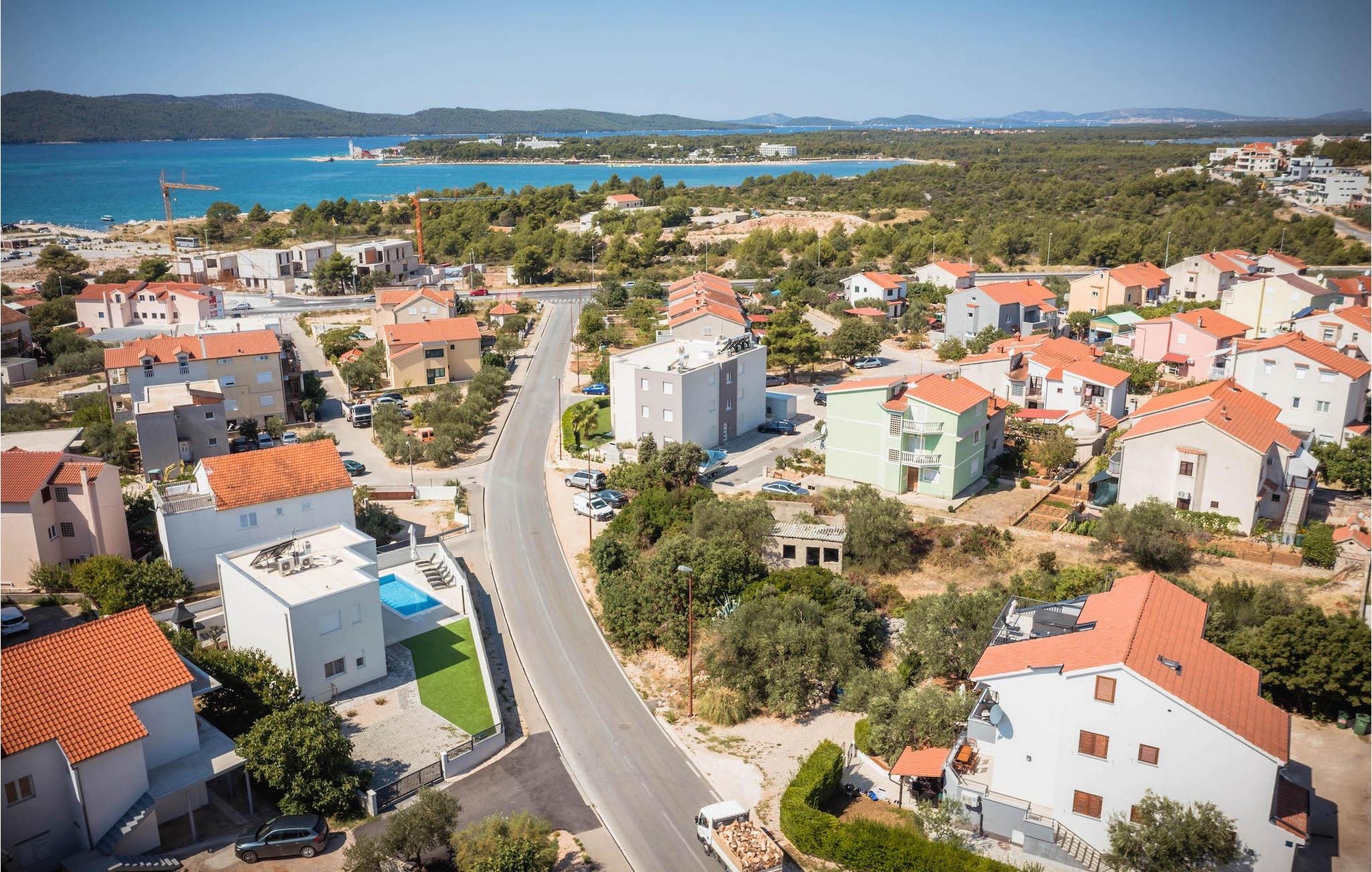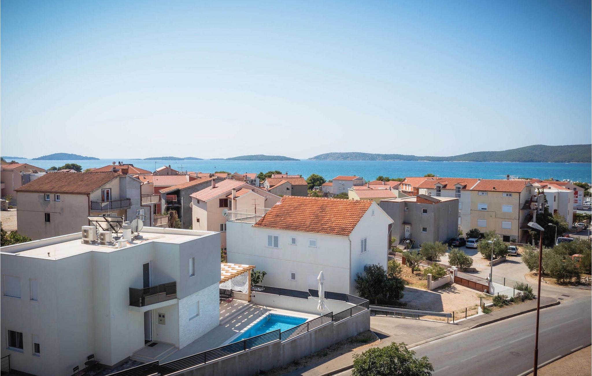 Fra første etasje har du direkte utgang til den inngjerdede hagen med privat basseng, grill og et herlig loungeområde. Det private bassenget er ideelt for forfriskninger på solfylte dager, omgitt av mange solsenger hvor du kan slappe av og sole deg mens barna leker. Ved siden av bassenget kan du også tilberede deilige måltider på grillen og nyte dem sammen med venner og familie.Brodarica er en ekte ferieoase på Sibenik-rivieraen. Den lille byen har en 4 km lang kystlinje med rullesteinstrender, butikker, restauranter og kafeer. Brodarica-stranden er en moderne, velutstyrt familiestrand med alle nødvendige fasiliteter. Stranden har blant annet sandvolleyballbane, lekeplass, utendørs treningsutstyr, basketballbane og strandpromenade.