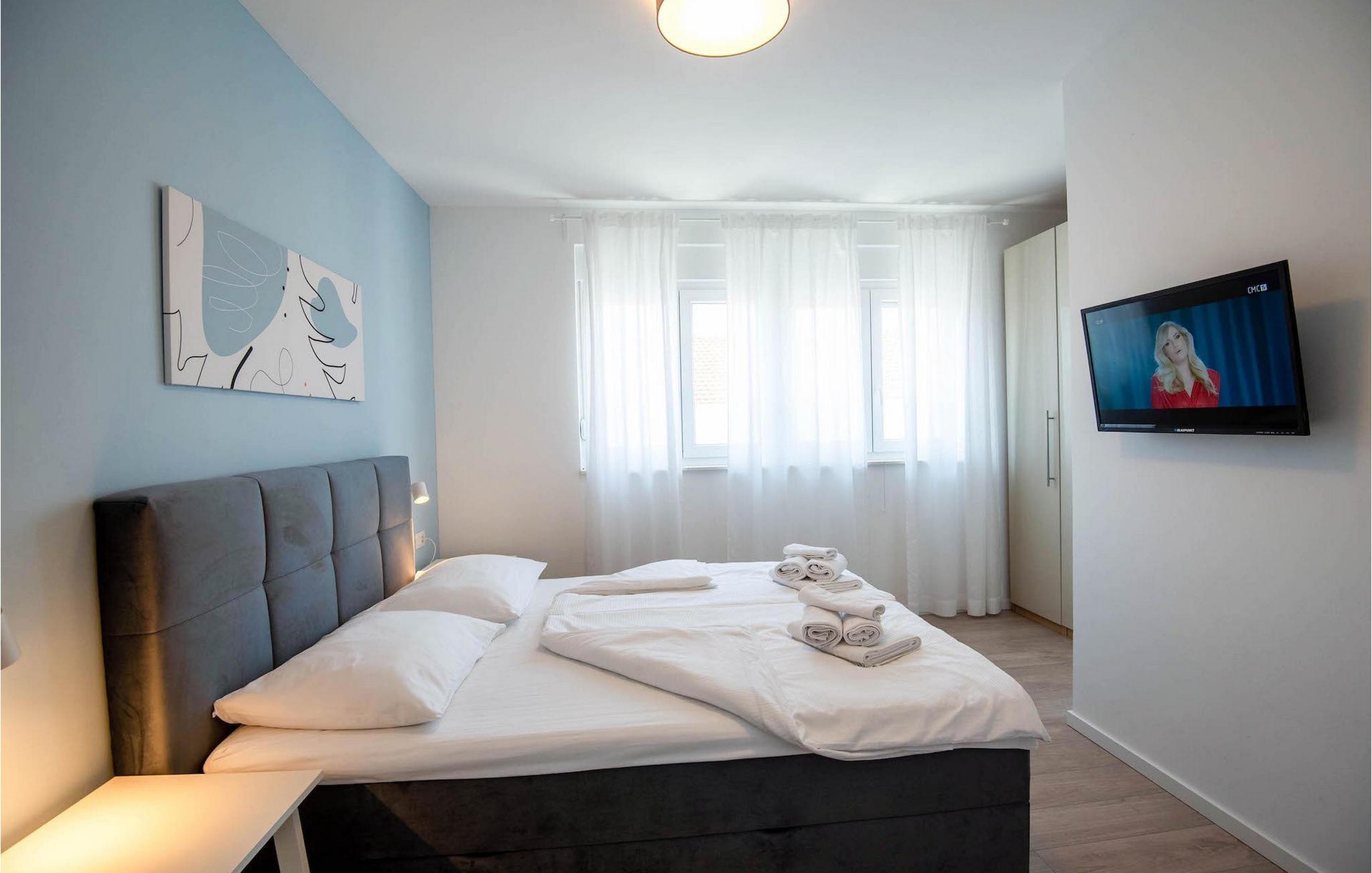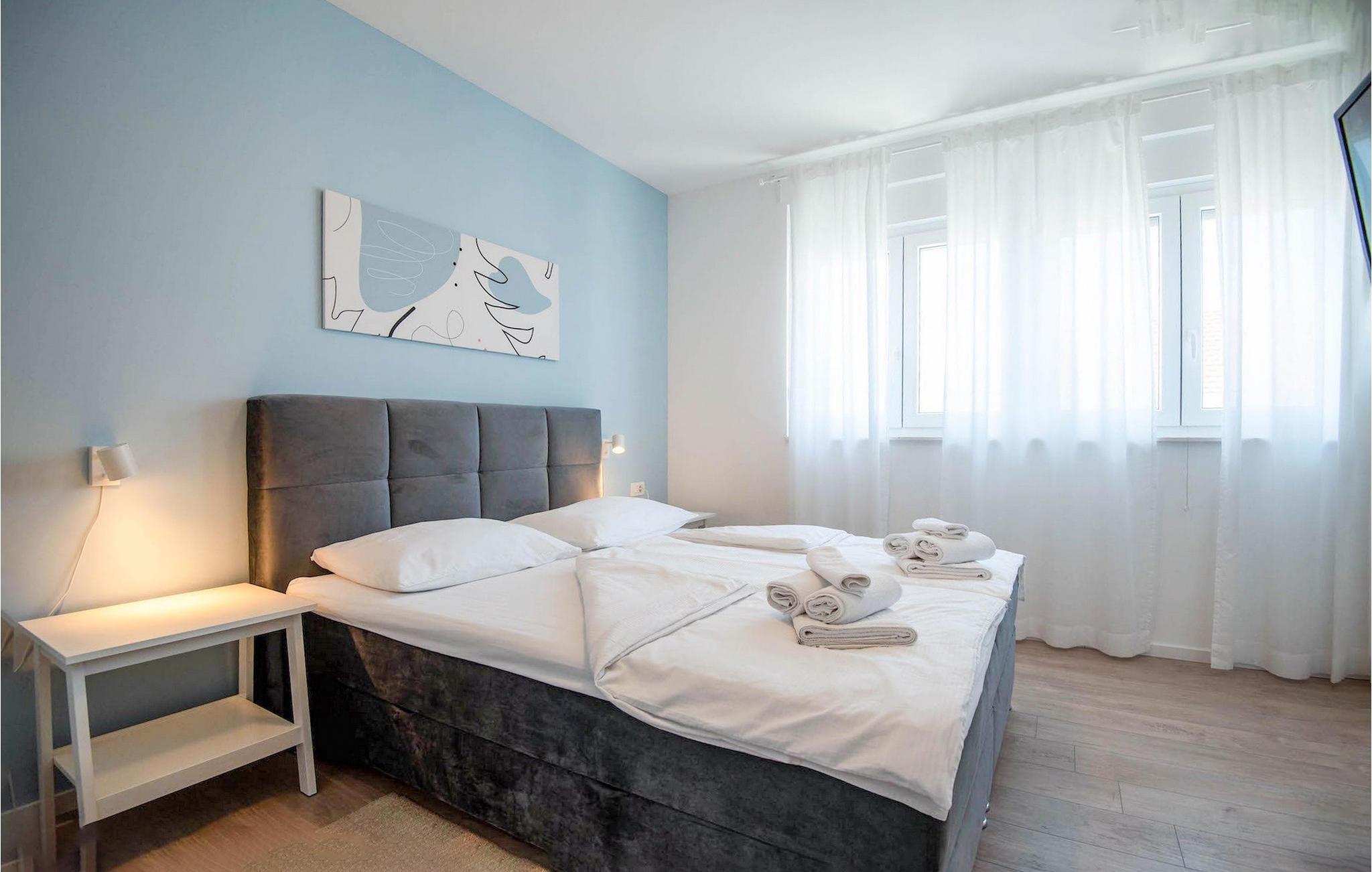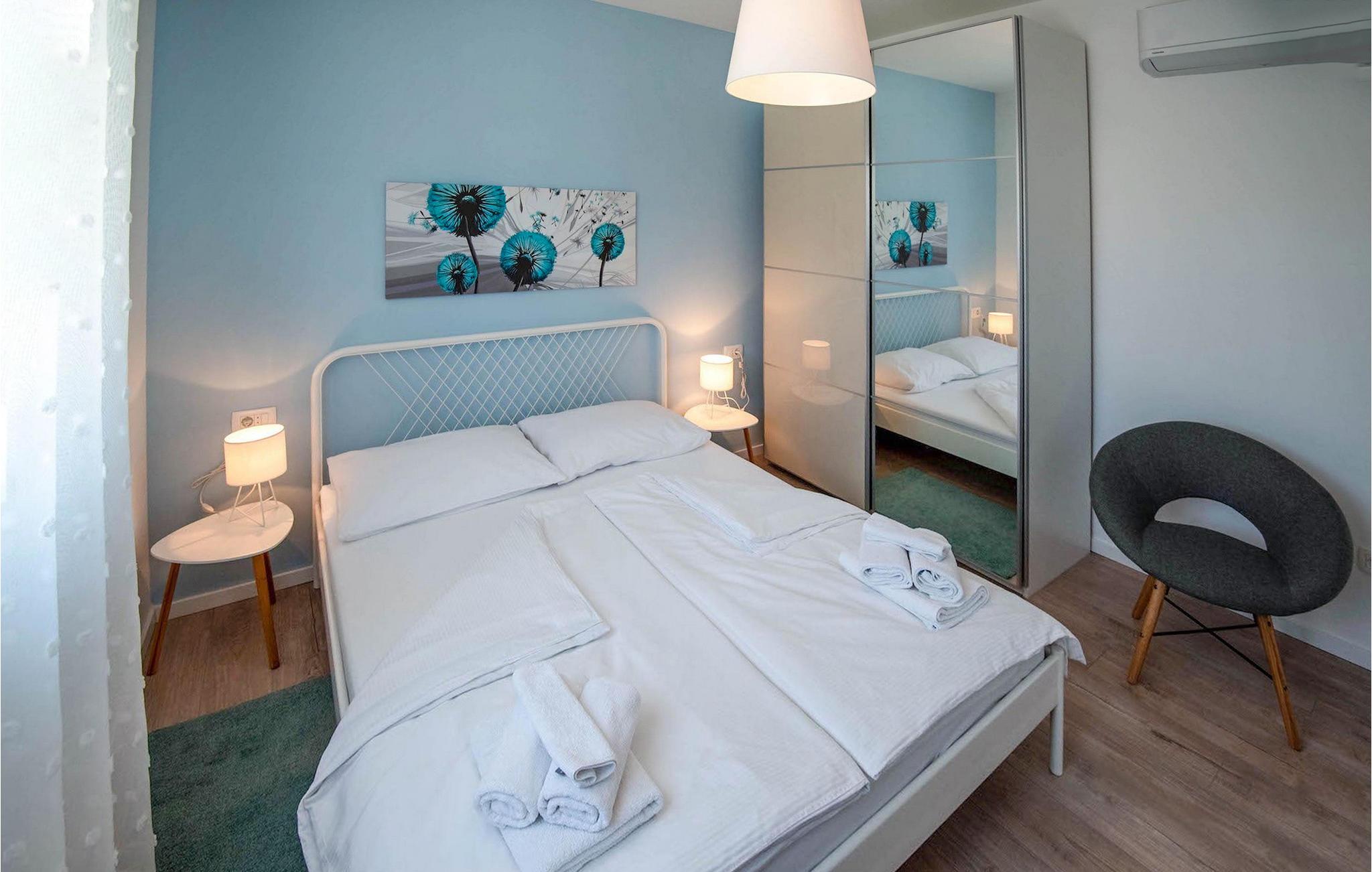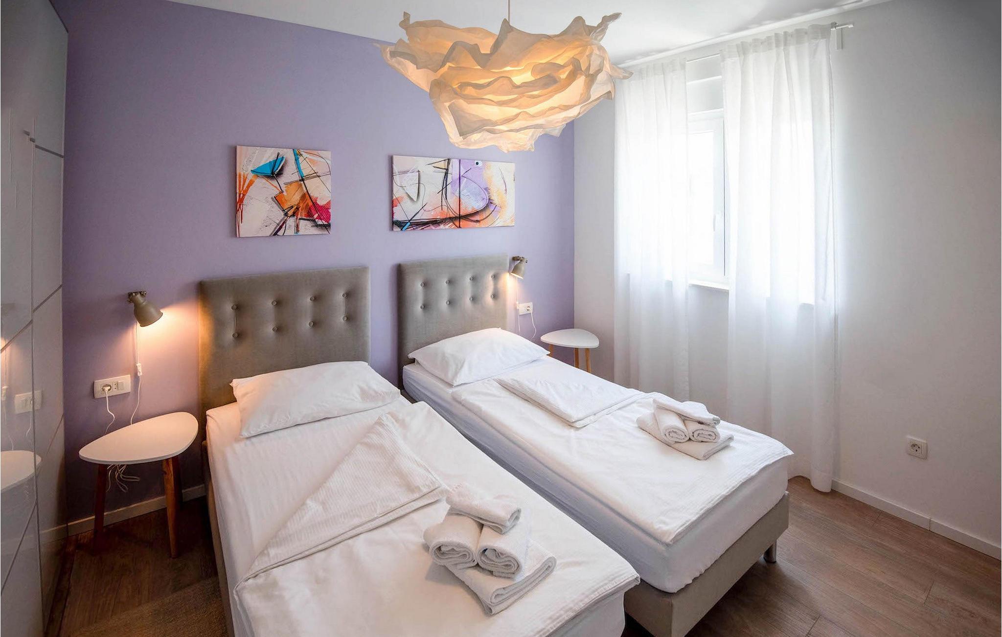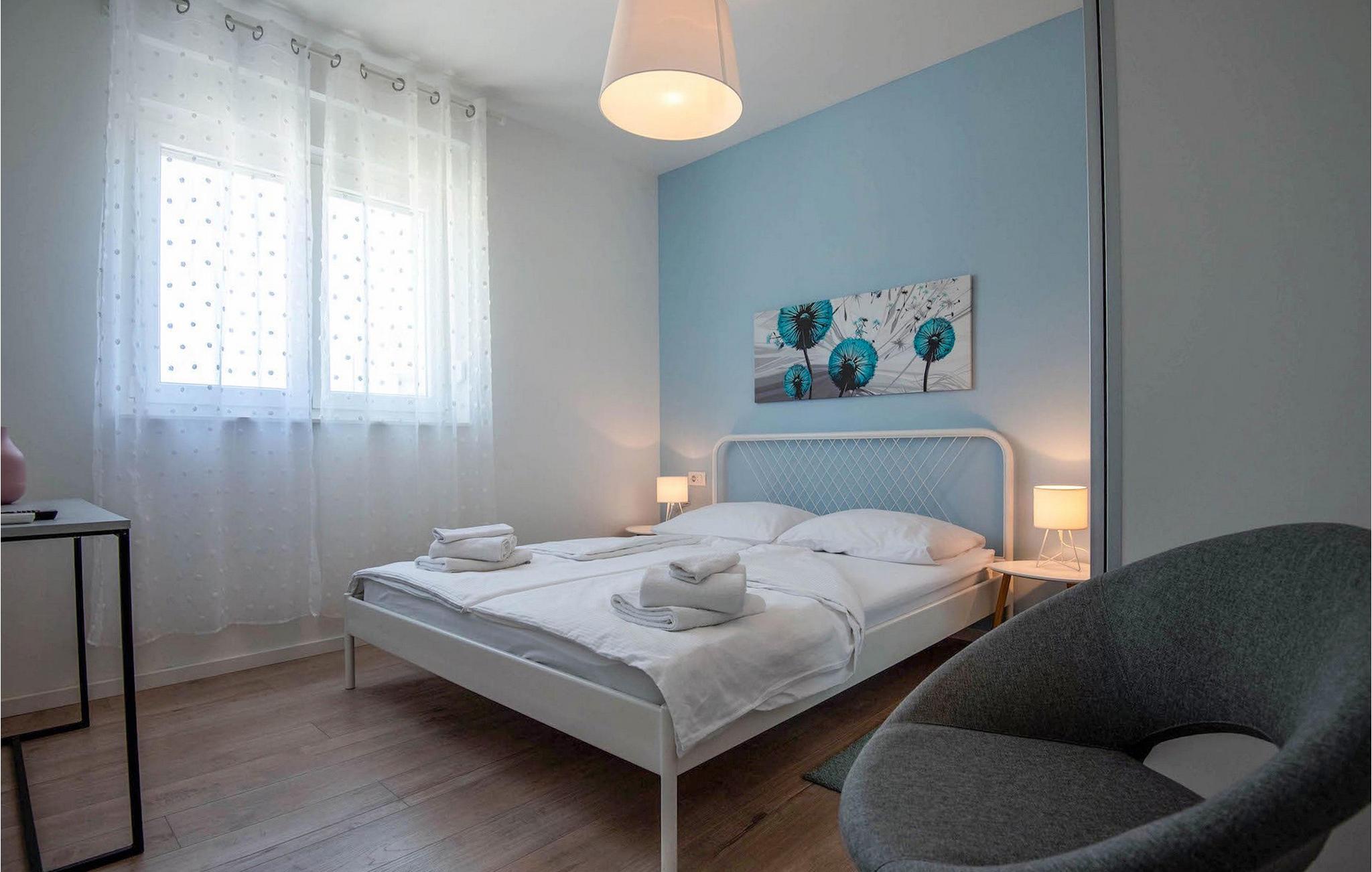 Fra første etasje har du direkte utgang til den inngjerdede hagen med privat basseng, grill og et herlig loungeområde. Det private bassenget er ideelt for forfriskninger på solfylte dager, omgitt av mange solsenger hvor du kan slappe av og sole deg mens barna leker. Ved siden av bassenget kan du også tilberede deilige måltider på grillen og nyte dem sammen med venner og familie.Brodarica er en ekte ferieoase på Sibenik-rivieraen. Den lille byen har en 4 km lang kystlinje med rullesteinstrender, butikker, restauranter og kafeer. Brodarica-stranden er en moderne, velutstyrt familiestrand med alle nødvendige fasiliteter. Stranden har blant annet sandvolleyballbane, lekeplass, utendørs treningsutstyr, basketballbane og strandpromenade.