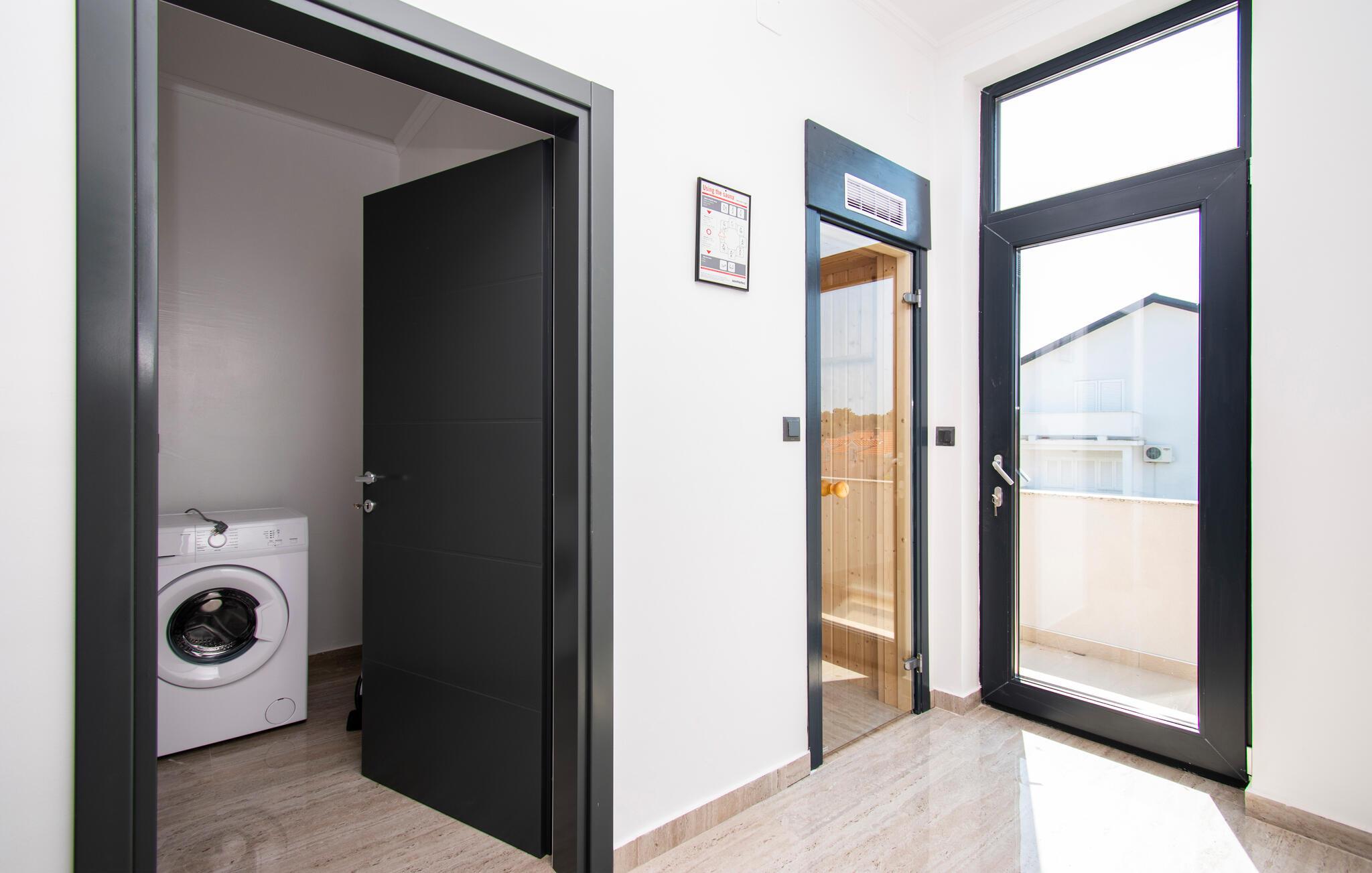 Den private badstuen og fellesbassenget fullfører den luksuriøse opplevelsen og gir deg den ultimate komforten og velværet.