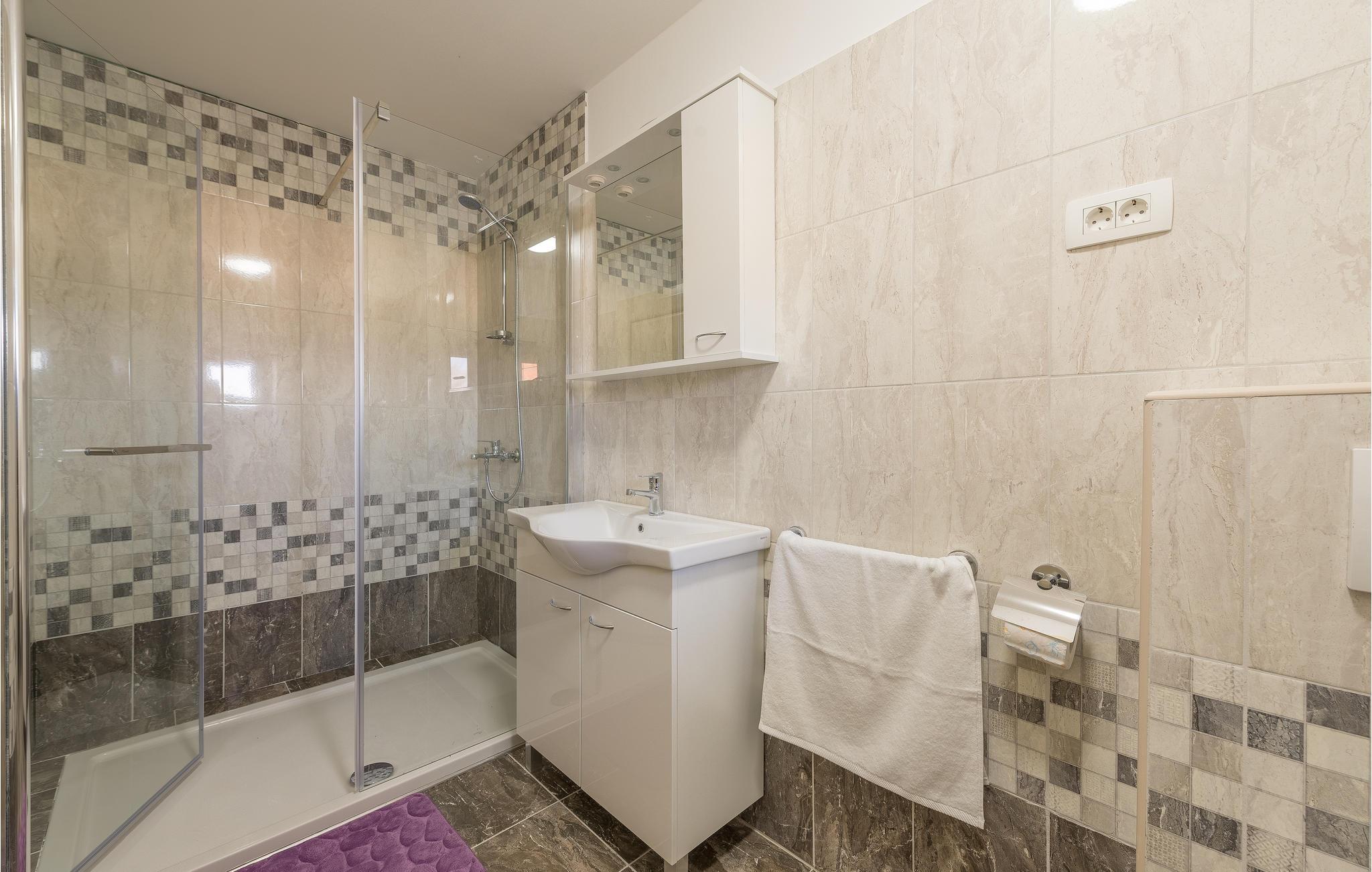 - WC med varmt og kaldt vann, Dusj