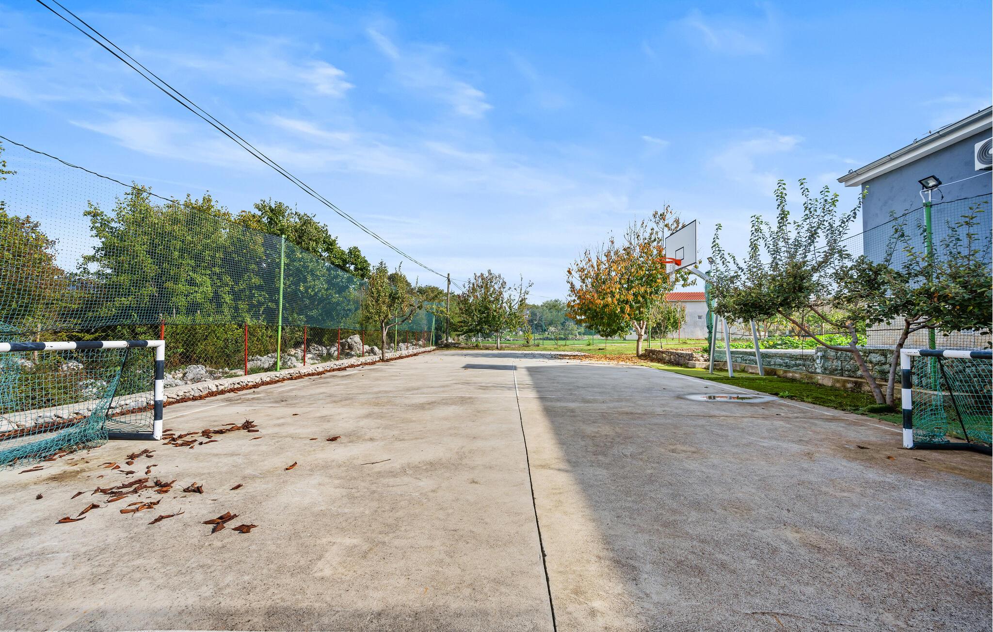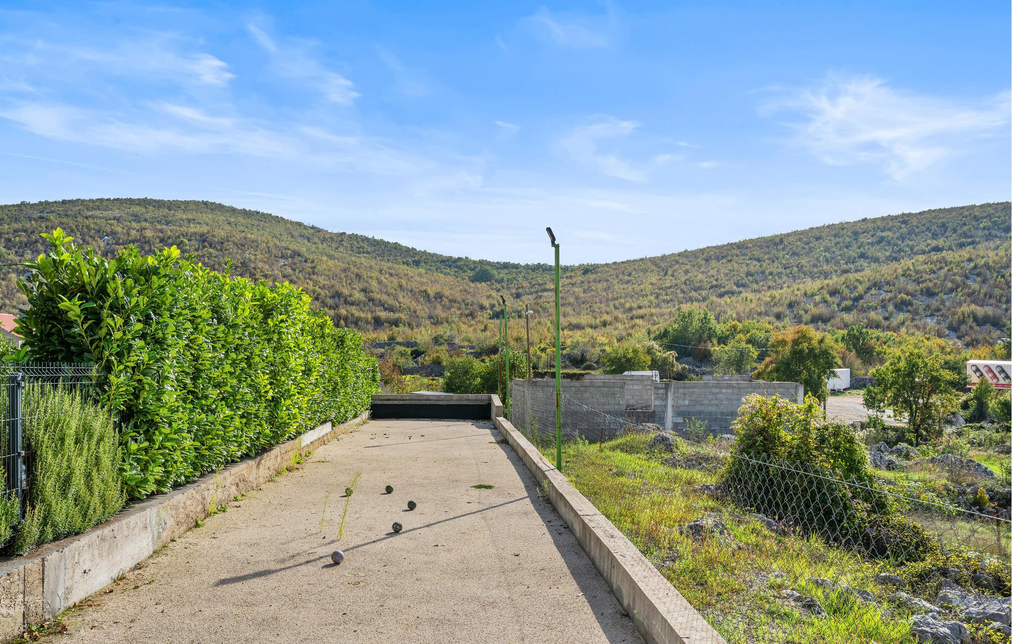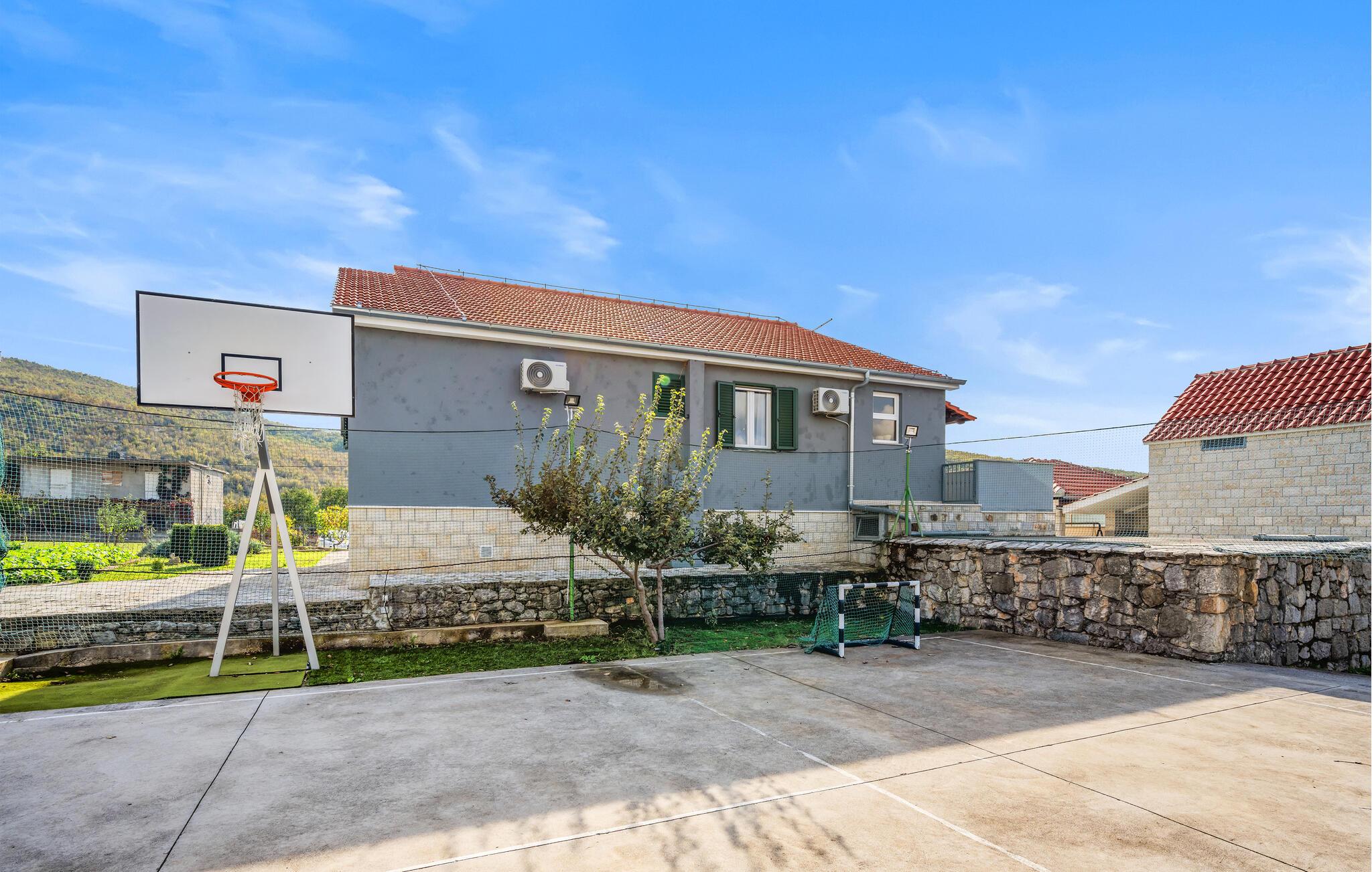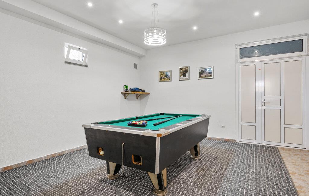 Dette innbydende feriehuset i Cvrljevo tilbyr deg og familien alt du trenger for en uforglemmelig ferie. Den åpne planløsningen med kjøkken, spisebord og en koselig stue innbyr til hyggelig samvær. I aktivitetsrommet kan dere spille biljard eller bare nyte tiden sammen. Utenfor finner du flere terrasseområder, et privat svømmebasseng og en rekke fritidsfasiliteter som fotball-, tennis- og basketballbaner samt en lekeplass for de minste.