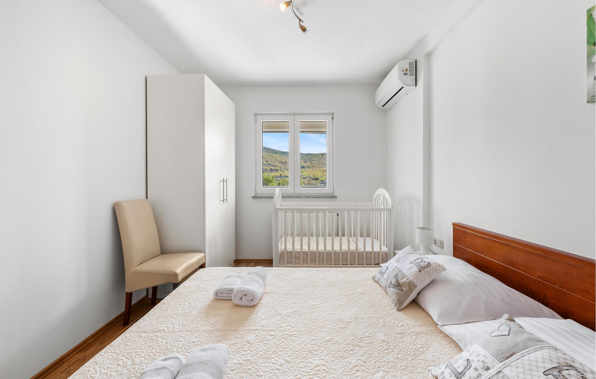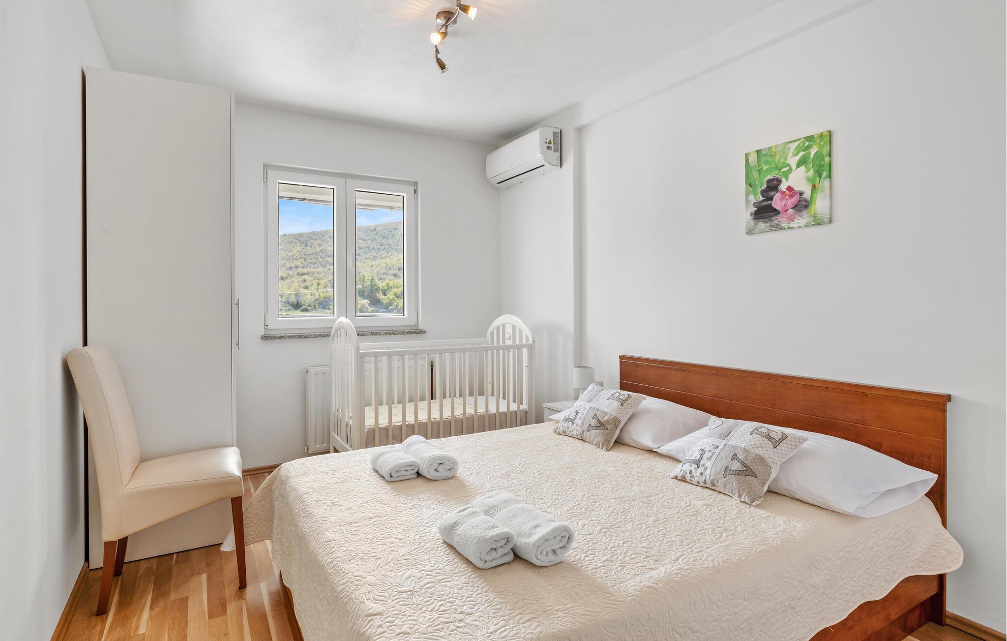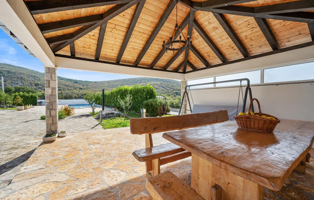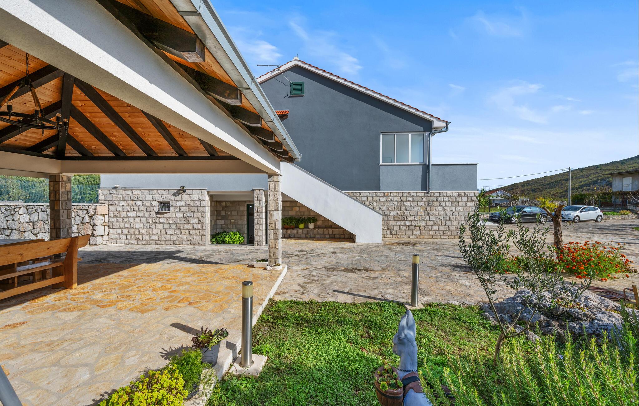 Dette innbydende feriehuset i Cvrljevo tilbyr deg og familien alt du trenger for en uforglemmelig ferie. Den åpne planløsningen med kjøkken, spisebord og en koselig stue innbyr til hyggelig samvær. I aktivitetsrommet kan dere spille biljard eller bare nyte tiden sammen. Utenfor finner du flere terrasseområder, et privat svømmebasseng og en rekke fritidsfasiliteter som fotball-, tennis- og basketballbaner samt en lekeplass for de minste.