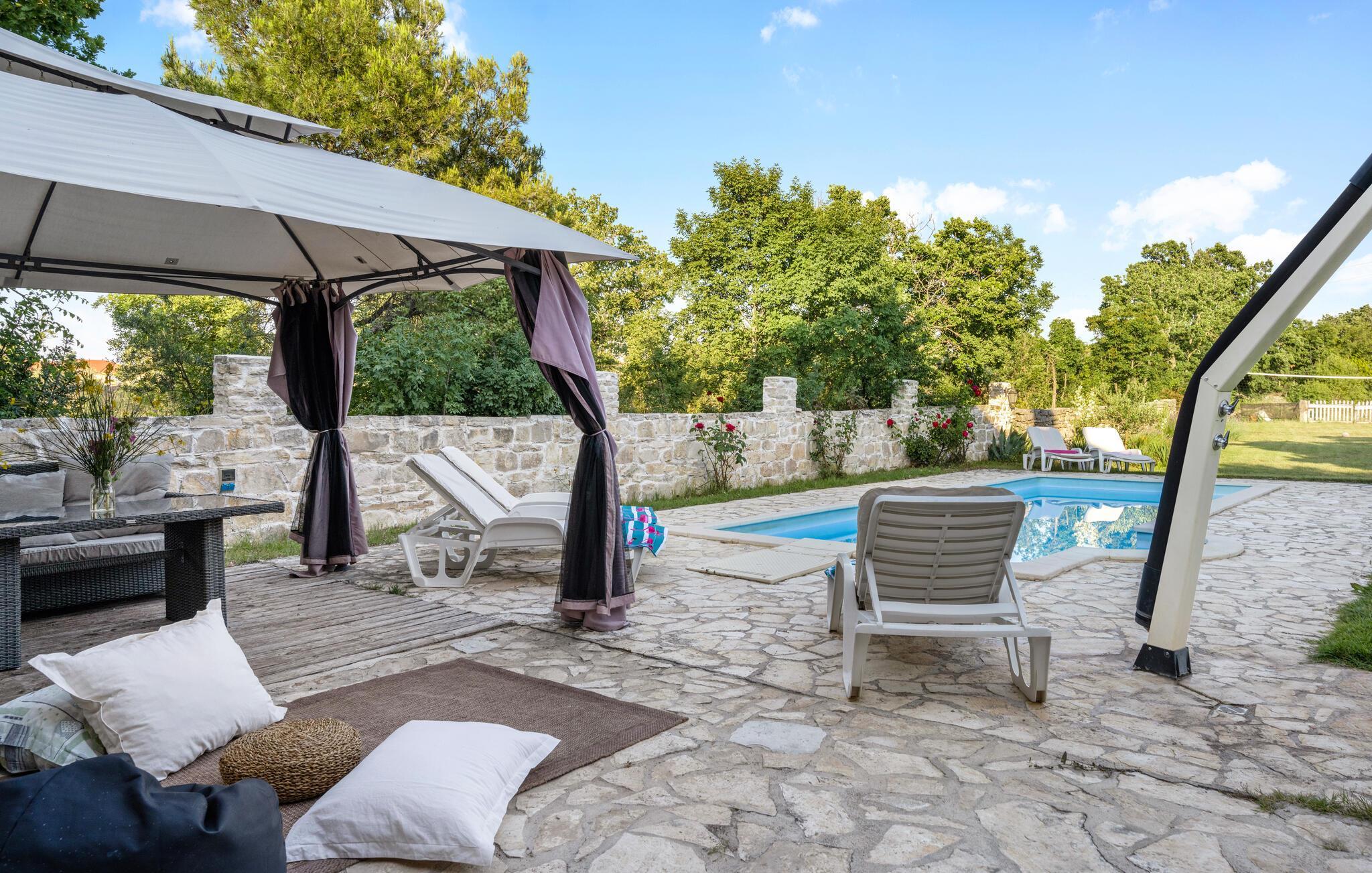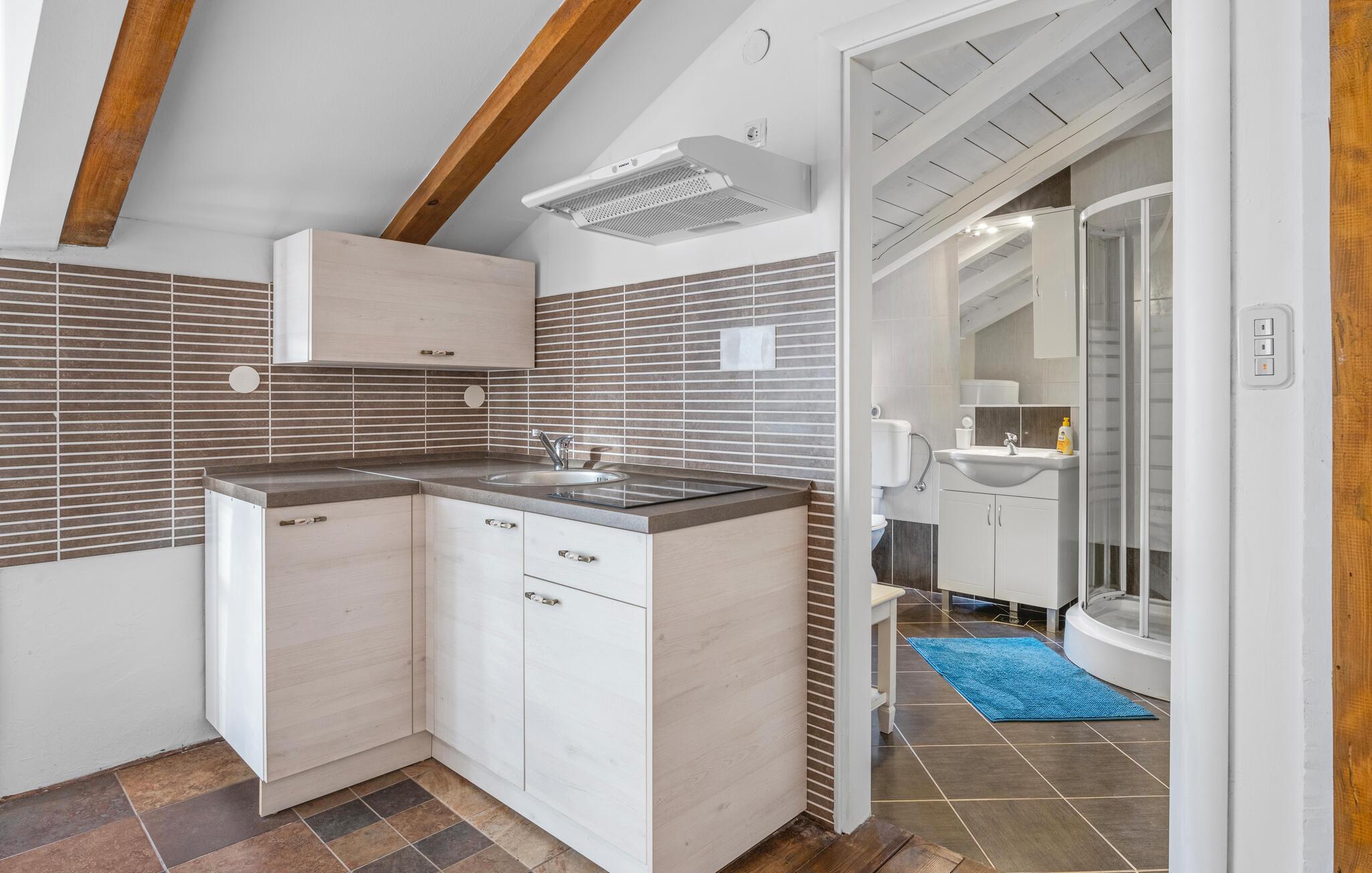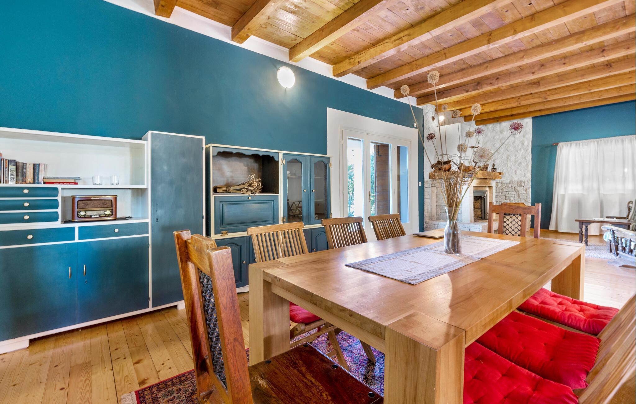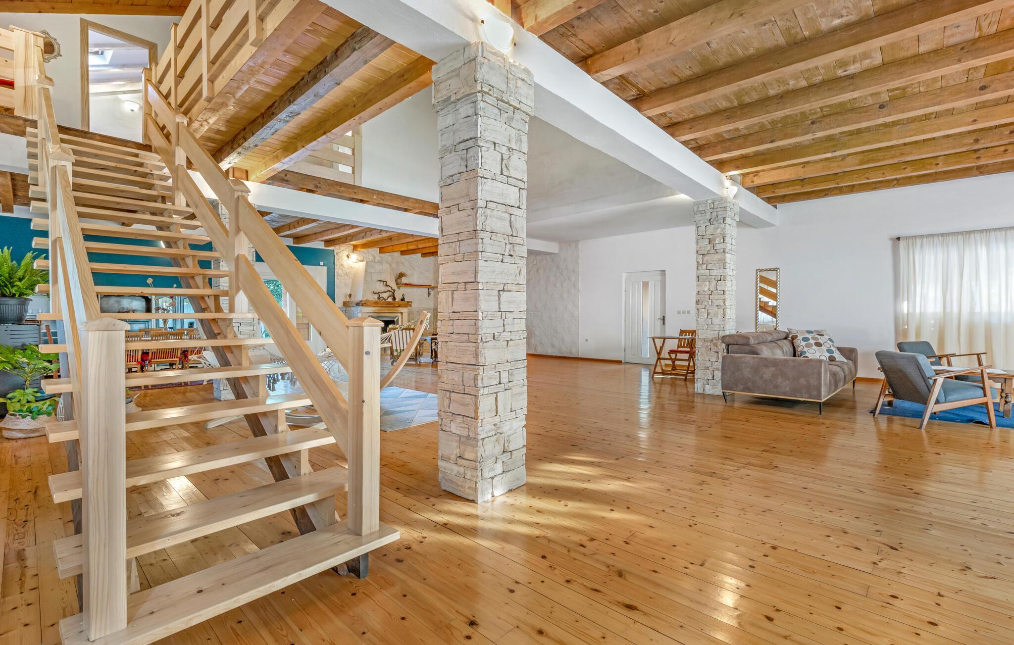 Dette komfortable, rustikt møblerte feriehuset med sin store eiendom er ideelt for store familier som ønsker å nyte ferien langt borte fra hverdagen og fremfor alt uforstyrret. I første etasje gleder huset seg med sin store spisestue hvor hele familien kan sitte og nyte måltidene til fulle. En vakker tretrapp fører deg til loftet, hvor du finner totalt fire soveområder. I tillegg er det en liten kjøkkenkrok hvor du kan tilberede en liten frokost. Det er separate hus på eiendommen, hver med en konoba, en steingrill og et kjøkken. På den overbygde terrassen kan du nyte den vakre utsikten. Men hvis du vil oppleve naturen, kan du ta en tur til Krka nasjonalpark, som ligger bare 2 km fra feriehuset ditt. Utsiktstårnet på feriestedet ditt er også spesielt attraktivt, hvorfra du har utsikt over Kornati nasjonalpark og Sibenik-skjærgården.