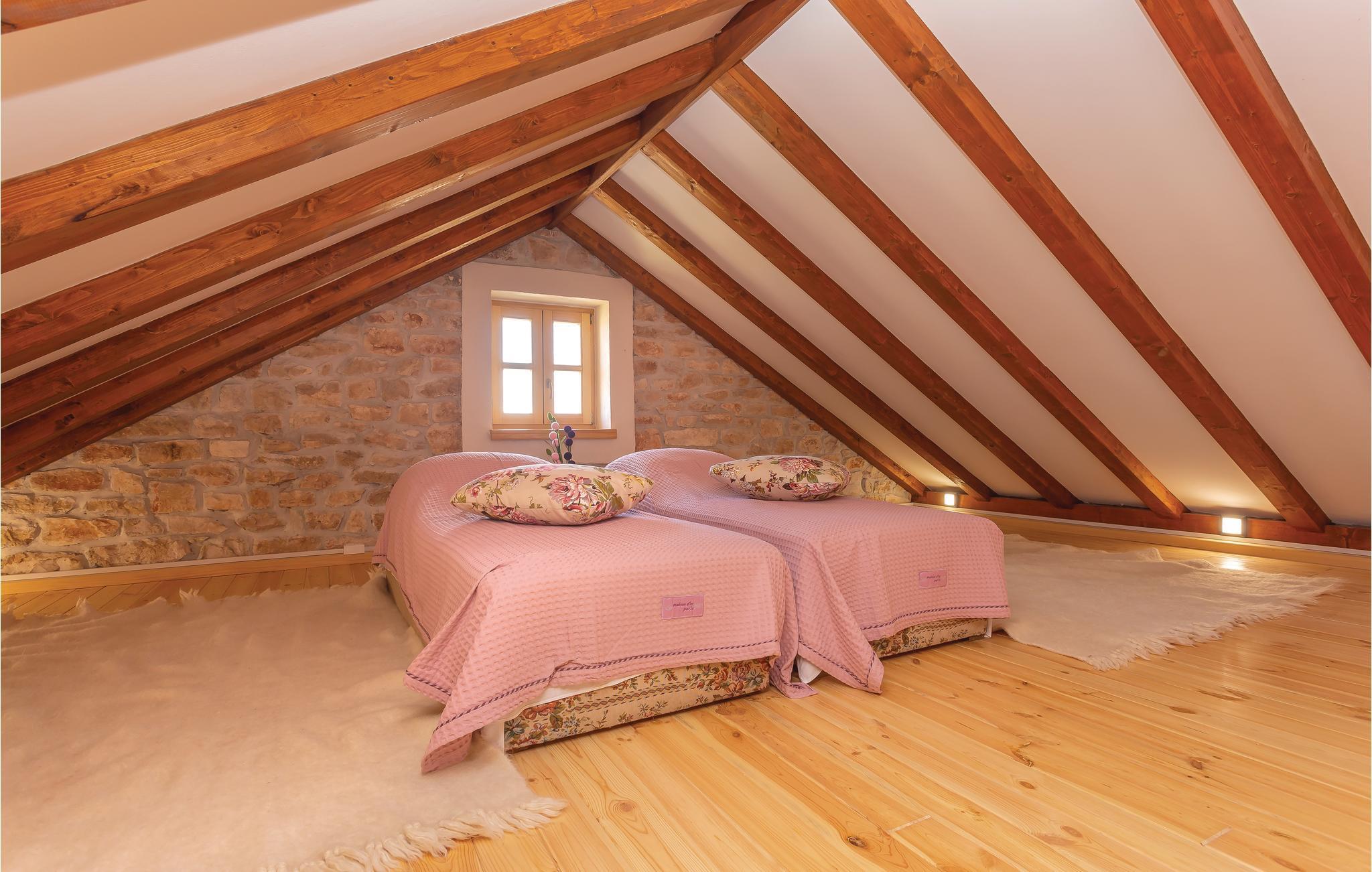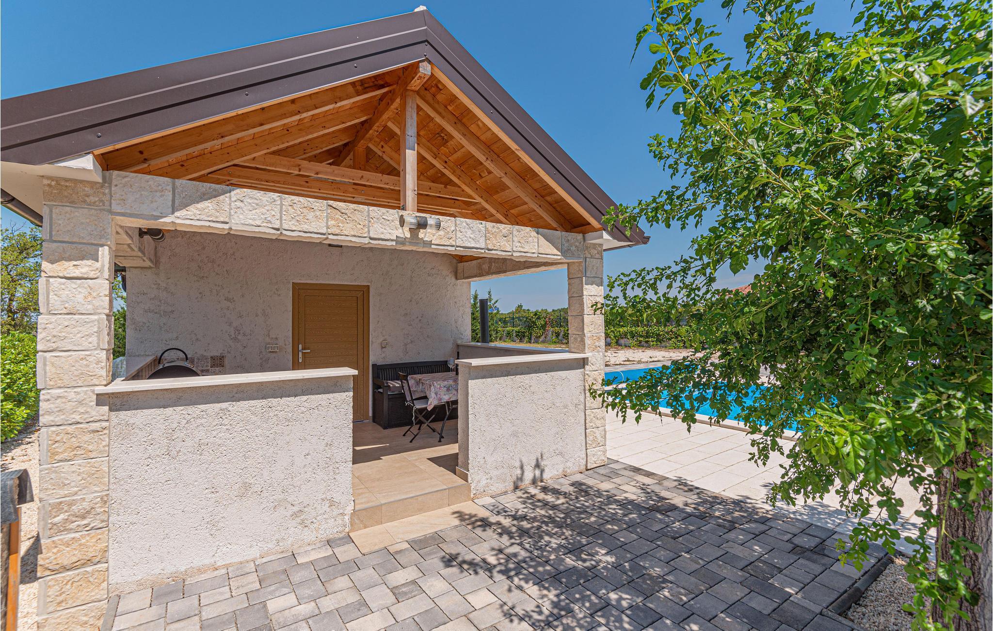 Dette vakre feriehuset med basseng ligger i den lille landsbyen Pakovo Selo, ikke langt fra byen Ibenik. Her finner du fred og ro, langt borte fra hverdagens kjas og mas. På varme sommerdager kan du forfriske deg i bassenget, og de yngste gjestene vil finne ekstra underholdning på eiendommen. For alle aktive feriegjester anbefaler vi et besøk til Krka nasjonalpark, hvor du kan oppdage arkeologiske steder og mange andre severdigheter. Besøk middelhavsbyen Skradin og de pittoreske landsbyene i området rundt. Bli kjent med kulturen og historien i dette området.