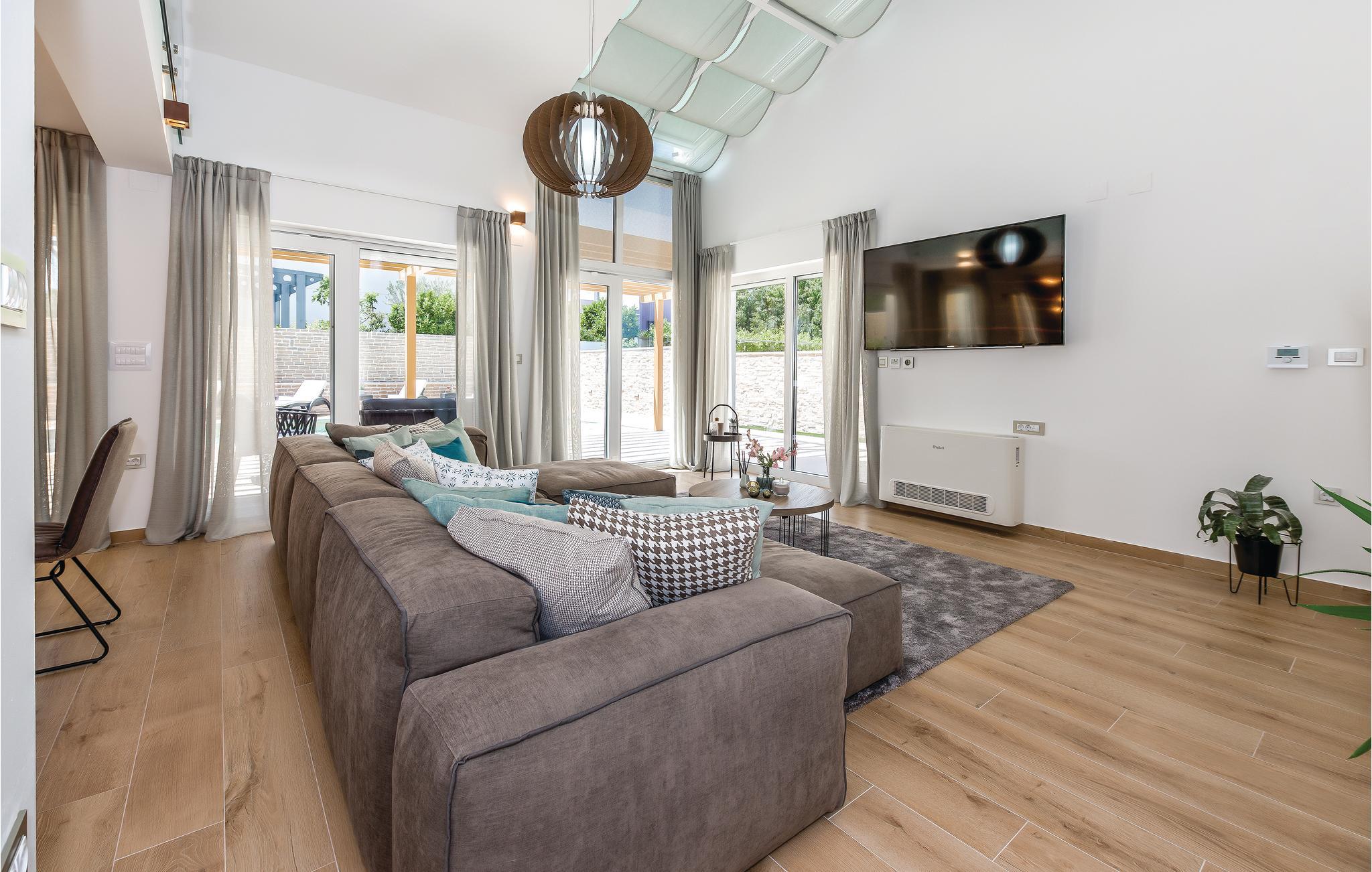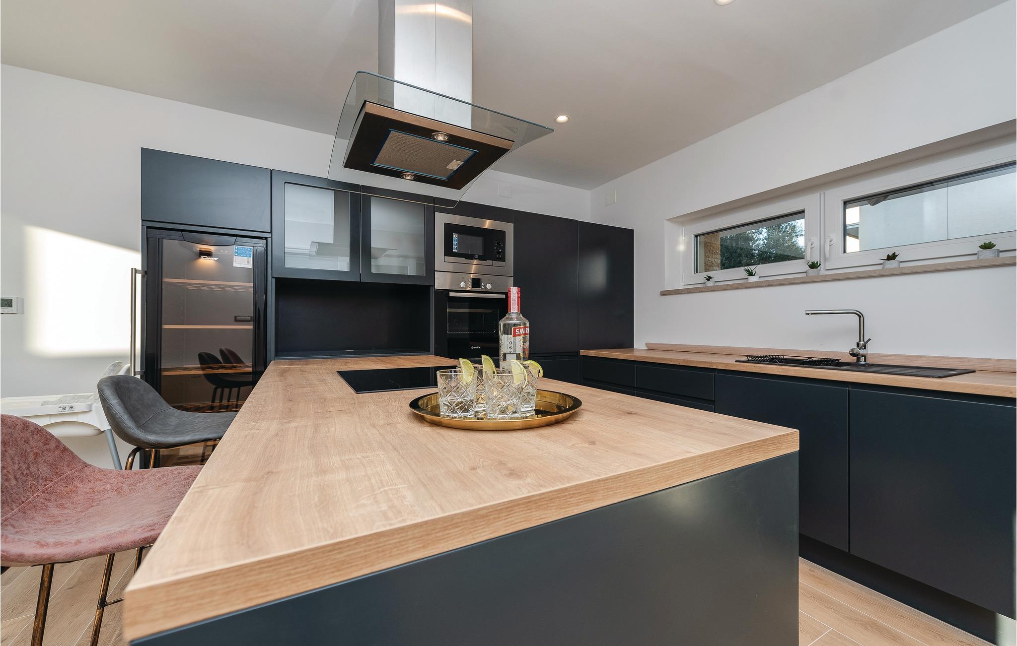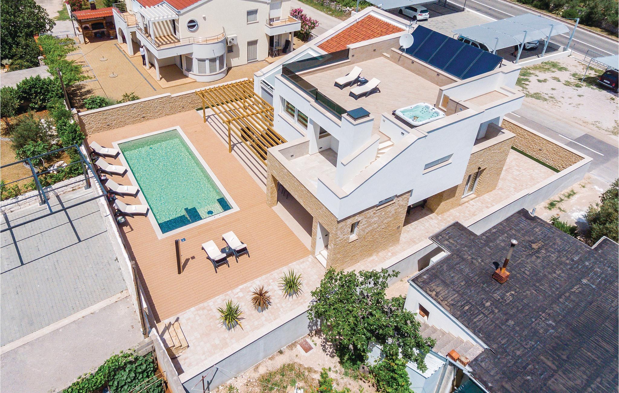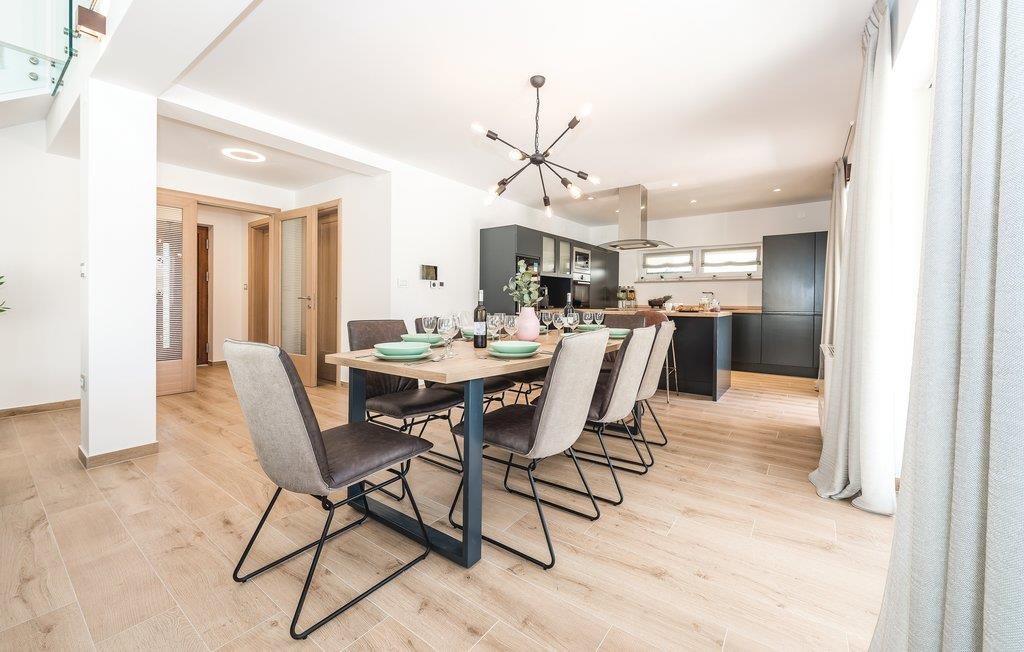 Denne elegante bassengvillaen vil inspirere deg. Vakker arkitektur, moderne design og høy kvalitet er hovedtrekkene i dette feriehuset. På takterrassen har du et boblebad med panoramautsikt over den vakre byen Pirovac. På varme dager kan du finne forfriskning i utendørsbassenget. Lag middag for familie og venner på grillen. En rullesteinstrand ligger bare 300 meter fra villaen din. Plasseringen er også et perfekt utgangspunkt for utflukter. Den nærliggende vakre øya Murter er en inngangsport til nasjonalparken Kornati-skjærgården. Besøk byene Sibenik og Zadar og den nærliggende livlige byen Vodice.
