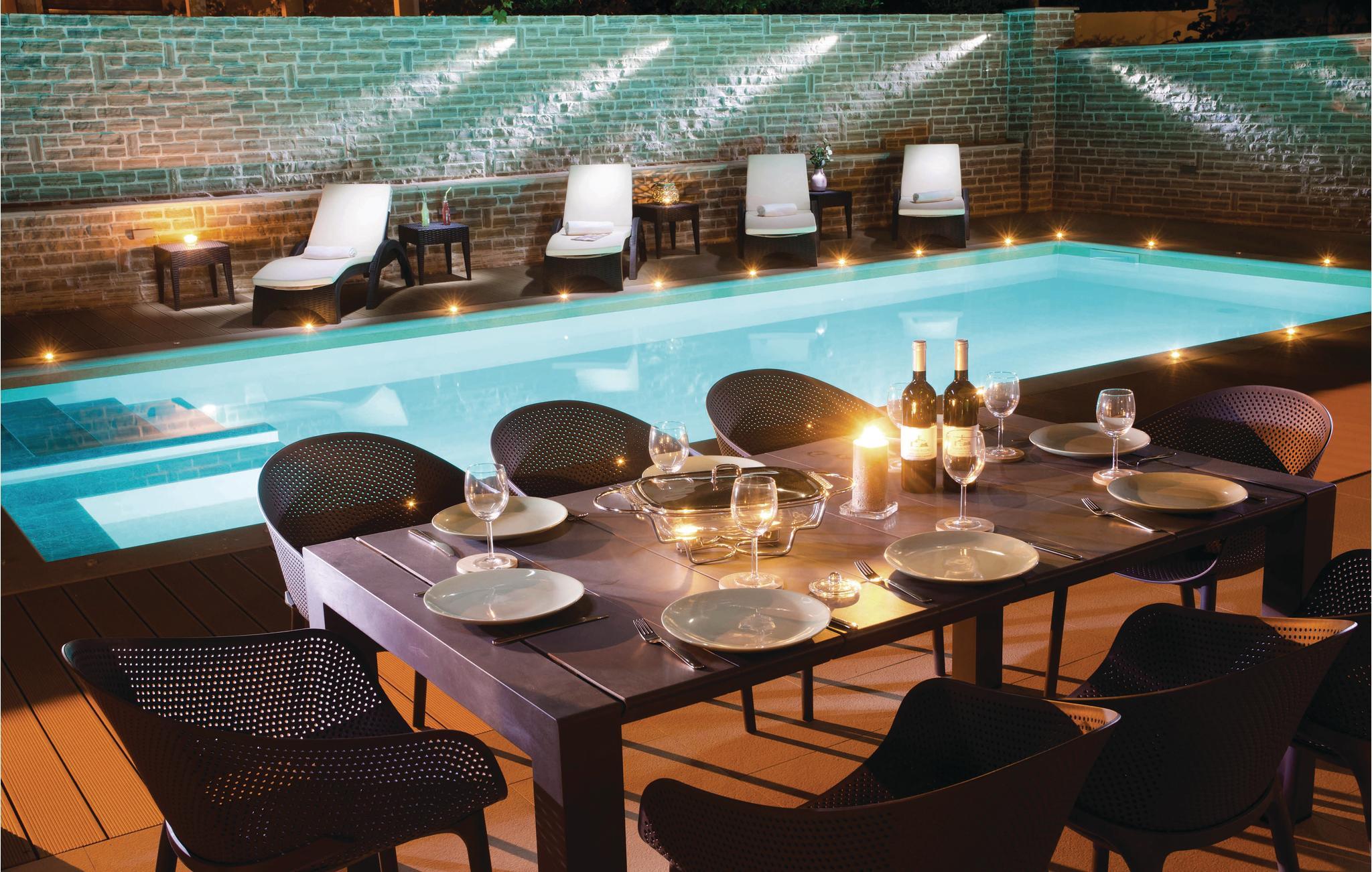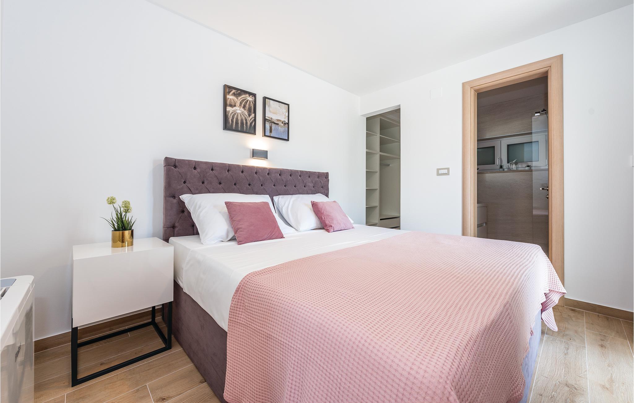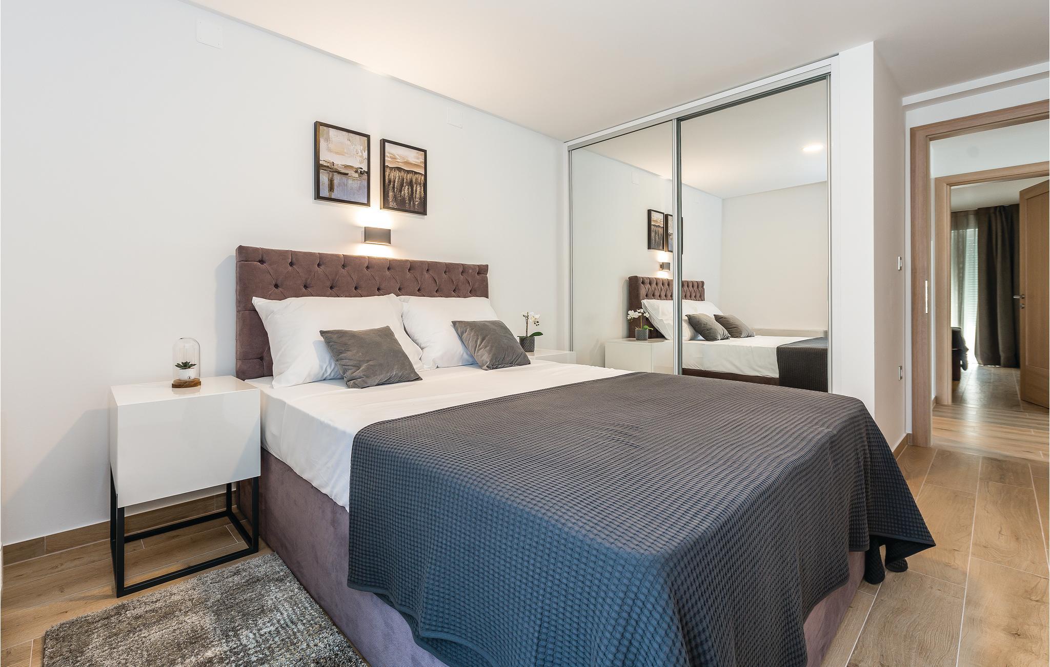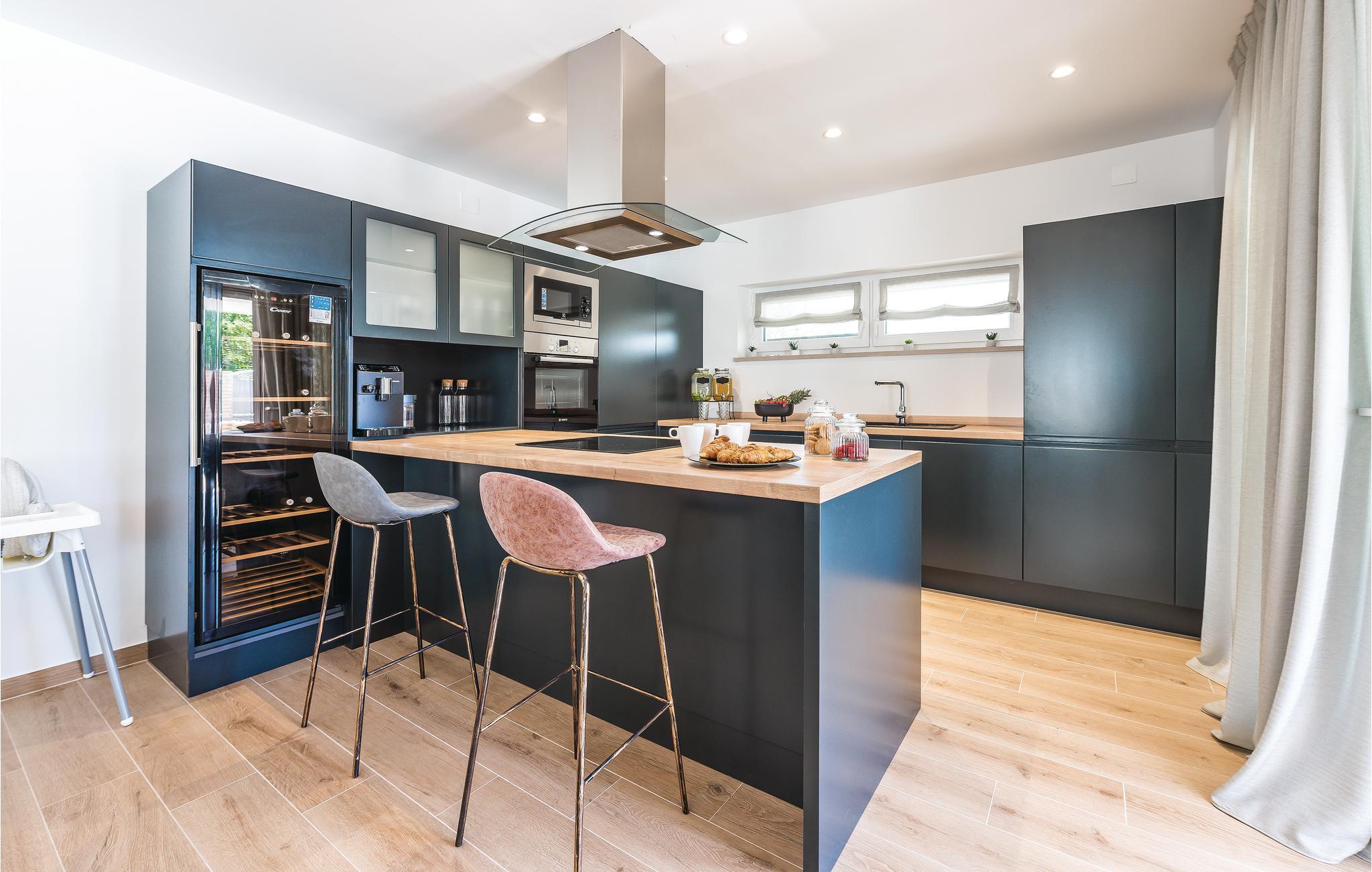 Denne elegante bassengvillaen vil inspirere deg. Vakker arkitektur, moderne design og høy kvalitet er hovedtrekkene i dette feriehuset. På takterrassen har du et boblebad med panoramautsikt over den vakre byen Pirovac. På varme dager kan du finne forfriskning i utendørsbassenget. Lag middag for familie og venner på grillen. En rullesteinstrand ligger bare 300 meter fra villaen din. Plasseringen er også et perfekt utgangspunkt for utflukter. Den nærliggende vakre øya Murter er en inngangsport til nasjonalparken Kornati-skjærgården. Besøk byene Sibenik og Zadar og den nærliggende livlige byen Vodice.