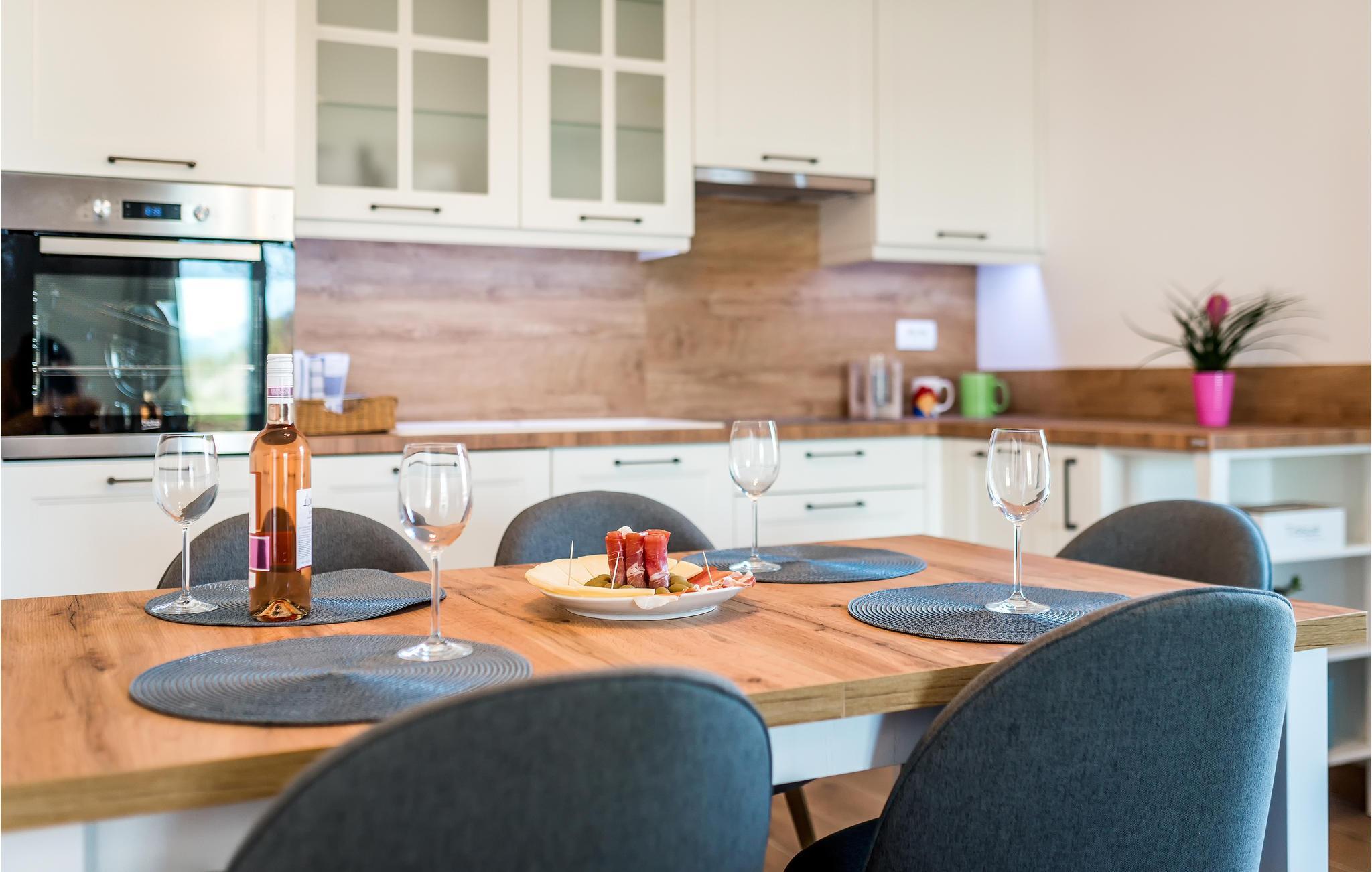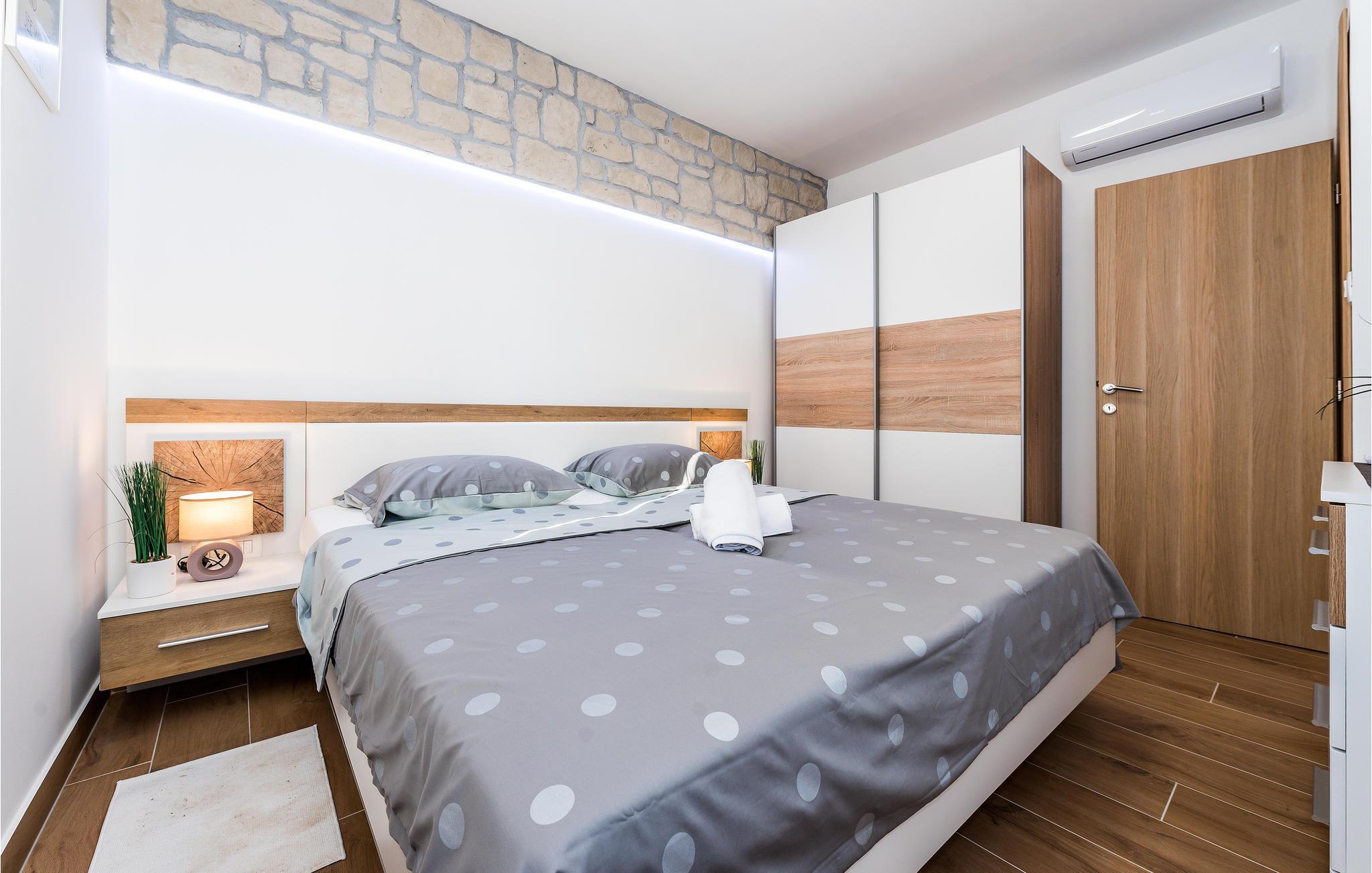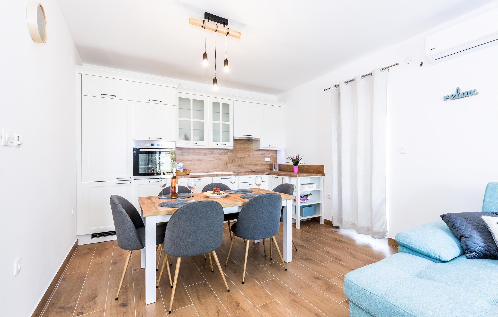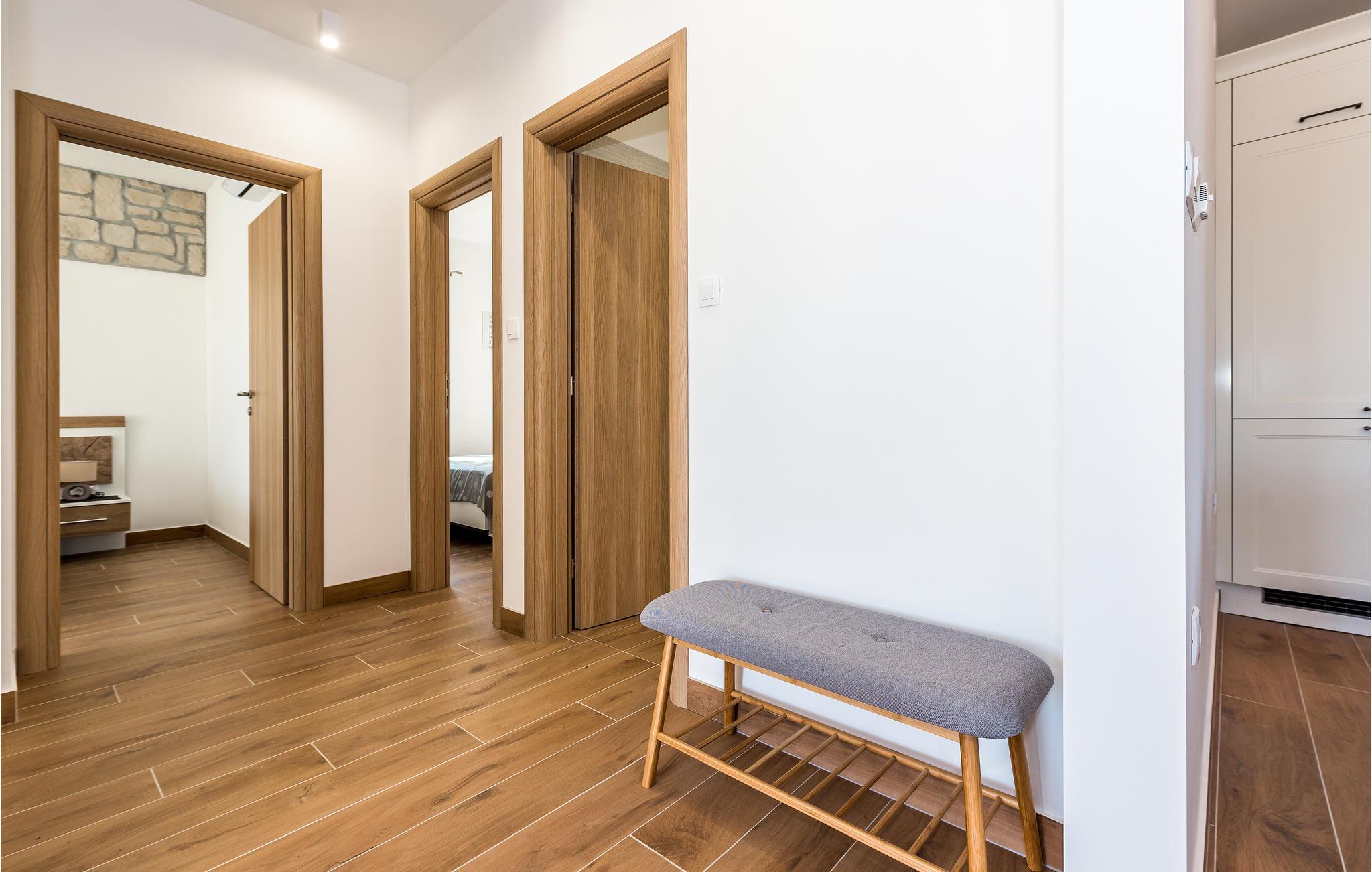 Huset i første etasje har et harmonisk spisekjøkken, 2 soverom og 2 bad, og tilbyr en hyggelig og koselig atmosfære. For aktive ferierende og naturelskere anbefaler vi en spasertur gjennom de omkringliggende landsbyene til Krka nasjonalpark, de arkeologiske stedene og det nest eldste vannverket som heter Jaruga. Kystbyene Skradin og Ibenik er også verdt et besøk.