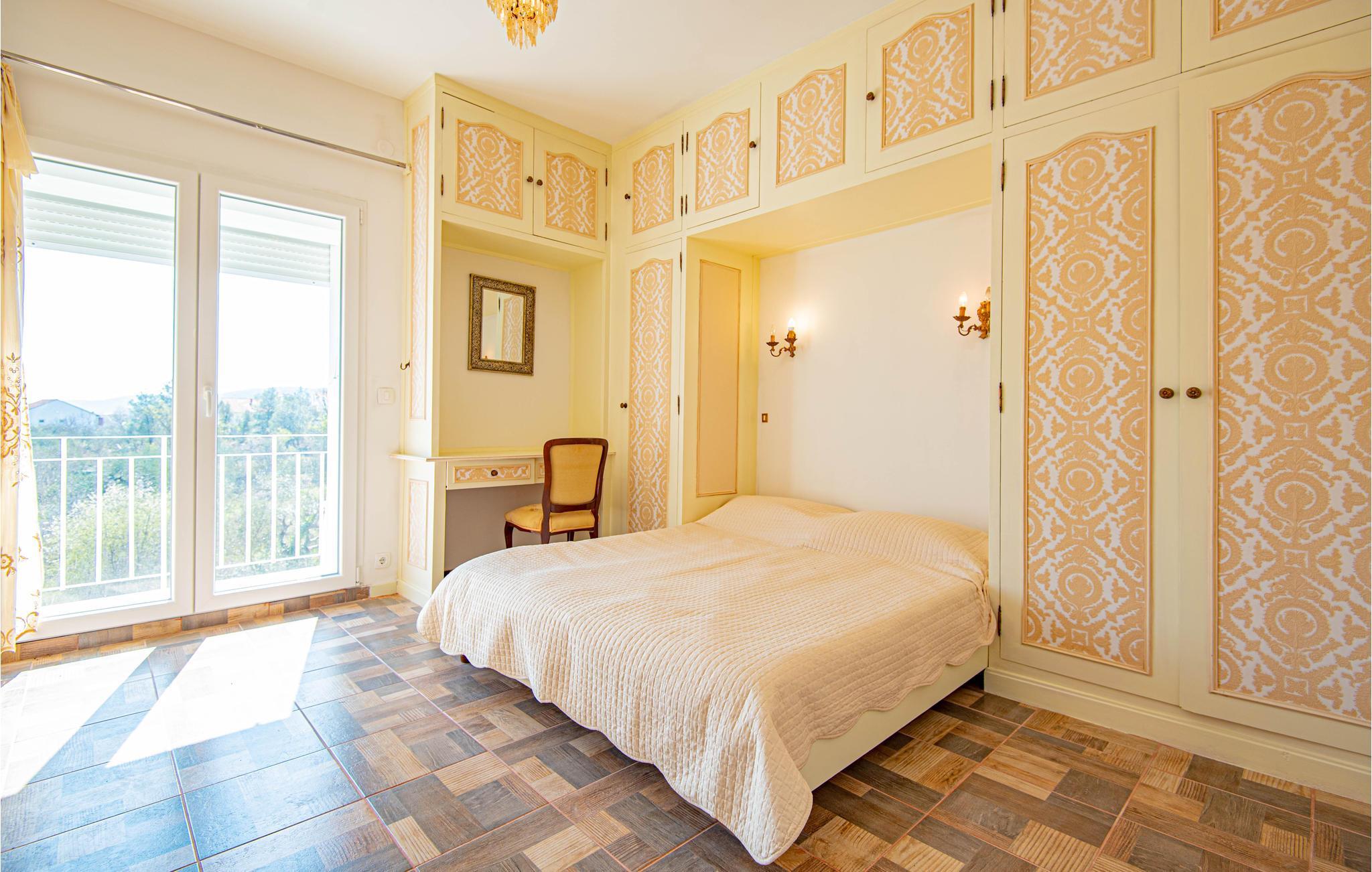 Ferieleiligheten ligger i 1. etasje i et familiehus. Her kan du nyte alle bekvemmeligheter og en fantastisk havutsikt. Med 2 bad og 6 soverom, alle utstyrt med komfortable dobbeltsenger, tilbyr leiligheten plass til 12 personer, 1 kjæledyr er også tillatt. Leiligheten er utstyrt med alle fasiliteter som trengs for en hyggelig ferie.
