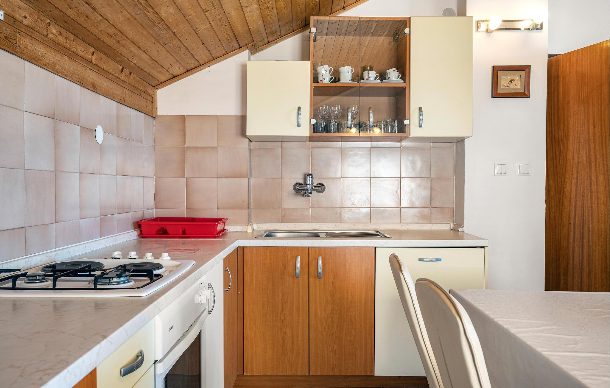 Tilbring ferien i denne ferieleiligheten i nærheten av Sibenik og Solaris, og nyt den innbydende atmosfæren og de hyggelige møblene. Det velutstyrte kjøkkenet innbyr til matlaging, mens du kan tilbringe koselige kvelder i den attraktive stuen.