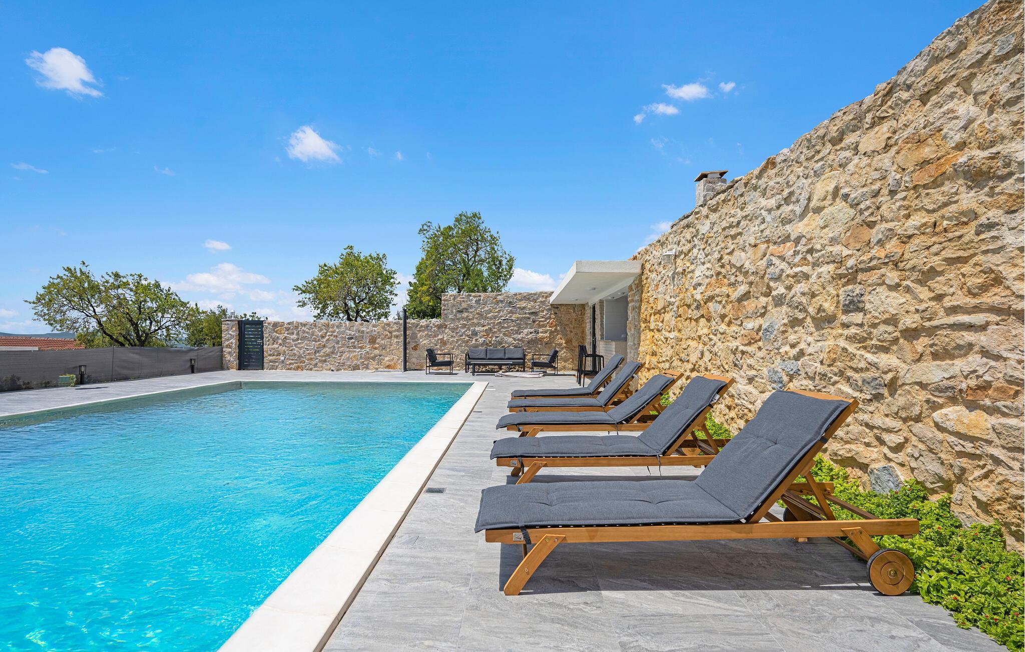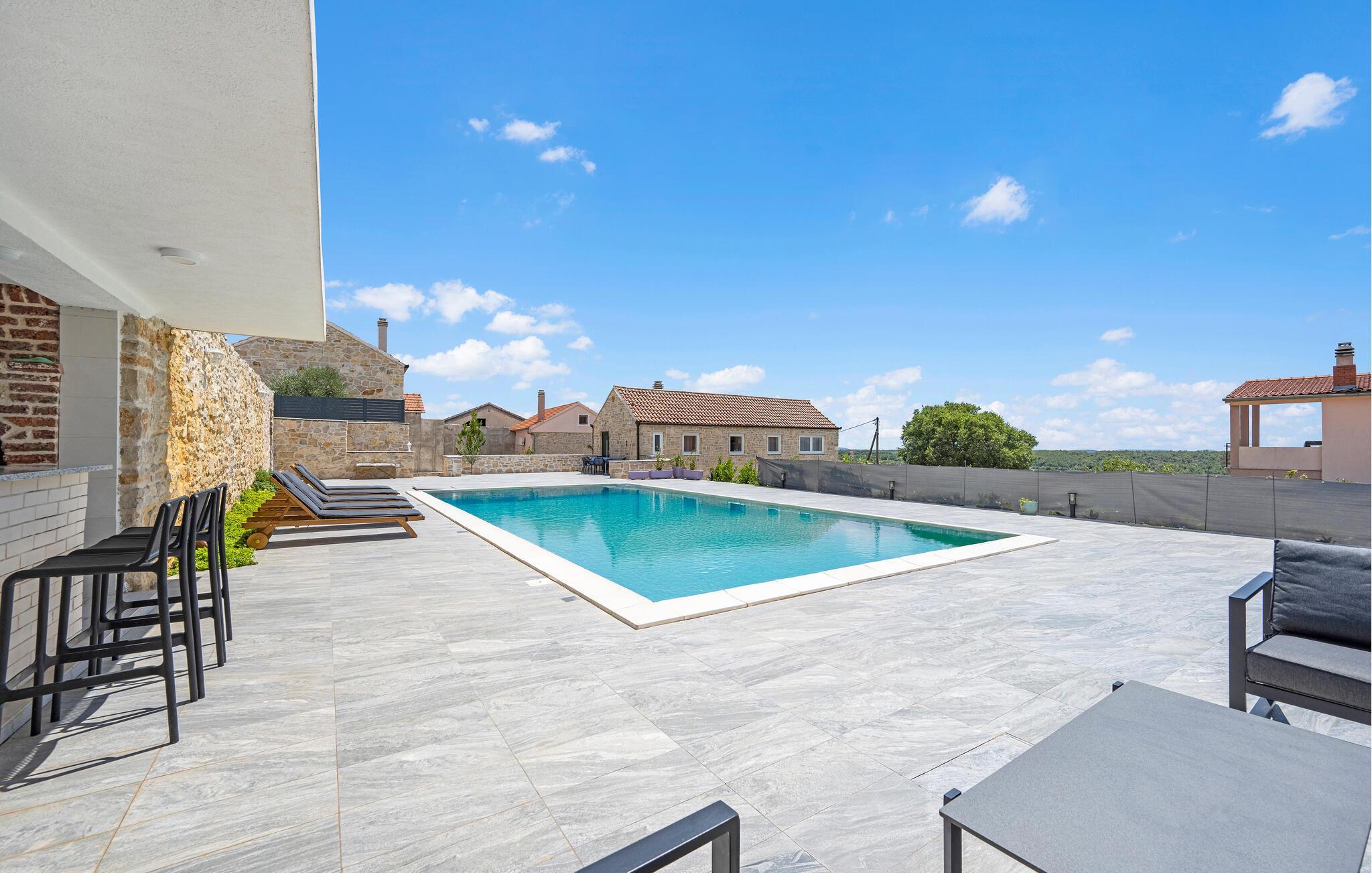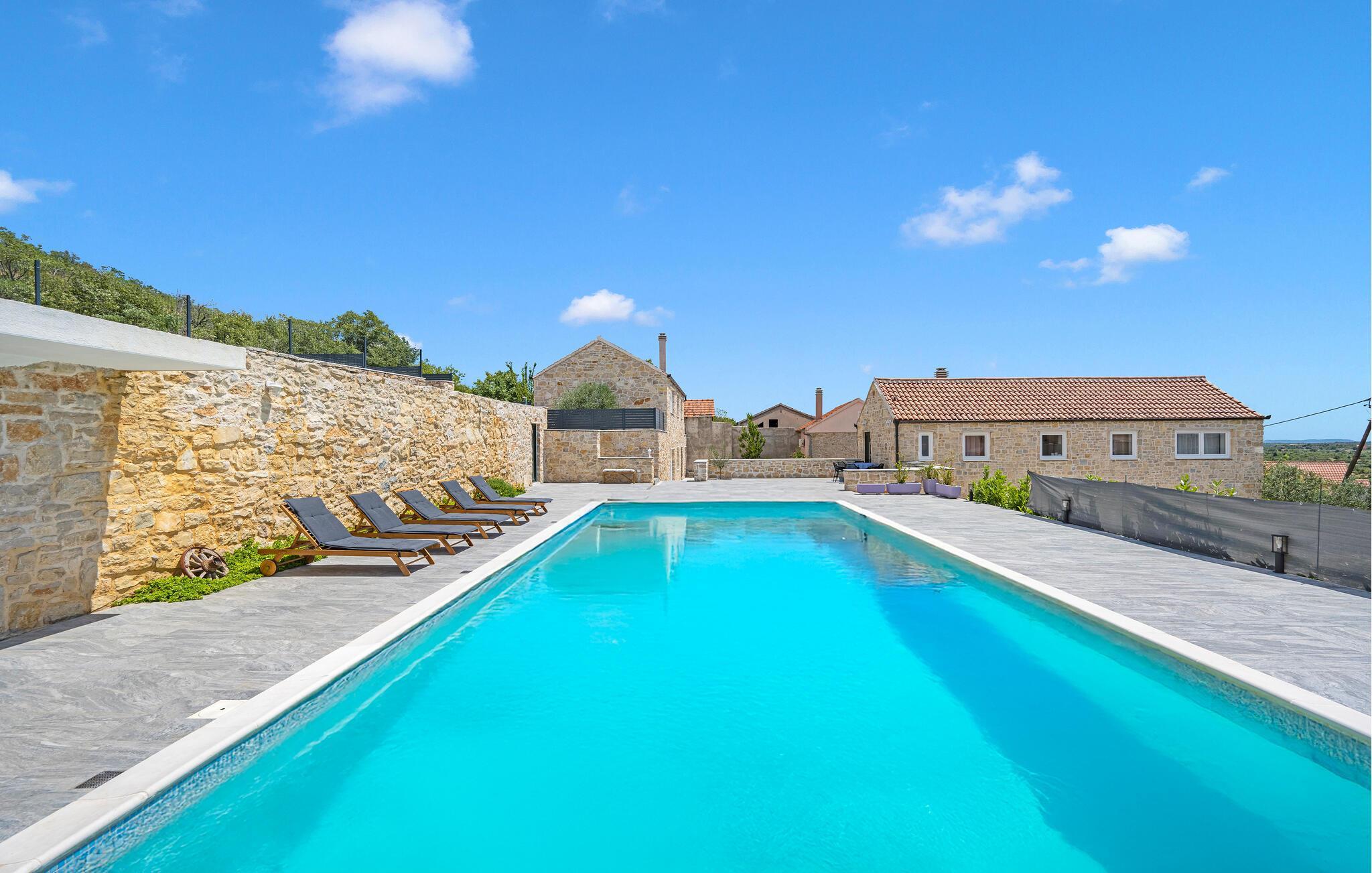 Dette nydelige feriehuset med stort svømmebasseng og vakker utsikt over det dalmatiske innlandet ønsker deg velkommen.
