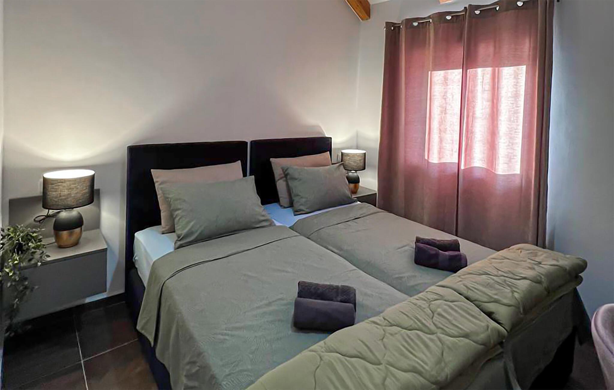 Opplev og oppdag området rundt. Dette vakre feriehuset ligger bare noen få kilometer fra vannet, middelalderbyen Skradin og alle andre interessante fasiliteter. Naturelskere vil få valuta for pengene i den nærliggende Krka nasjonalpark, for det er en opplevelse å bade og beundre de magiske fossene. Du kan også planlegge en tur til Sibenik og lære mer om byens historie, festninger og ta en båttur gjennom sundet til Adriaterhavet.