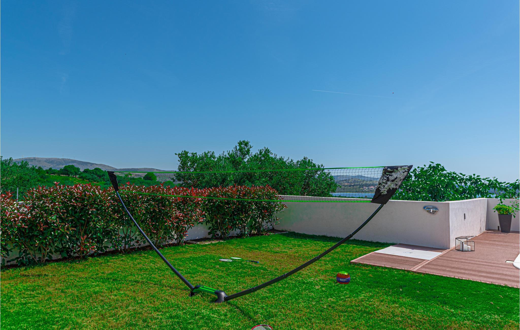 Velkommen til denne innbydende eiendommen. Du vil bo ikke langt fra den fortryllende dalmatiske kysten, i et romslig hus som passer best for familier med barn. Se frem til å komme inn i ditt vakre feriehus. Her kan du glede deg over det koselige uteområdet med basseng, solterrasse og nydelig sittegruppe i halvskygge med mye grønt rundt. Det er definitivt god plass til å spre seg her, og du kan sitte i den friske, milde luften hver kveld og nyte middelhavsatmosfæren. Du har allerede en perfekt utsikt over kysten herfra.