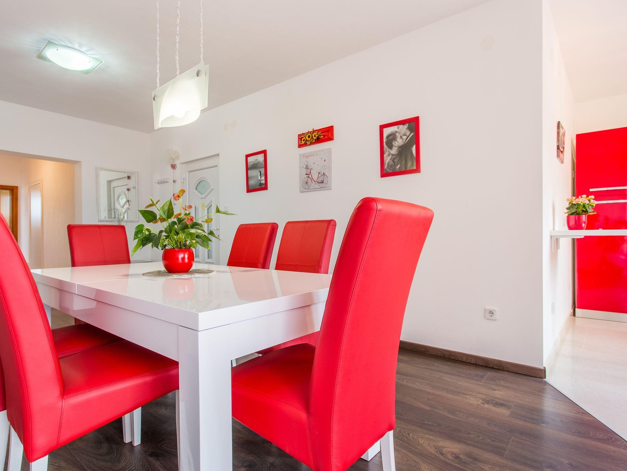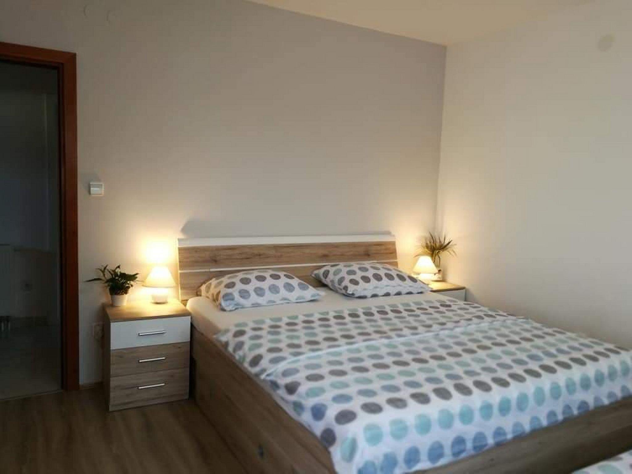 Ferienwohnung bietet Platz für 4 Gäste. Die Betten sind in Schlafzimmern, die es 2 gibt, innerhalb einer Gesamtfläche von 78m2, angeordnet. Die Gäste haben eine eigene Terrasse zur Verfügung, auf der sie in warmen Sommernächten genießen können. Das Apartment bietet Meerblick. Es ist erlaubt, Speisen auf dem Gemeinschafts-Grill vorzubereiten. IM PREIS INBEGRIFFEN: Kurtaxe, Endreinigung, Klimatisierung, Parkplatz, Internet, Kinderbett, Bügeleisen, Bügelbrett, Föhn. VERBINDLICHE ZUSÄTZLICHE KOSTEN: Aufzahlung für Kurzaufenthalte (prozentualer Zuschlag pro Nächtigungsanzahl: 30% - 1, 20% - 2, 10% - 3). Die Verfügbarkeit zusätzlicher Dienstleistungen in Ihrem reservierten Termin und die Preise derselben (falls nicht aufgeführt) müssen im Voraus überprüft werden. Zusätzliche Dienstleistungen die in der Zahlungsaufforderung nicht aufgeführt sind werden direkt beim Vermieter bezahlt, angenommen der Gast nutzt auch diese.