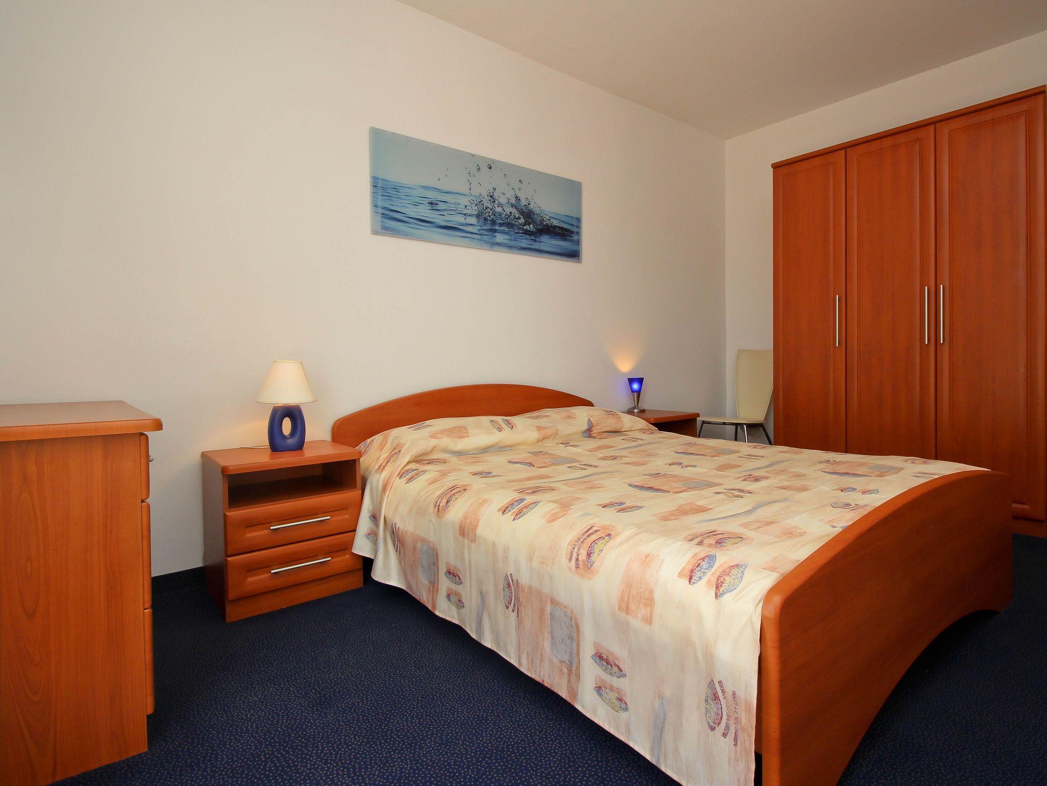 Ferienwohnung bietet Platz für 4 Gäste. Die Betten sind in Schlafzimmern, die es 1 gibt, und in Wohnzimmer, innerhalb einer Gesamtfläche von 32m2, angeordnet. Die Gäste haben eine eigene Terrasse zur Verfügung, auf der sie in warmen Sommernächten genießen können. Das Apartment bietet Meerblick. Es ist erlaubt, Speisen auf dem Gemeinschafts-Grill vorzubereiten. IM PREIS INBEGRIFFEN: Kurtaxe, Endreinigung, Klimatisierung, Parkplatz, Internet, Föhn. Die Verfügbarkeit zusätzlicher Dienstleistungen in Ihrem reservierten Termin und die Preise derselben (falls nicht aufgeführt) müssen im Voraus überprüft werden. Zusätzliche Dienstleistungen die in der Zahlungsaufforderung nicht aufgeführt sind werden direkt beim Vermieter bezahlt, angenommen der Gast nutzt auch diese.