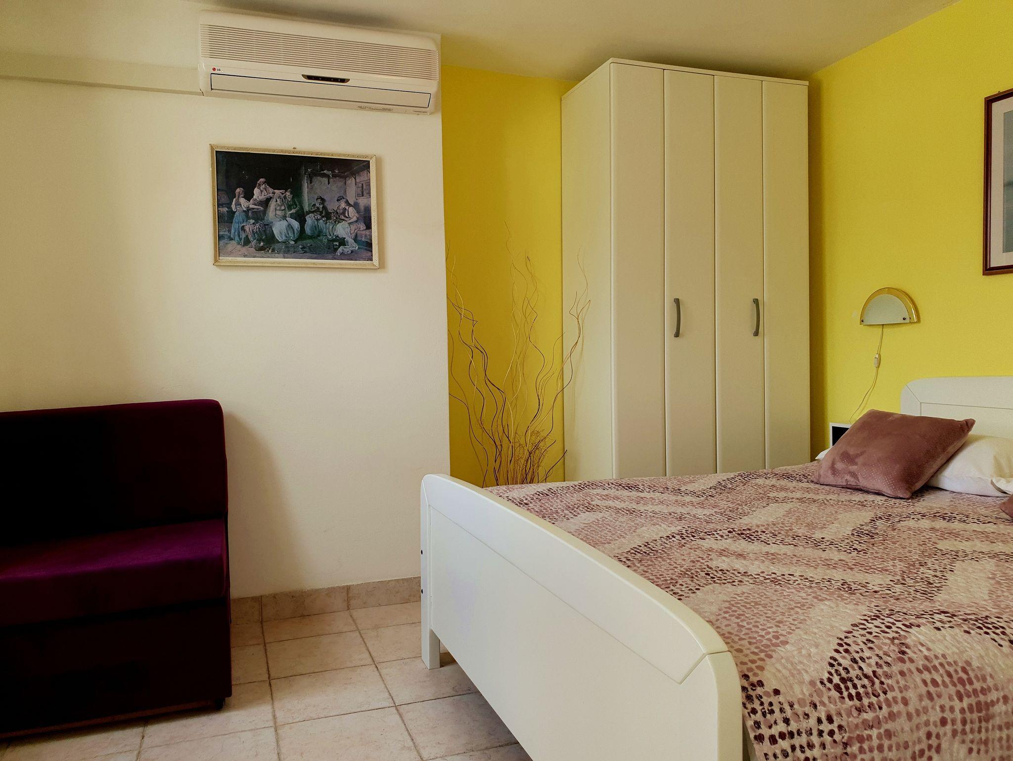 Ferienwohnung bietet Platz für 4 Gäste. Die Betten sind in Schlafzimmern, die es 1 gibt, und in Wohnzimmer, innerhalb einer Gesamtfläche von 38m2, angeordnet. Die Gäste haben eine eigene Terrasse zur Verfügung, auf der sie in warmen Sommernächten genießen können. Das Apartment bietet Meerblick. Es ist erlaubt, Speisen auf dem Gemeinschafts-Grill vorzubereiten. In der Unterkunftseinheit besteht die Möglichkeit des Mitbringens von Haustieren gegen Aufpreis. IM PREIS INBEGRIFFEN: Kurtaxe, Endreinigung, Klimatisierung, Parkplatz, Internet, Föhn. UNVERBINDLICHE ZUSÄTZLICHE KOSTEN: Haustiere (10,00 € pro Nacht). Die Verfügbarkeit zusätzlicher Dienstleistungen in Ihrem reservierten Termin und die Preise derselben (falls nicht aufgeführt) müssen im Voraus überprüft werden. Zusätzliche Dienstleistungen die in der Zahlungsaufforderung nicht aufgeführt sind werden direkt beim Vermieter bezahlt, angenommen der Gast nutzt auch diese.