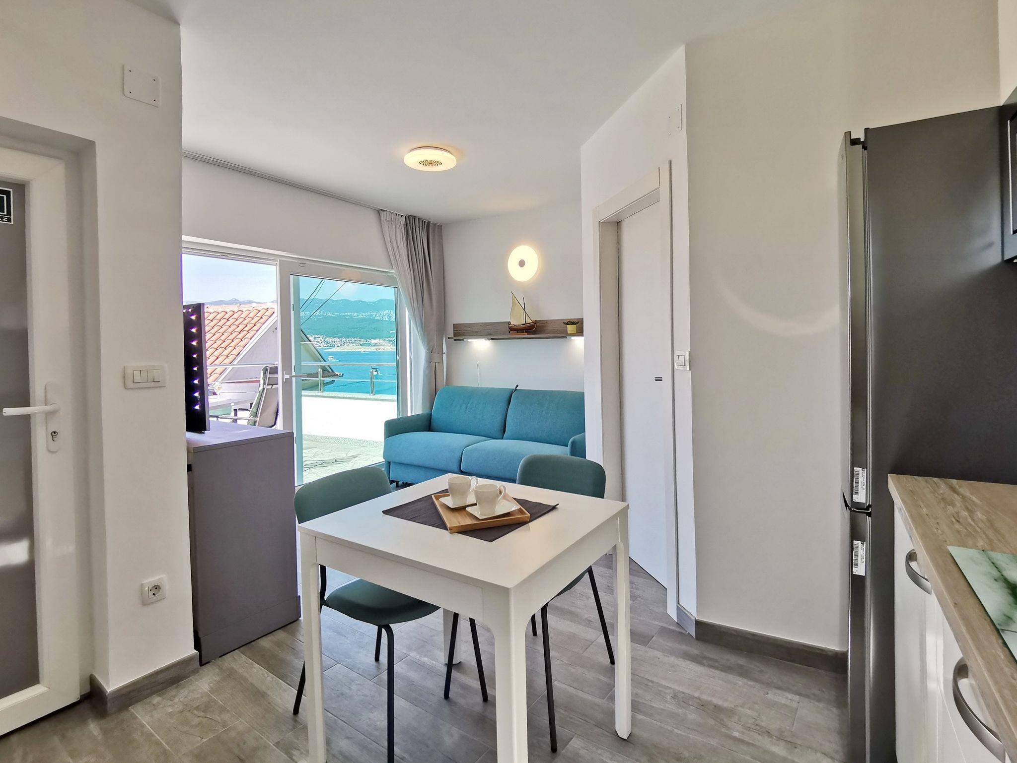 Studio bietet Platz für 2 Gäste. Die Betten sind in Wohnzimmer, innerhalb einer Gesamtfläche von 25m2, angeordnet. Die Gäste haben eine eigene Terrasse zur Verfügung, auf der sie in warmen Sommernächten genießen können. Das Studio-Apartment bietet Meerblick. Es ist erlaubt, Speisen auf dem Gemeinschafts-Grill vorzubereiten. IM PREIS INBEGRIFFEN: Kurtaxe, Endreinigung, Klimatisierung, Parkplatz, Internet, Föhn, tragbarer Grill. Die Verfügbarkeit zusätzlicher Dienstleistungen in Ihrem reservierten Termin und die Preise derselben (falls nicht aufgeführt) müssen im Voraus überprüft werden. Zusätzliche Dienstleistungen die in der Zahlungsaufforderung nicht aufgeführt sind werden direkt beim Vermieter bezahlt, angenommen der Gast nutzt auch diese.