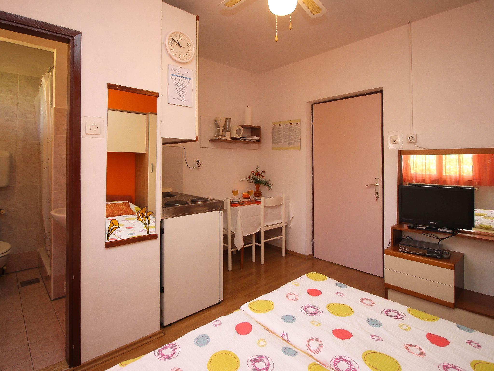 Studio bietet Platz für 2 Gäste. Die Betten sind in Schlafzimmern, die es 1 gibt, innerhalb einer Gesamtfläche von 20m2, angeordnet. Die Gäste haben eine eigene Terrasse zur Verfügung, auf der sie in warmen Sommernächten genießen können. Das Studio-Apartment bietet Meerblick. Es ist erlaubt, Speisen auf dem Gemeinschafts-Grill vorzubereiten. IM PREIS INBEGRIFFEN: Kurtaxe, Endreinigung, Klimatisierung, Parkplatz, Internet, Föhn. Die Verfügbarkeit zusätzlicher Dienstleistungen in Ihrem reservierten Termin und die Preise derselben (falls nicht aufgeführt) müssen im Voraus überprüft werden. Zusätzliche Dienstleistungen die in der Zahlungsaufforderung nicht aufgeführt sind werden direkt beim Vermieter bezahlt, angenommen der Gast nutzt auch diese.