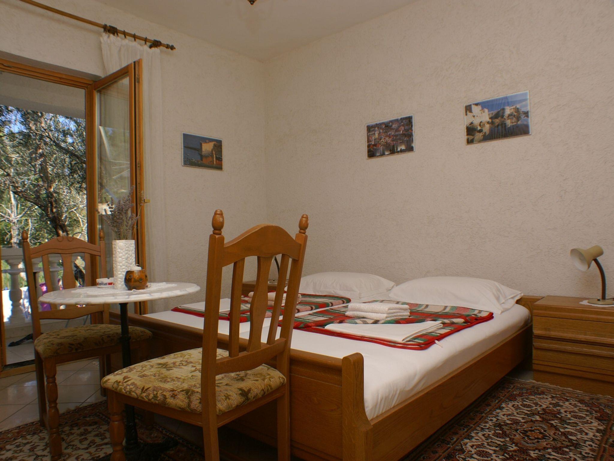 Zimmer bietet Platz für 2 Gäste. Die Betten sind in Schlafzimmern, die es 1 gibt, innerhalb einer Gesamtfläche von 17m2, angeordnet. Die Gäste haben eine eigene Terrasse zur Verfügung, auf der sie in warmen Sommernächten genießen können. In der Unterkunftseinheit besteht die Möglichkeit des Mitbringens von Haustieren gegen Aufpreis. Die reservierte Unterkunftseinheit ist ein Zimmer mit eigenem Badezimmer ohne die Möglichkeit der Nutzung einer Küche. IM PREIS INBEGRIFFEN: Kurtaxe, Endreinigung, Klimatisierung, Parkplatz, Internet, Kinderbett, Bügeleisen, Bügelbrett, Föhn. VERBINDLICHE ZUSÄTZLICHE KOSTEN: Aufzahlung für Kurzaufenthalte (prozentualer Zuschlag pro Nächtigungsanzahl: 30% - 1, 20% - 2, 10% - 3). UNVERBINDLICHE ZUSÄTZLICHE KOSTEN: Wäschewaschen (5,00 € Waschen), Bootsanlegeplatz (3,00 € pro Nacht), Haustiere (5,00 € pro Nacht). Die Verfügbarkeit zusätzlicher Dienstleistungen in Ihrem reservierten Termin und die Preise derselben (falls nicht aufgeführt) müssen im Voraus überprüft werden. Zusätzliche Dienstleistungen die in der Zahlungsaufforderung nicht aufgeführt sind werden direkt beim Vermieter bezahlt, angenommen der Gast nutzt auch diese.