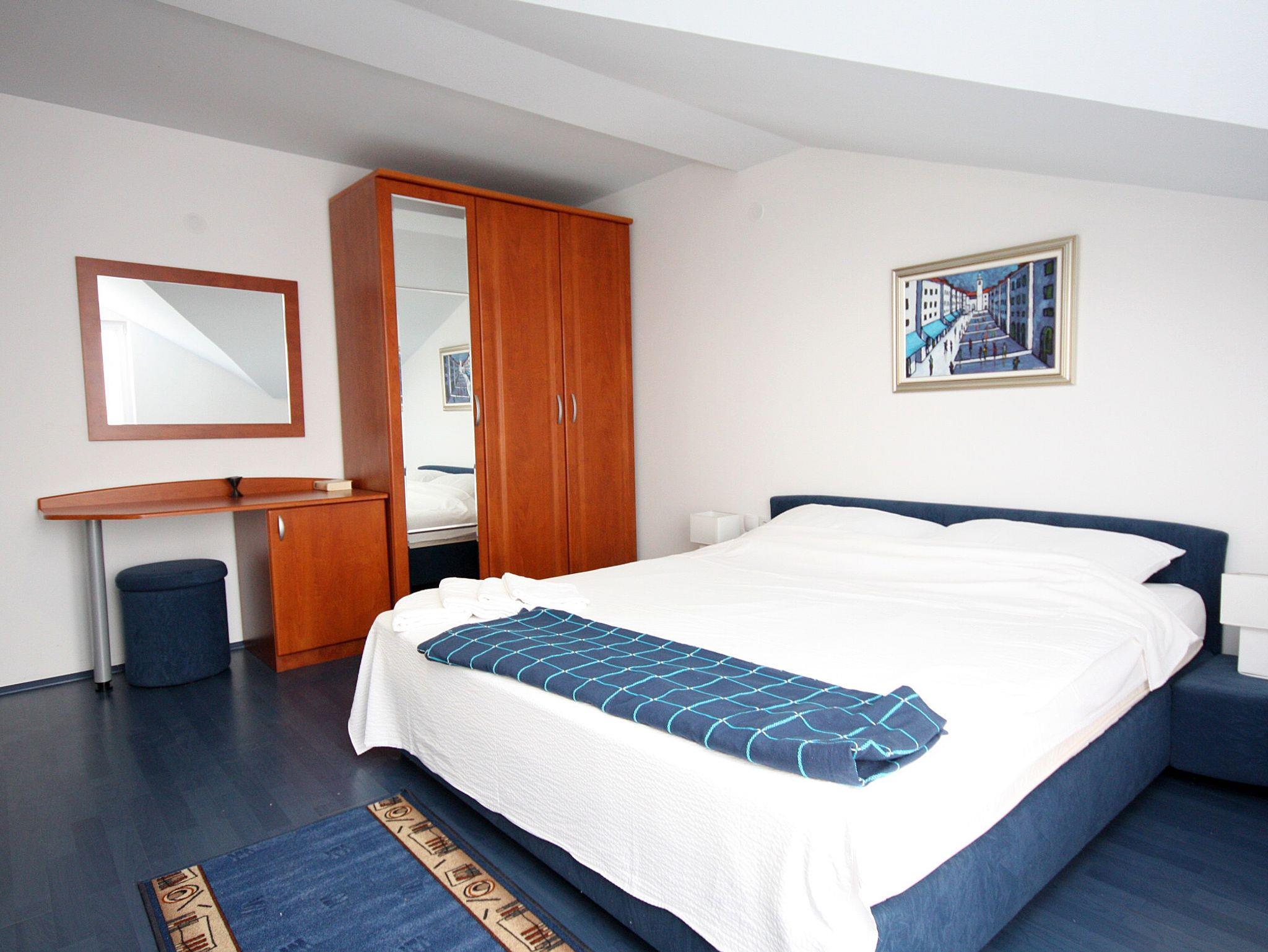 Ferienwohnung bietet Platz für 2 Gäste. Die Betten sind in Schlafzimmern, die es 1 gibt, innerhalb einer Gesamtfläche von 38m2, angeordnet. Die Gäste haben einen eigenen Balkon zur Verfügung, auf der sie in warmen Sommernächten genießen können. Das Apartment bietet Meerblick. Es ist erlaubt, Speisen auf dem Gemeinschafts-Grill vorzubereiten. In der Unterkunftseinheit besteht die Möglichkeit des Mitbringens von Haustieren gegen Aufpreis. IM PREIS INBEGRIFFEN: Endreinigung, Klimatisierung, Parkplatz, Internet, Kinderbett, Bügeleisen, Bügelbrett, Föhn. VERBINDLICHE ZUSÄTZLICHE KOSTEN: Kurtaxe (Erwachsene 0,93 € - 1,80 € Nacht/Person, Kinderermäßigung 12 - 17 Jahre), Aufzahlung für Kurzaufenthalte (prozentualer Zuschlag pro Nächtigungsanzahl: 30% - 1, 20% - 2, 10% - 3). UNVERBINDLICHE ZUSÄTZLICHE KOSTEN: Haustiere (12,00 € pro Nacht). Die Verfügbarkeit zusätzlicher Dienstleistungen in Ihrem reservierten Termin und die Preise derselben (falls nicht aufgeführt) müssen im Voraus überprüft werden. Zusätzliche Dienstleistungen die in der Zahlungsaufforderung nicht aufgeführt sind werden direkt beim Vermieter bezahlt, angenommen der Gast nutzt auch diese.