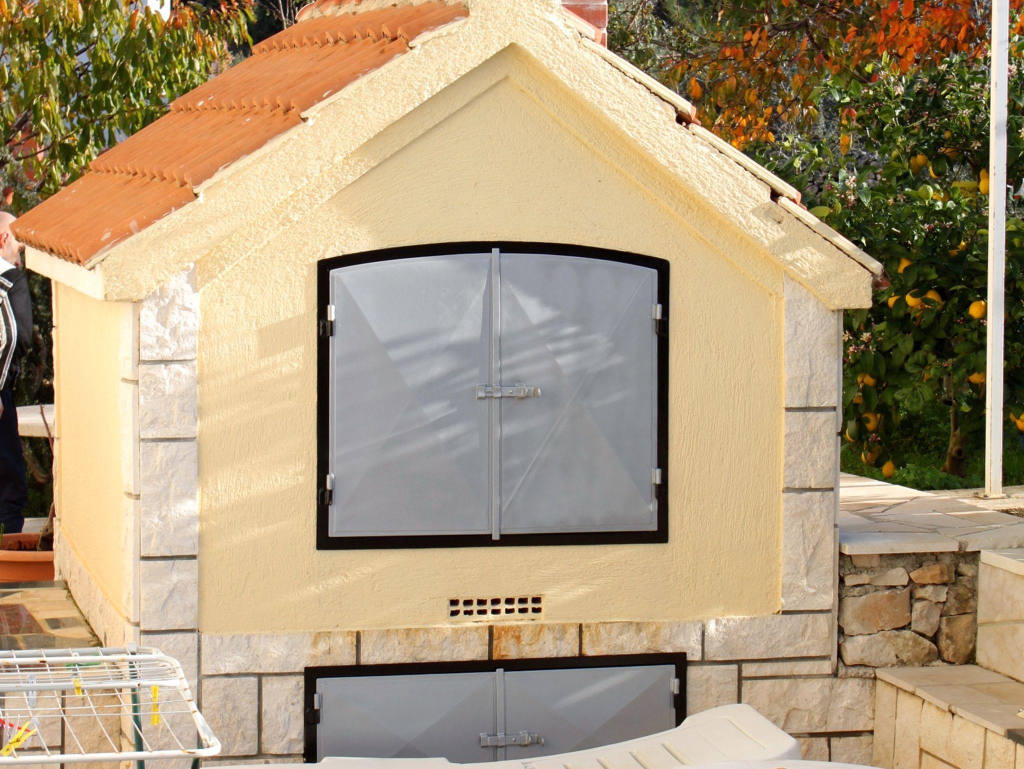 Umgebung des Objekts (Ordentlich), Hof (400m2, Wird mit einem anderen Objekt mitbenutzt, Kinderbereich, Sitzbereich), Parkplatz (Anzahl der Parkplätze: 8, Entfernung vom Objekt: im Hof), Grill: gemeinsam, WiFi Internet, Bügeleisen, Bügelbrett, Kinderbett