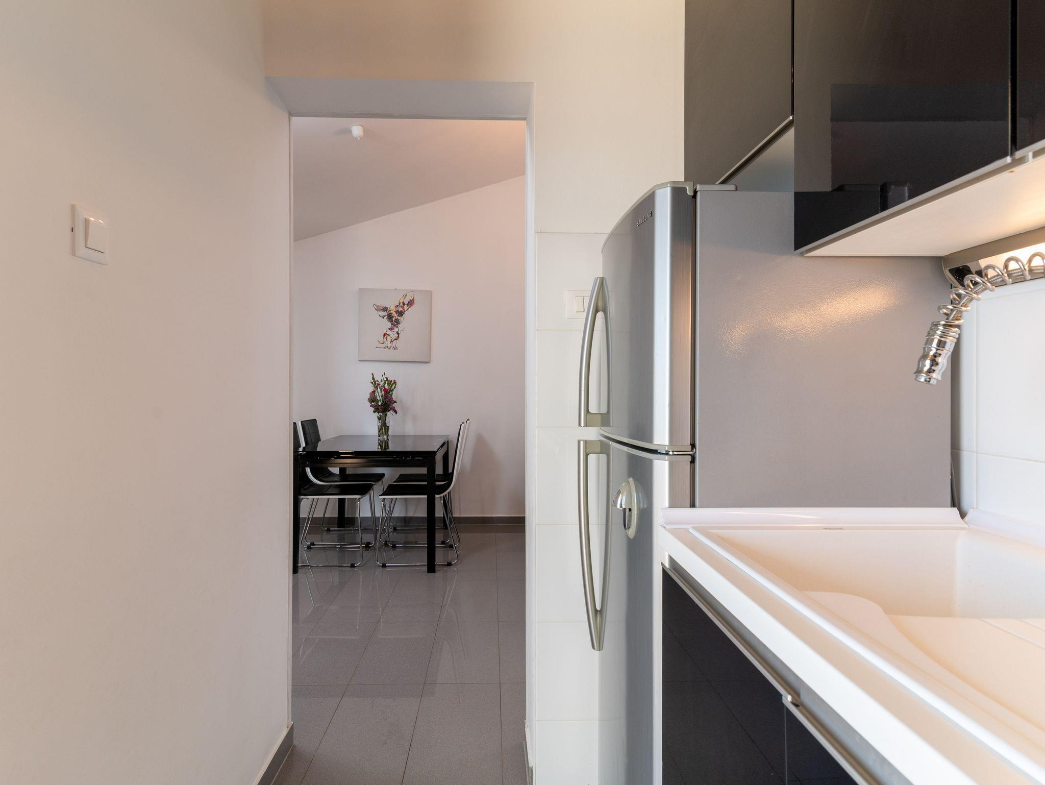 Ferienwohnung bietet Platz für 5 Gäste. Die Betten sind in Schlafzimmern, die es 2 gibt, und in Wohnzimmer, innerhalb einer Gesamtfläche von 48m2, angeordnet. Die Gäste haben eine eigene Terrasse zur Verfügung, auf der sie in warmen Sommernächten genießen können. Das Apartment bietet Meerblick. Für vollen Genuss und Entspannung gibt es einen privaten Grill für Gäste dieser Unterkunft. IM PREIS INBEGRIFFEN: Kurtaxe, Endreinigung, Klimatisierung, Parkplatz, Internet, Bügeleisen, Bügelbrett, Föhn, Sonnenschirm. Die Verfügbarkeit zusätzlicher Dienstleistungen in Ihrem reservierten Termin und die Preise derselben (falls nicht aufgeführt) müssen im Voraus überprüft werden. Zusätzliche Dienstleistungen die in der Zahlungsaufforderung nicht aufgeführt sind werden direkt beim Vermieter bezahlt, angenommen der Gast nutzt auch diese.