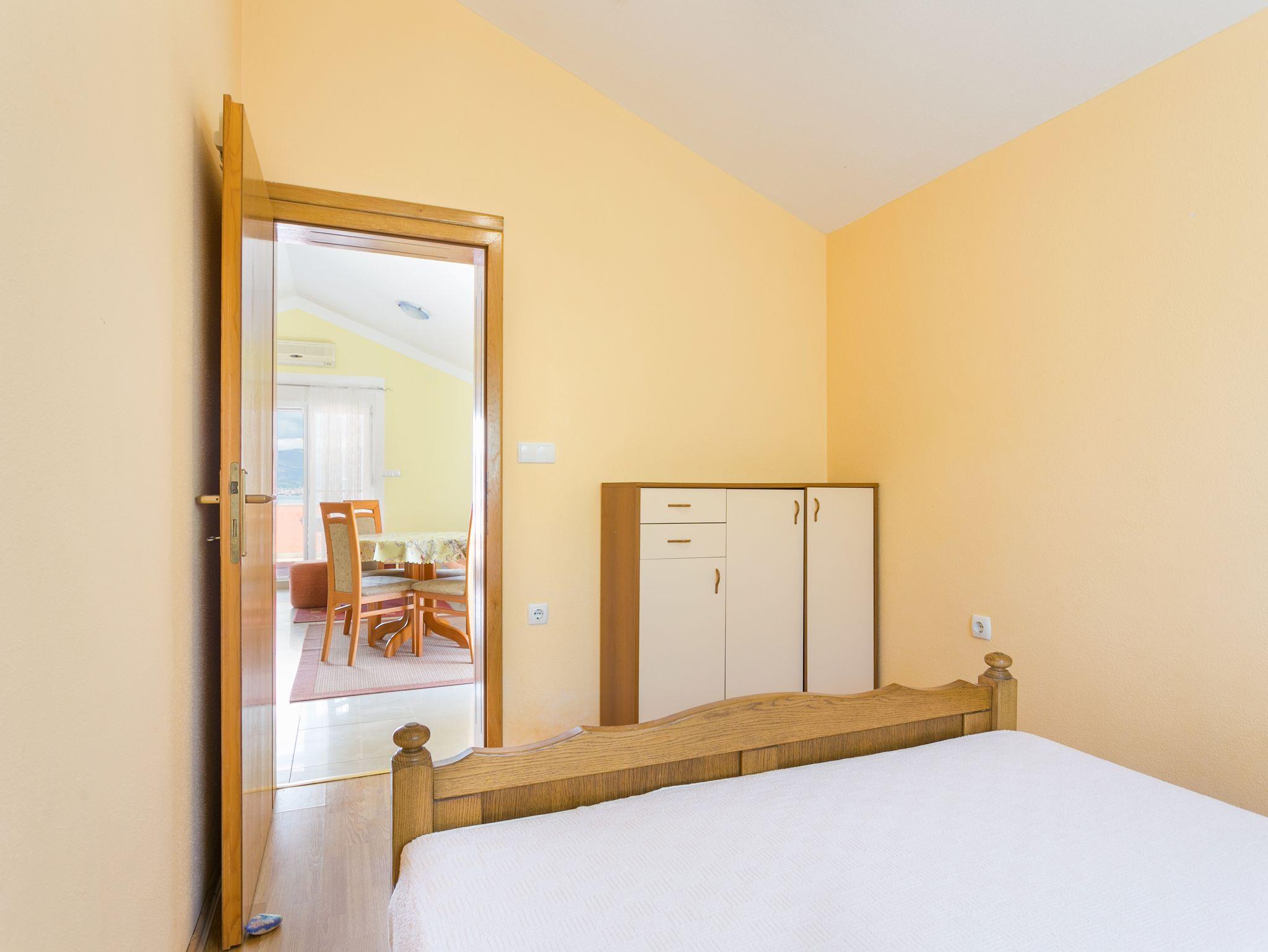 Ferienwohnung bietet Platz für 4 Gäste. Die Betten sind in Schlafzimmern, die es 2 gibt, innerhalb einer Gesamtfläche von 50m2, angeordnet. Die Gäste haben eine eigene Terrasse zur Verfügung, auf der sie in warmen Sommernächten genießen können. Das Apartment bietet Meerblick. Es ist erlaubt, Speisen auf dem Gemeinschafts-Grill vorzubereiten. IM PREIS INBEGRIFFEN: Kurtaxe, Endreinigung, Klimatisierung, Parkplatz, Internet, Bügeleisen, Bügelbrett, Föhn, tragbarer Grill. VERBINDLICHE ZUSÄTZLICHE KOSTEN: Aufzahlung für Kurzaufenthalte (prozentualer Zuschlag pro Nächtigungsanzahl: 30% - 1, 20% - 2, 10% - 3). Die Verfügbarkeit zusätzlicher Dienstleistungen in Ihrem reservierten Termin und die Preise derselben (falls nicht aufgeführt) müssen im Voraus überprüft werden. Zusätzliche Dienstleistungen die in der Zahlungsaufforderung nicht aufgeführt sind werden direkt beim Vermieter bezahlt, angenommen der Gast nutzt auch diese.