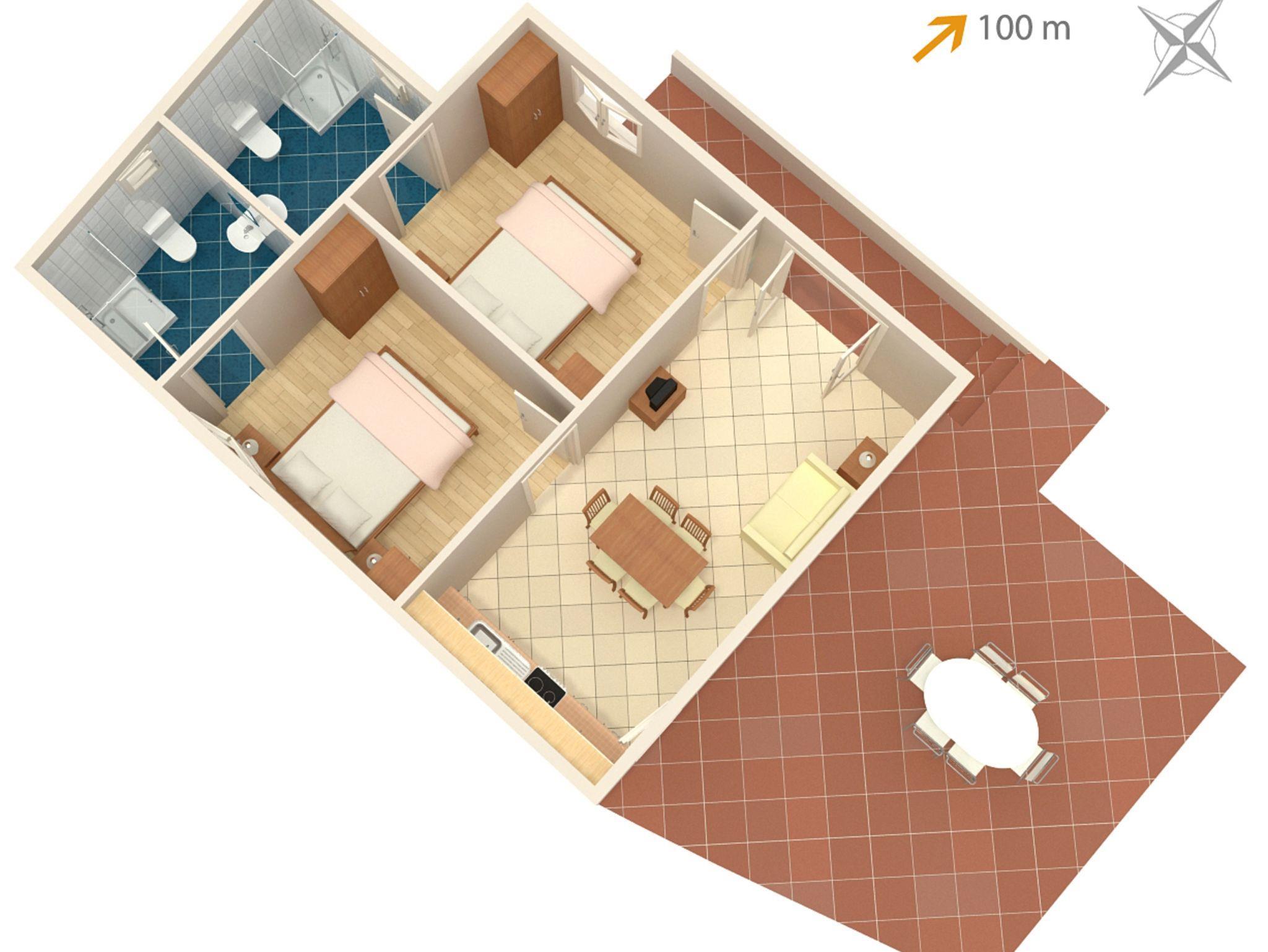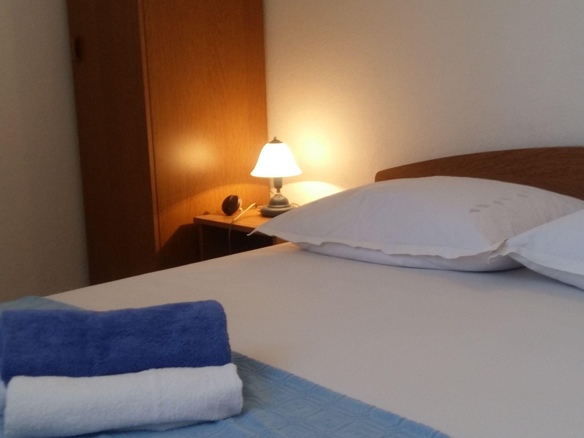 Ferienwohnung bietet Platz für 4 Gäste. Die Betten sind in Schlafzimmern, die es 2 gibt, innerhalb einer Gesamtfläche von 46m2, angeordnet. Die Gäste haben eine eigene Terrasse zur Verfügung, auf der sie in warmen Sommernächten genießen können. Es ist erlaubt, Speisen auf dem Gemeinschafts-Grill vorzubereiten. In der Unterkunftseinheit besteht die Möglichkeit des Mitbringens von Haustieren, und die Dienstleistung ist im Preis der Unterkunft enthalten. IM PREIS INBEGRIFFEN: Kurtaxe, Endreinigung, Klimatisierung, Parkplatz, Internet, Haustiere, Föhn, tragbarer Grill. VERBINDLICHE ZUSÄTZLICHE KOSTEN: Aufzahlung für Kurzaufenthalte (prozentualer Zuschlag pro Nächtigungsanzahl: 30% - 1, 20% - 2, 10% - 3). UNVERBINDLICHE ZUSÄTZLICHE KOSTEN: Wäschewaschen (5,00 € Waschen), Bootsanlegeplatz (5,00 € pro Nacht). Die Verfügbarkeit zusätzlicher Dienstleistungen in Ihrem reservierten Termin und die Preise derselben (falls nicht aufgeführt) müssen im Voraus überprüft werden. Zusätzliche Dienstleistungen die in der Zahlungsaufforderung nicht aufgeführt sind werden direkt beim Vermieter bezahlt, angenommen der Gast nutzt auch diese. Ermäßigung auf den Grundpreis: Gratistag 14=13 (bei einem Aufenthalt von 14 Tagen oder mehr erhalten Sie einen Gratistag für den Aufenthalt bis 31.12.26).