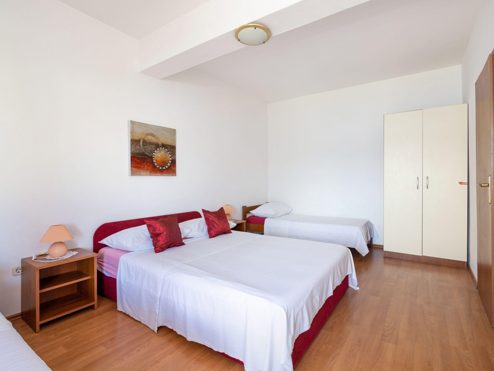 Ferienwohnung bietet Platz für 4 Gäste. Die Betten sind in Schlafzimmern, die es 1 gibt, innerhalb einer Gesamtfläche von 35m2, angeordnet. Die Gäste haben eine eigene Terrasse zur Verfügung, auf der sie in warmen Sommernächten genießen können. Das Apartment bietet Meerblick. Es ist erlaubt, Speisen auf dem Gemeinschafts-Grill vorzubereiten. IM PREIS INBEGRIFFEN: Kurtaxe, Endreinigung, Klimatisierung, Parkplatz, Internet, Bügeleisen, Bügelbrett, Föhn. VERBINDLICHE ZUSÄTZLICHE KOSTEN: Aufzahlung für Kurzaufenthalte (prozentualer Zuschlag pro Nächtigungsanzahl: 30% - 1, 20% - 2, 10% - 3). UNVERBINDLICHE ZUSÄTZLICHE KOSTEN: Wäschewaschen (5,00 € Waschen). Die Verfügbarkeit zusätzlicher Dienstleistungen in Ihrem reservierten Termin und die Preise derselben (falls nicht aufgeführt) müssen im Voraus überprüft werden. Zusätzliche Dienstleistungen die in der Zahlungsaufforderung nicht aufgeführt sind werden direkt beim Vermieter bezahlt, angenommen der Gast nutzt auch diese.