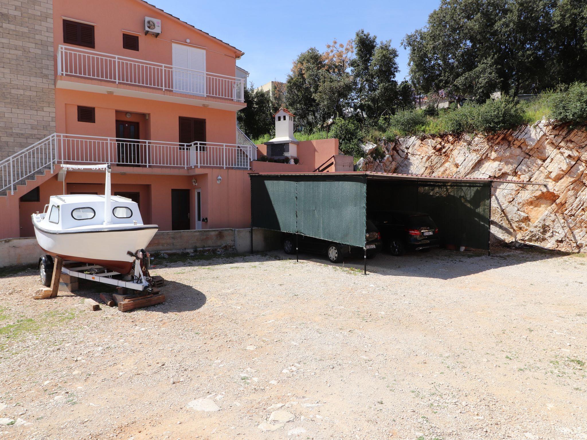Ferienwohnung bietet Platz für 7 Gäste. Die Betten sind in Schlafzimmern, die es 3 gibt, und in Wohnzimmer, innerhalb einer Gesamtfläche von 85m2, angeordnet. Die Gäste haben eine eigene Terrasse zur Verfügung, auf der sie in warmen Sommernächten genießen können. Das Apartment bietet Meerblick. Es ist erlaubt, Speisen auf dem Gemeinschafts-Grill vorzubereiten. IM PREIS INBEGRIFFEN: Kurtaxe, Endreinigung, Klimatisierung, Parkplatz, Internet, Bootsanlegeplatz, Bügeleisen, Bügelbrett. VERBINDLICHE ZUSÄTZLICHE KOSTEN: Aufzahlung für Kurzaufenthalte (prozentualer Zuschlag pro Nächtigungsanzahl: 30% - 1, 20% - 2, 10% - 3). Die Verfügbarkeit zusätzlicher Dienstleistungen in Ihrem reservierten Termin und die Preise derselben (falls nicht aufgeführt) müssen im Voraus überprüft werden. Zusätzliche Dienstleistungen die in der Zahlungsaufforderung nicht aufgeführt sind werden direkt beim Vermieter bezahlt, angenommen der Gast nutzt auch diese.