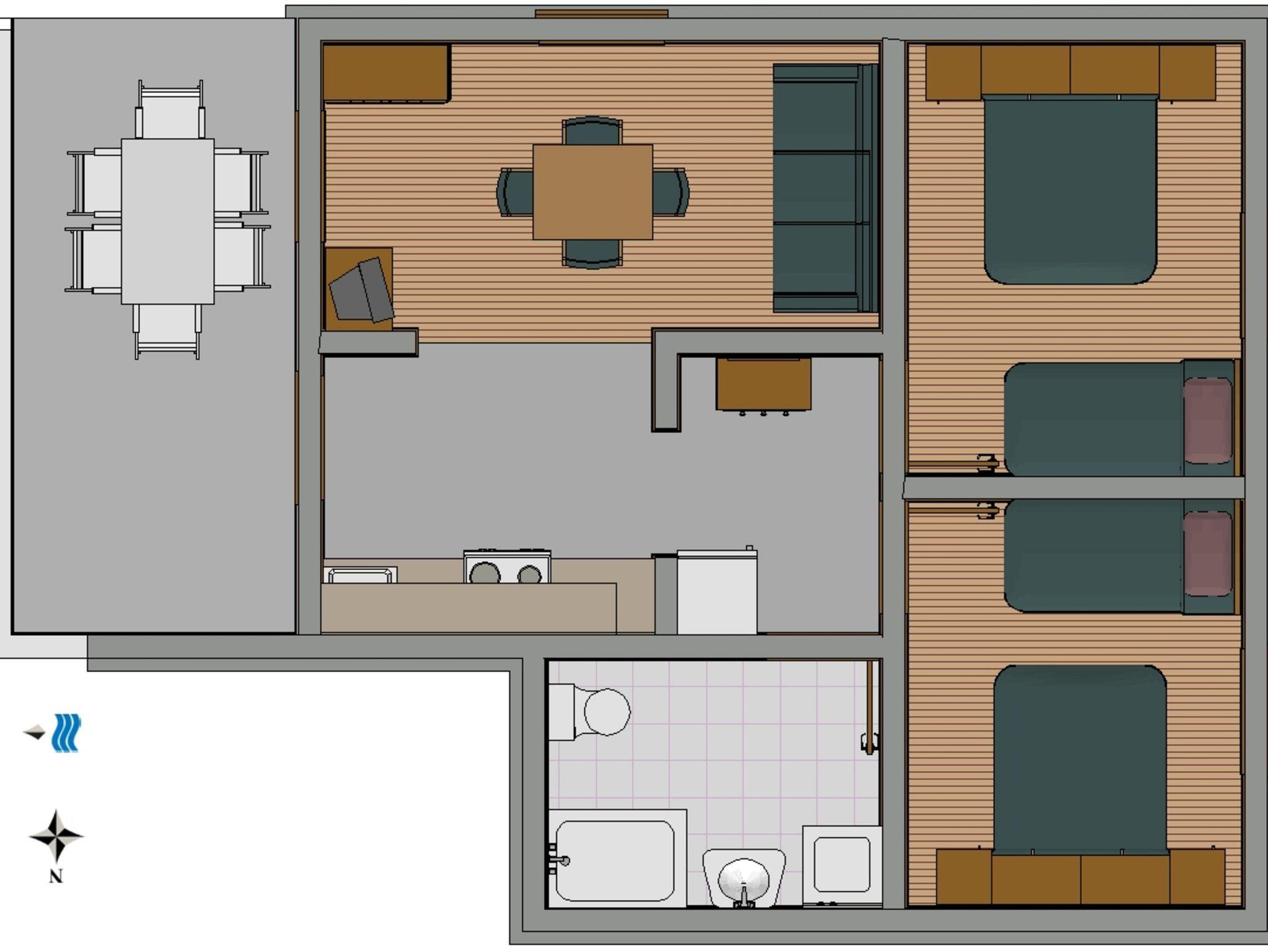 Ferienwohnung bietet Platz für 4 Gäste. Die Betten sind in Schlafzimmern, die es 2 gibt, innerhalb einer Gesamtfläche von 47m2, angeordnet. Die Gäste haben eine eigene Terrasse zur Verfügung, auf der sie in warmen Sommernächten genießen können. IM PREIS INBEGRIFFEN: Kurtaxe, Endreinigung, Klimatisierung, Wäschewaschen, Bügeleisen, Bügelbrett, Föhn, Sonnenschirm, 2 Kinderbettchen (im Preis enthalten). Die Verfügbarkeit zusätzlicher Dienstleistungen in Ihrem reservierten Termin und die Preise derselben (falls nicht aufgeführt) müssen im Voraus überprüft werden. Zusätzliche Dienstleistungen die in der Zahlungsaufforderung nicht aufgeführt sind werden direkt beim Vermieter bezahlt, angenommen der Gast nutzt auch diese. Ermäßigung auf den Grundpreis: Gratistag 14=13 (bei einem Aufenthalt von 14 Tagen oder mehr erhalten Sie einen Gratistag für den Aufenthalt bis 31.12.26).