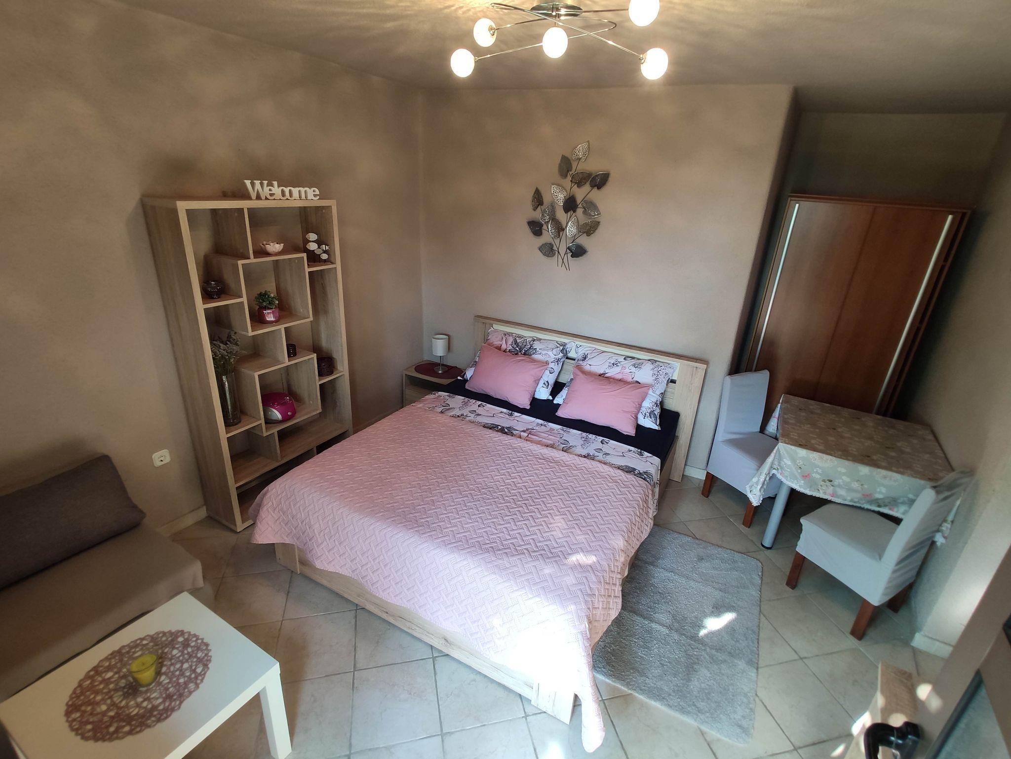 Studio bietet Platz für 2 Gäste. Die Betten sind in Schlafzimmern, die es 1 gibt, innerhalb einer Gesamtfläche von 21m2, angeordnet. Für vollen Genuss und Entspannung gibt es einen privaten Grill für Gäste dieser Unterkunft. In der Unterkunftseinheit besteht die Möglichkeit des Mitbringens von Haustieren gegen Aufpreis. Die reservierte Unterkunftseinheit hat keinen Balkon und keine Terrasse. IM PREIS INBEGRIFFEN: Kurtaxe, Endreinigung, Klimatisierung, Parkplatz, Internet, Bügeleisen, Bügelbrett, Föhn, 1 Bett für Kinder (im Preis enthalten). VERBINDLICHE ZUSÄTZLICHE KOSTEN: Aufzahlung für Kurzaufenthalte (prozentualer Zuschlag pro Nächtigungsanzahl: 30% - 1, 20% - 2, 10% - 3). UNVERBINDLICHE ZUSÄTZLICHE KOSTEN: Haustiere (10,00 € pro Nacht). Die Verfügbarkeit zusätzlicher Dienstleistungen in Ihrem reservierten Termin und die Preise derselben (falls nicht aufgeführt) müssen im Voraus überprüft werden. Zusätzliche Dienstleistungen die in der Zahlungsaufforderung nicht aufgeführt sind werden direkt beim Vermieter bezahlt, angenommen der Gast nutzt auch diese. Ermäßigung auf den Grundpreis: Gratistag 14=13 (bei einem Aufenthalt von 14 Tagen oder mehr erhalten Sie einen Gratistag für den Aufenthalt bis 31.12.26).