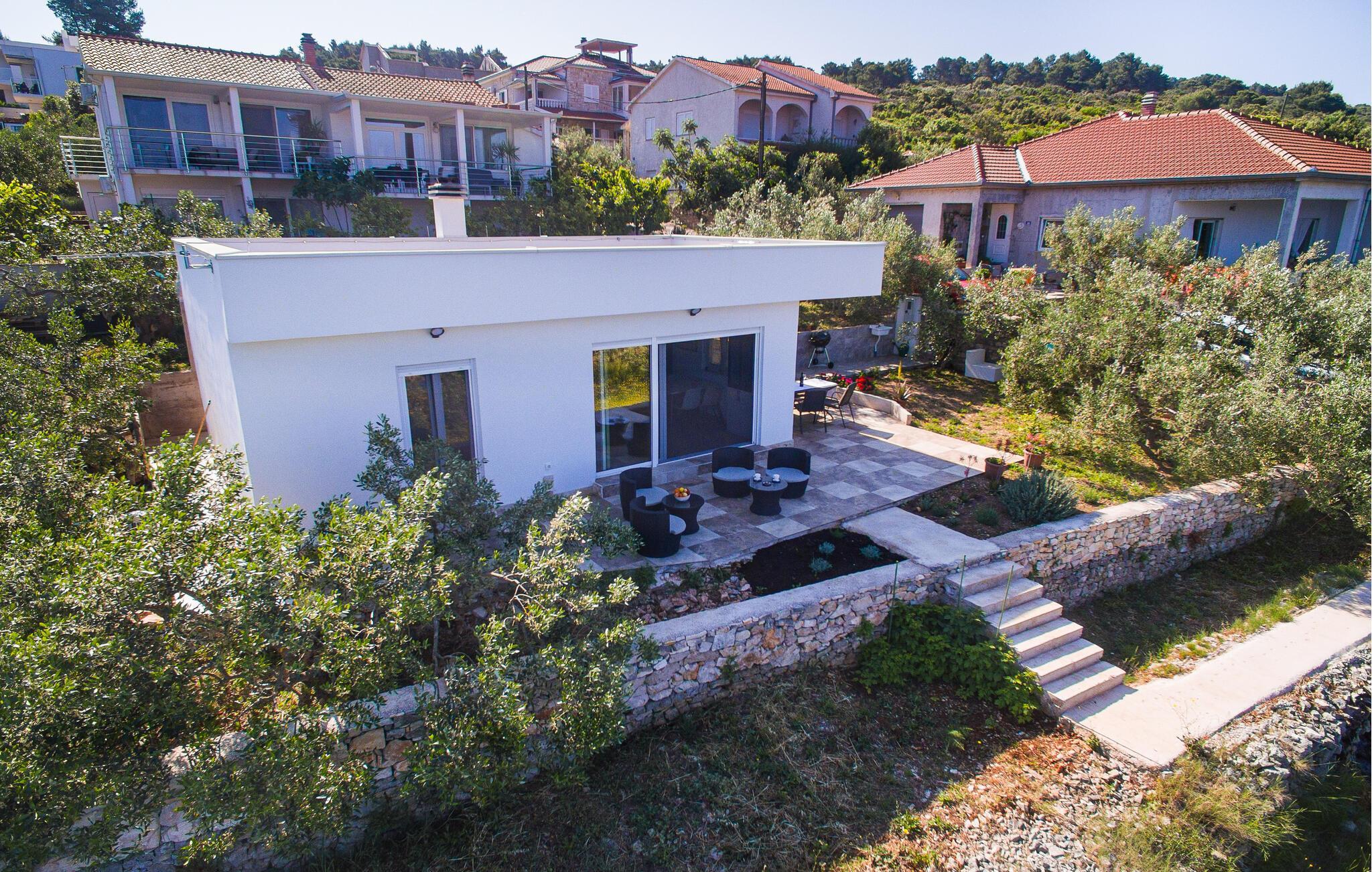 Uforglemmelige dager er forhåndsprogrammert i dette huset. Lyse rom, tidløs innredning og vidstrakt utsikt over havet og det kuperte landskapet skaper den ideelle feriestemningen. Se favorittserien din i den komfortable sofaen eller lytt til en interessant podcast før du tilbereder et deilig måltid på det moderne kjøkkenet og skåler med et glass kroatisk vin.