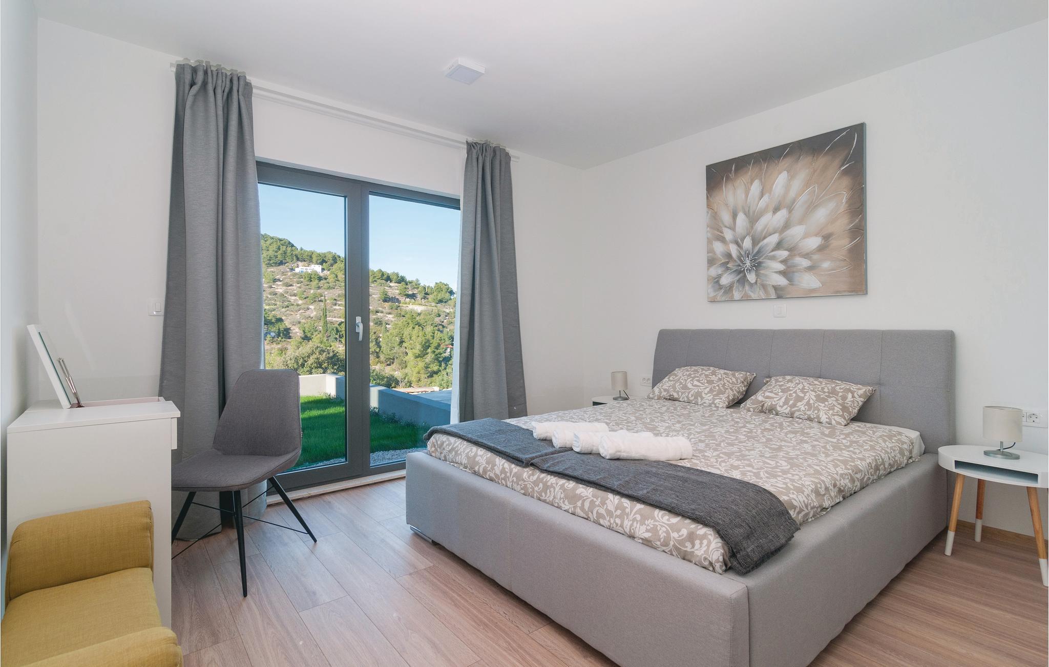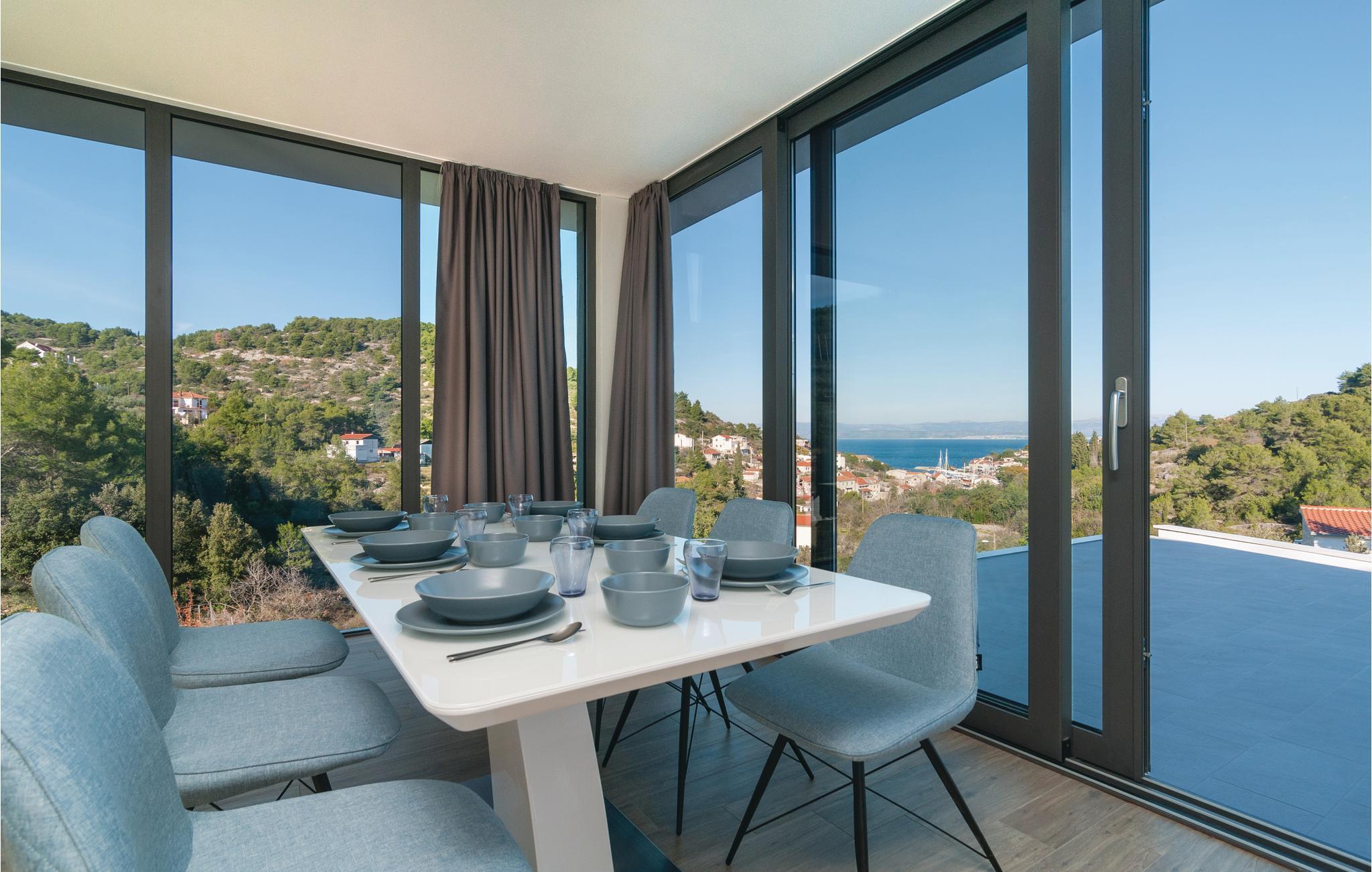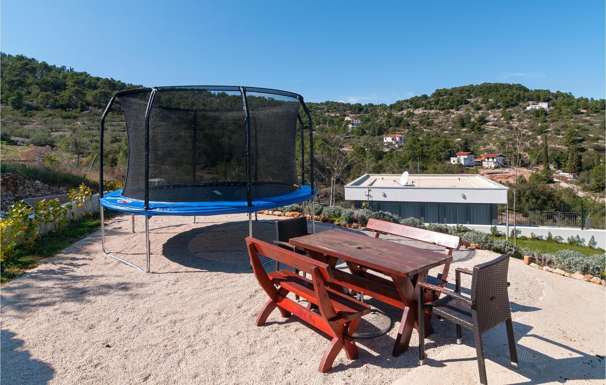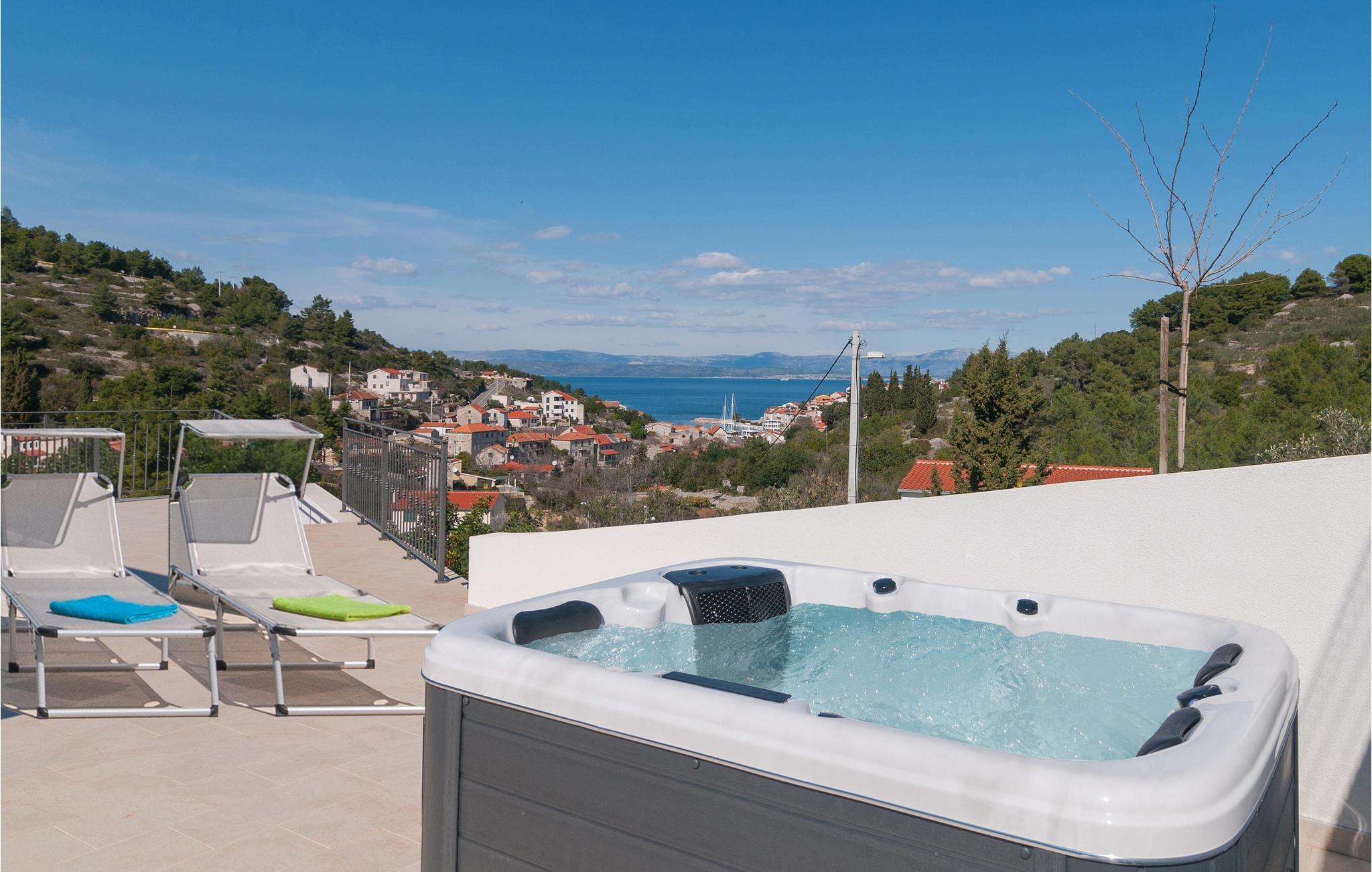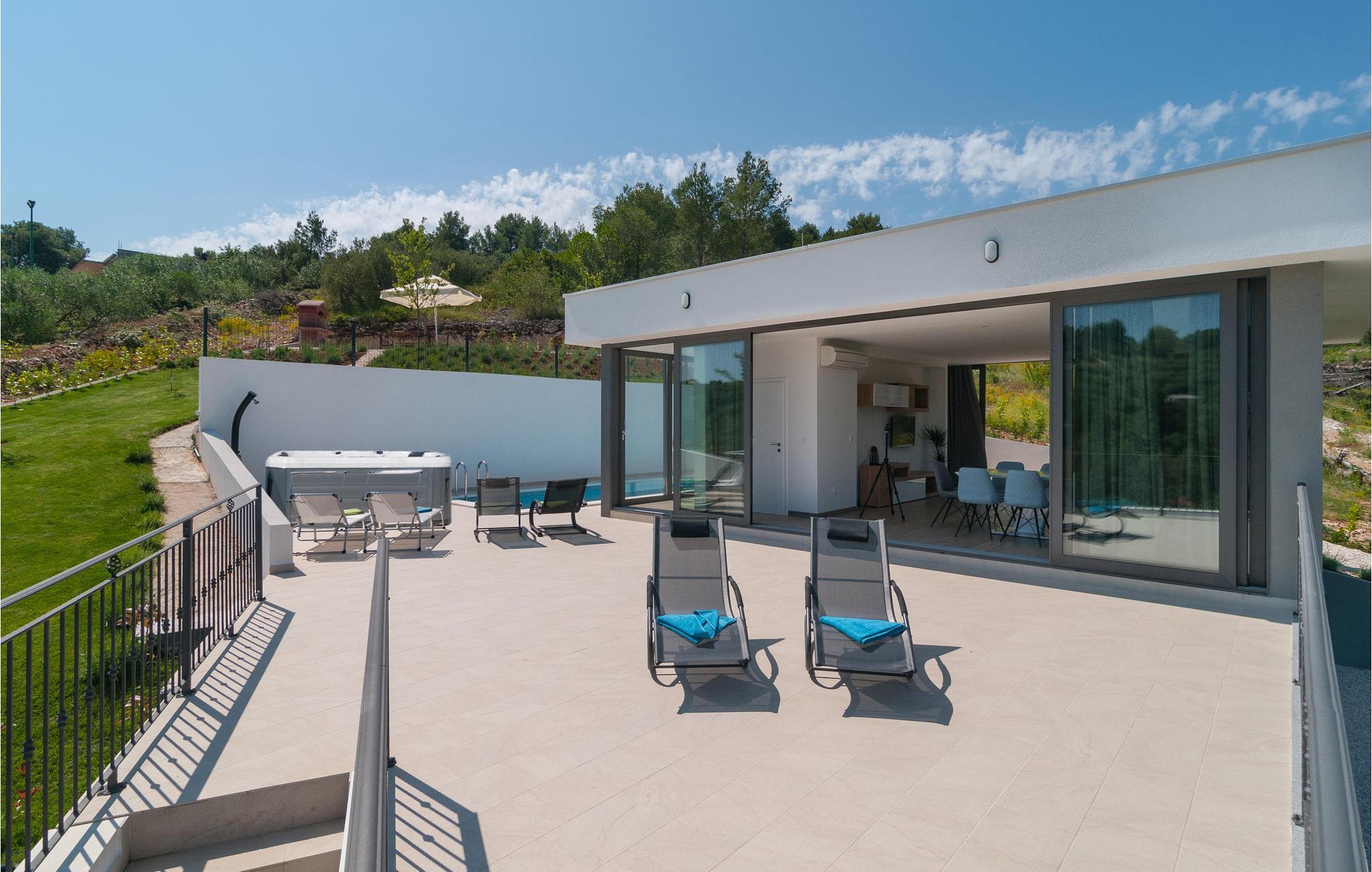I de vakre naturomgivelsene på øya Solta, tilbaketrukket fra den vakre landsbyen Stomorska, ligger dette moderne og stilfullt innredede feriehuset, ideelt for de som ønsker absolutt privatliv. Den romslige terrassen tilbyr en fantastisk utsikt over havet og landskapet. Det forfriskende bassenget og grillområdet vil sikre ditt velvære og avslappende ferie, med barneleker også tilgjengelig for de yngste gjestene. En av de beste måtene å oppdage øya på er sykkel- og turstiene som fører gjennom olivenlunder og små landsbyer til havet.