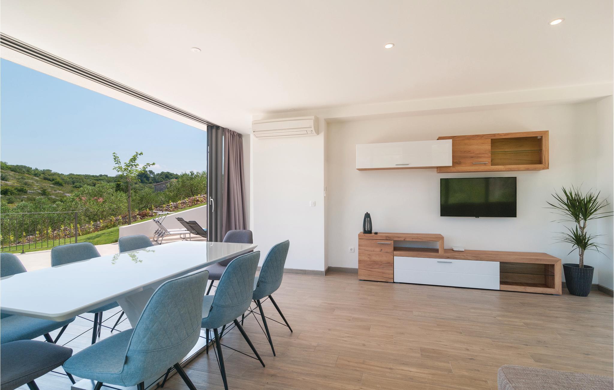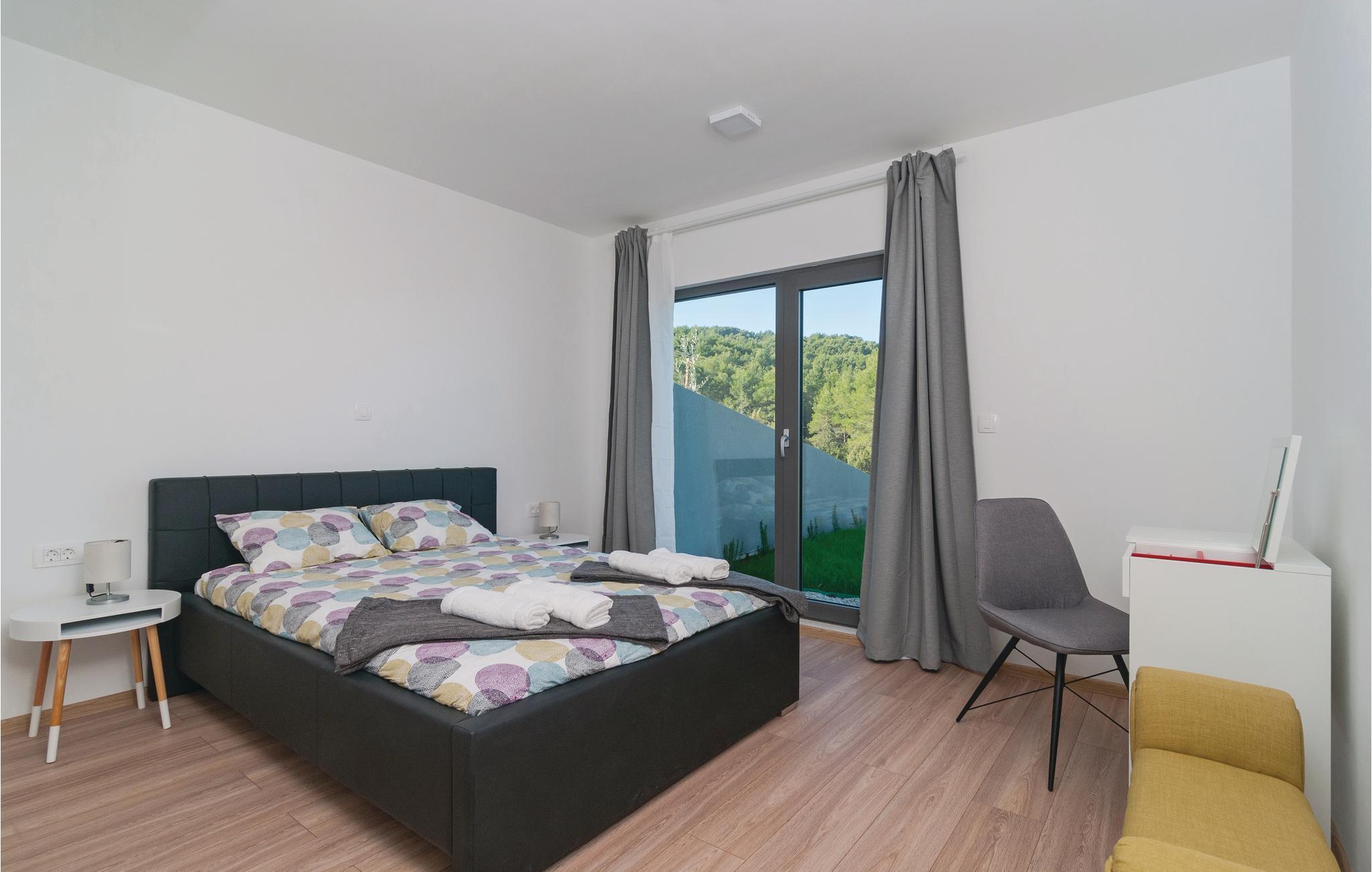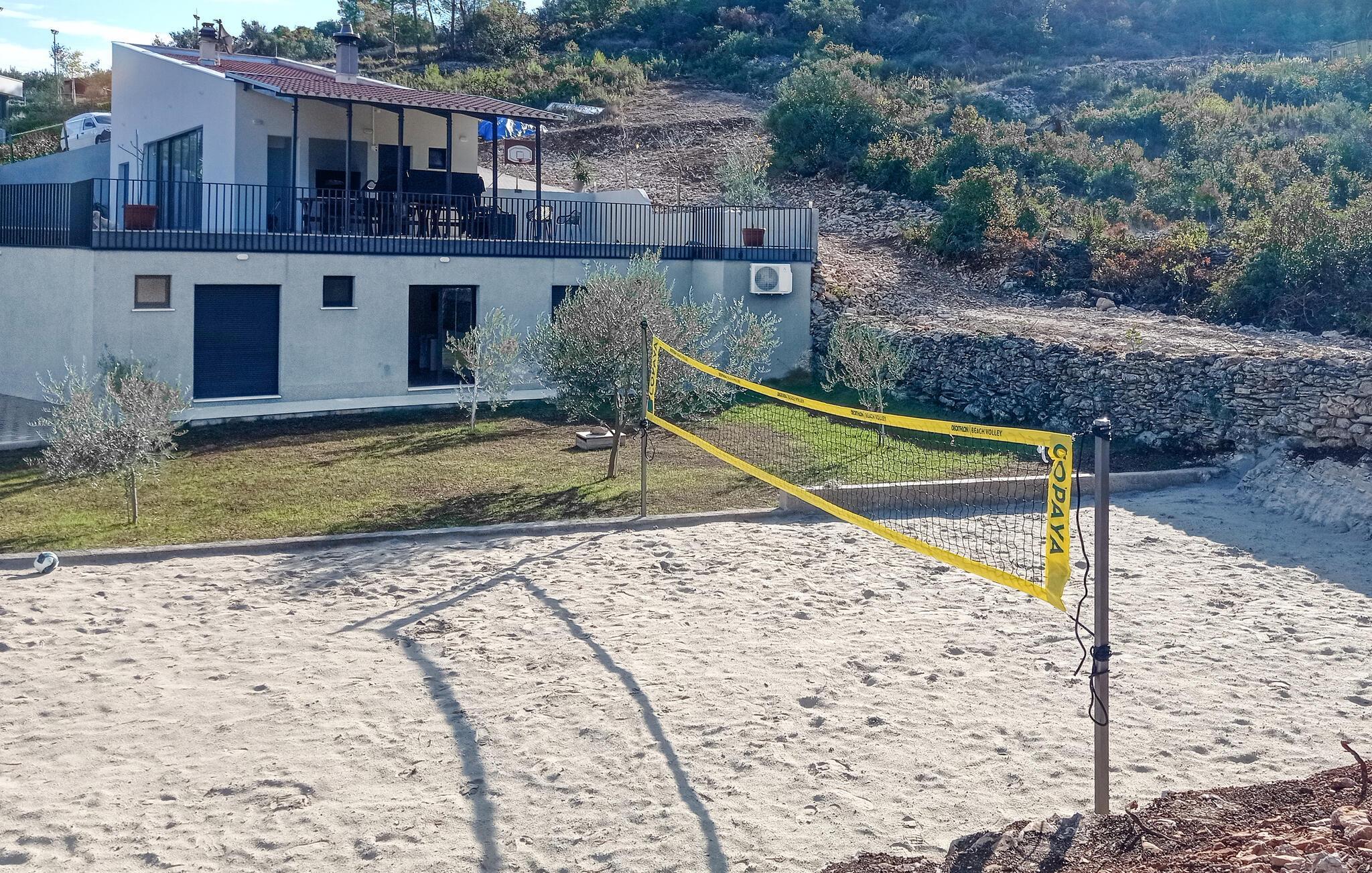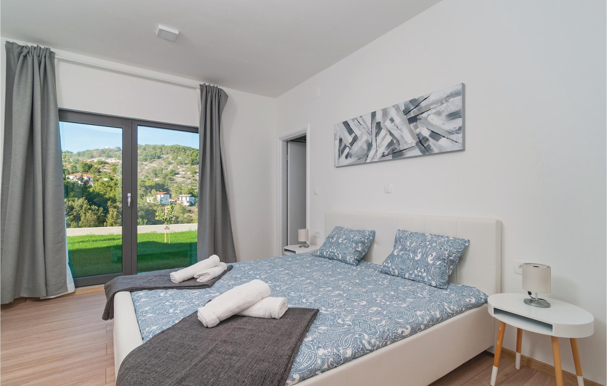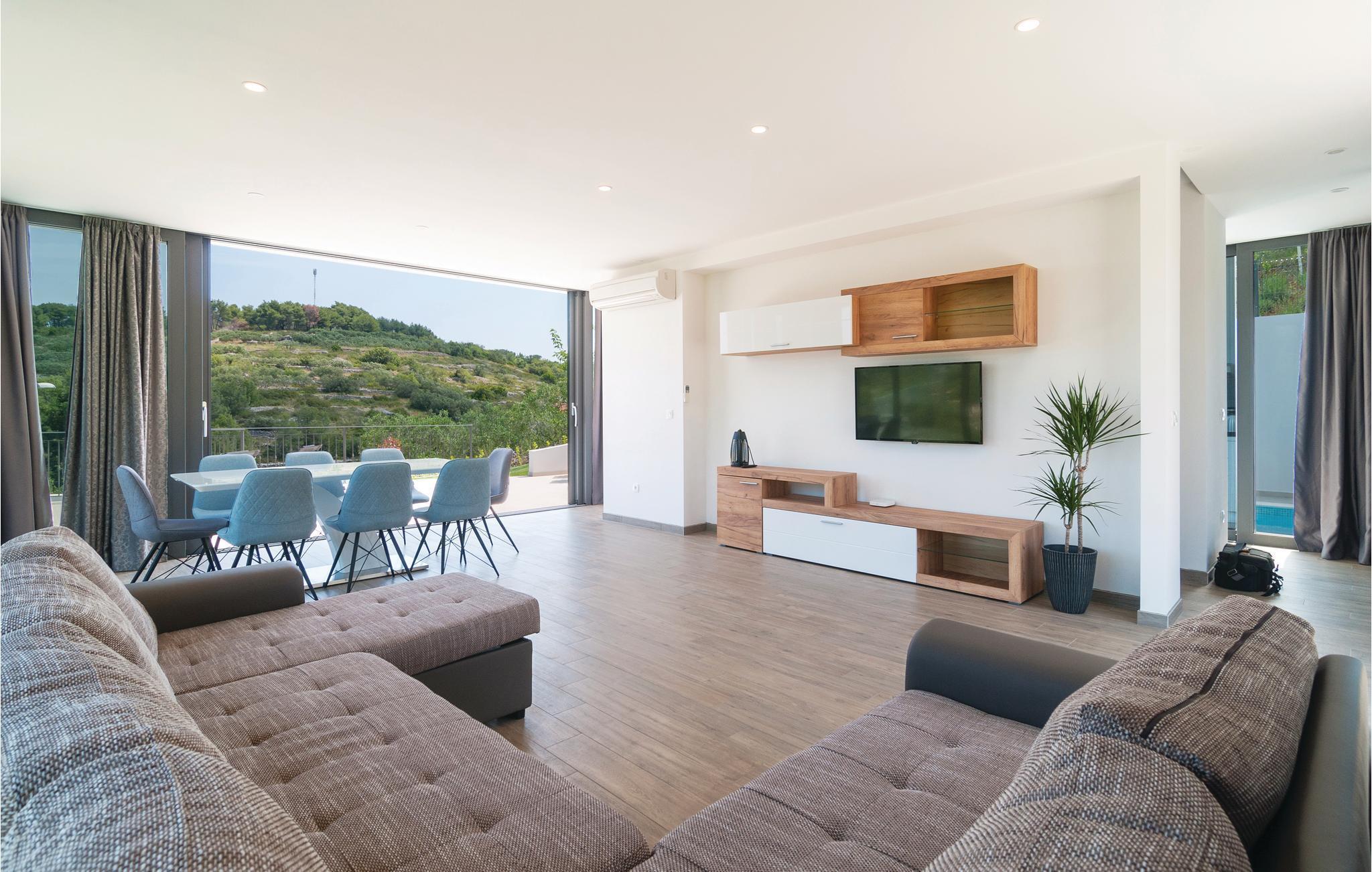 I de vakre naturomgivelsene på øya Solta, tilbaketrukket fra den vakre landsbyen Stomorska, ligger dette moderne og stilfullt innredede feriehuset, ideelt for de som ønsker absolutt privatliv. Den romslige terrassen tilbyr en fantastisk utsikt over havet og landskapet. Det forfriskende bassenget og grillområdet vil sikre ditt velvære og avslappende ferie, med barneleker også tilgjengelig for de yngste gjestene. En av de beste måtene å oppdage øya på er sykkel- og turstiene som fører gjennom olivenlunder og små landsbyer til havet.