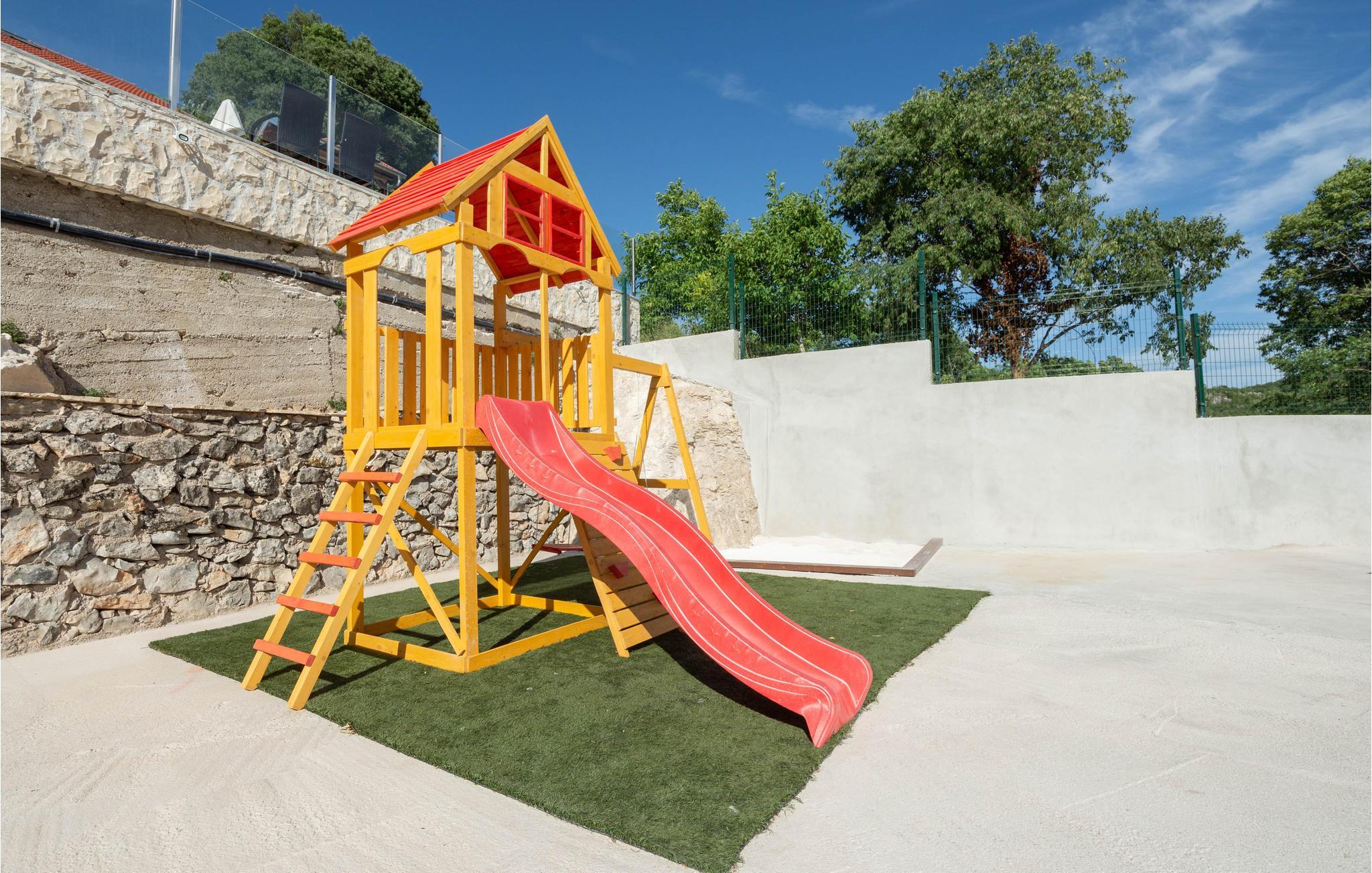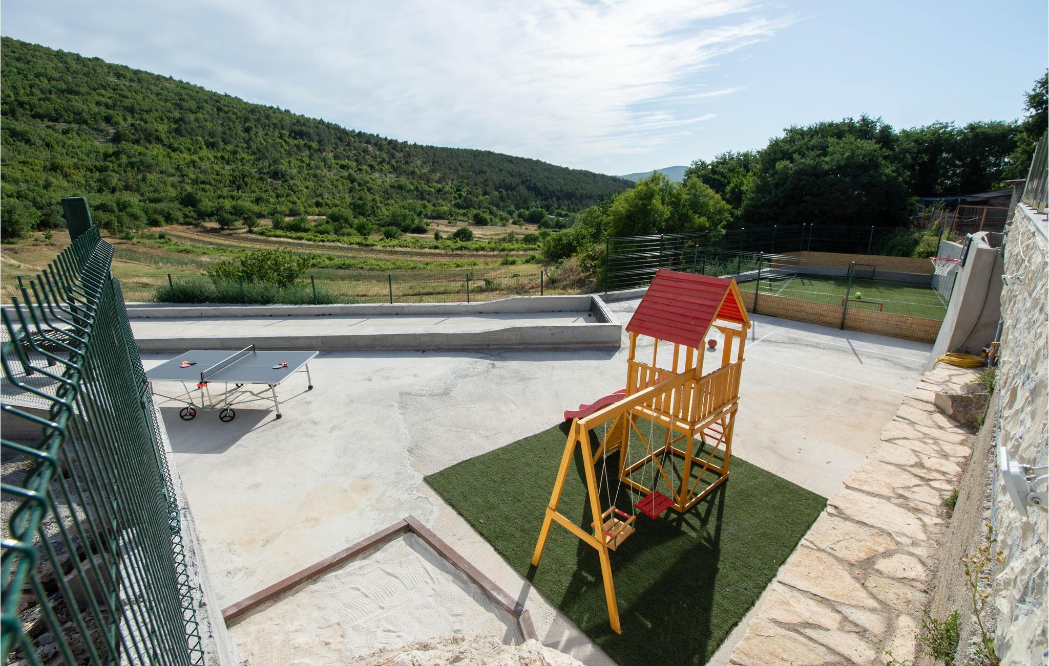I dette feriehuset med privat basseng kan du nyte den typiske utsikten over det idylliske innlandet i Dalmatia. I første etasje er spisestuen og kjøkkenet, samt 2 soverom og et bad. På loftet er det ytterligere 2 soverom. Feriehuset har også et tradisjonelt dalmatisk røykhus, foran det er et lysthus hvor du kan tilbringe hyggelige sommerkvelder.