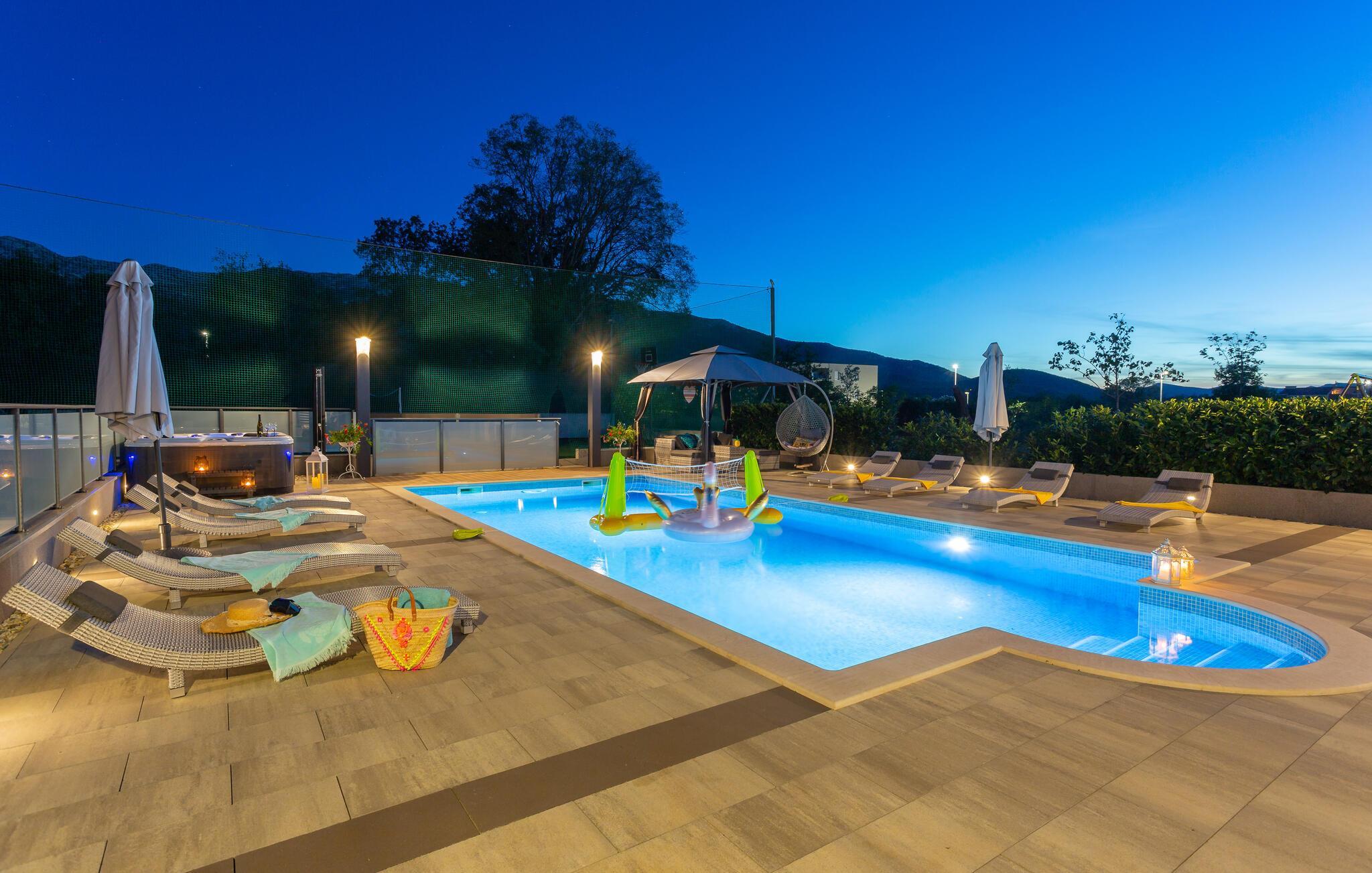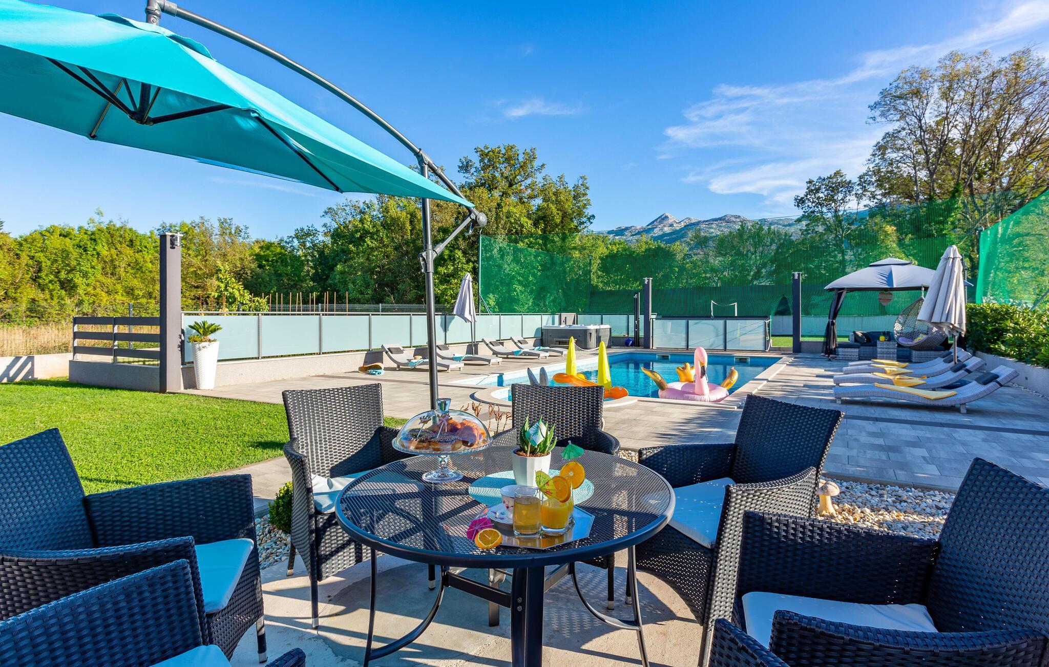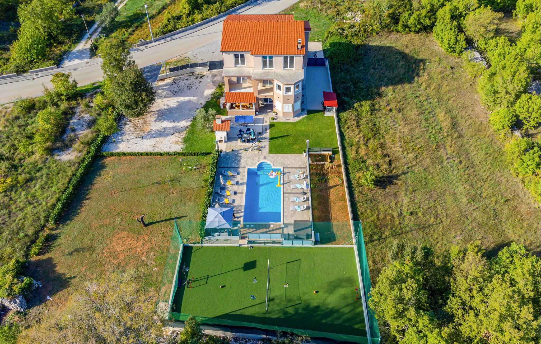 Velkommen til ditt drømmeferiehus i Dugopolje. Nyt ferien i denne moderne og smakfullt innredede boligen. Start dagen på den koselige terrassen med en solid frokost, og la blikket vandre over det romslige uteområdet med basseng og sitteplasser. De komfortable solsengene ved bassenget innbyr til avslapping og soling, mens boblebadet sørger for ren avslapning. Den velstelte hagen har en mursteinsgrill for koselige grillkvelder under stjernene. Sett deg godt til rette om kvelden, nyt et glass vin og den beroligende atmosfæren på dette unike stedet.