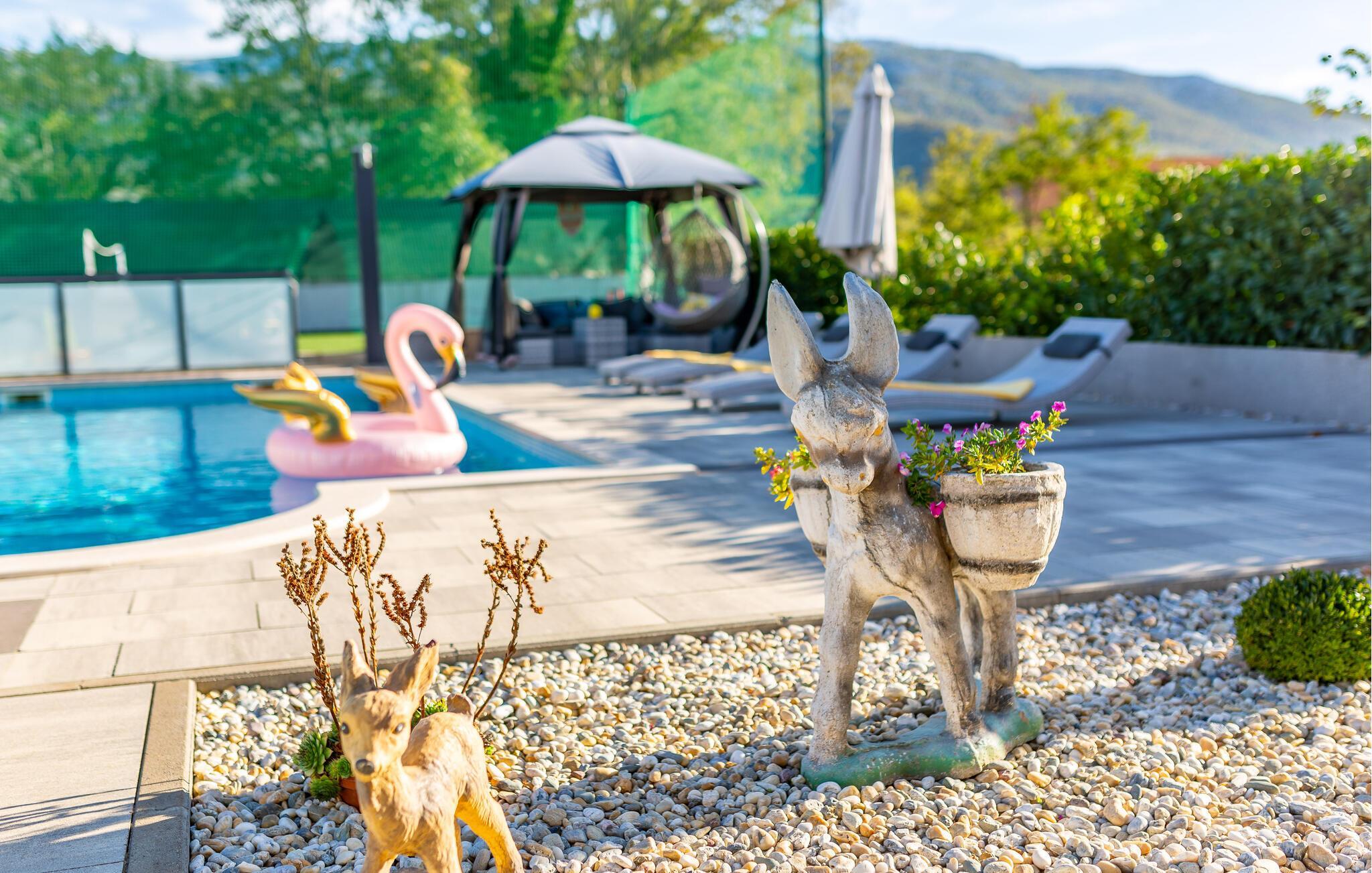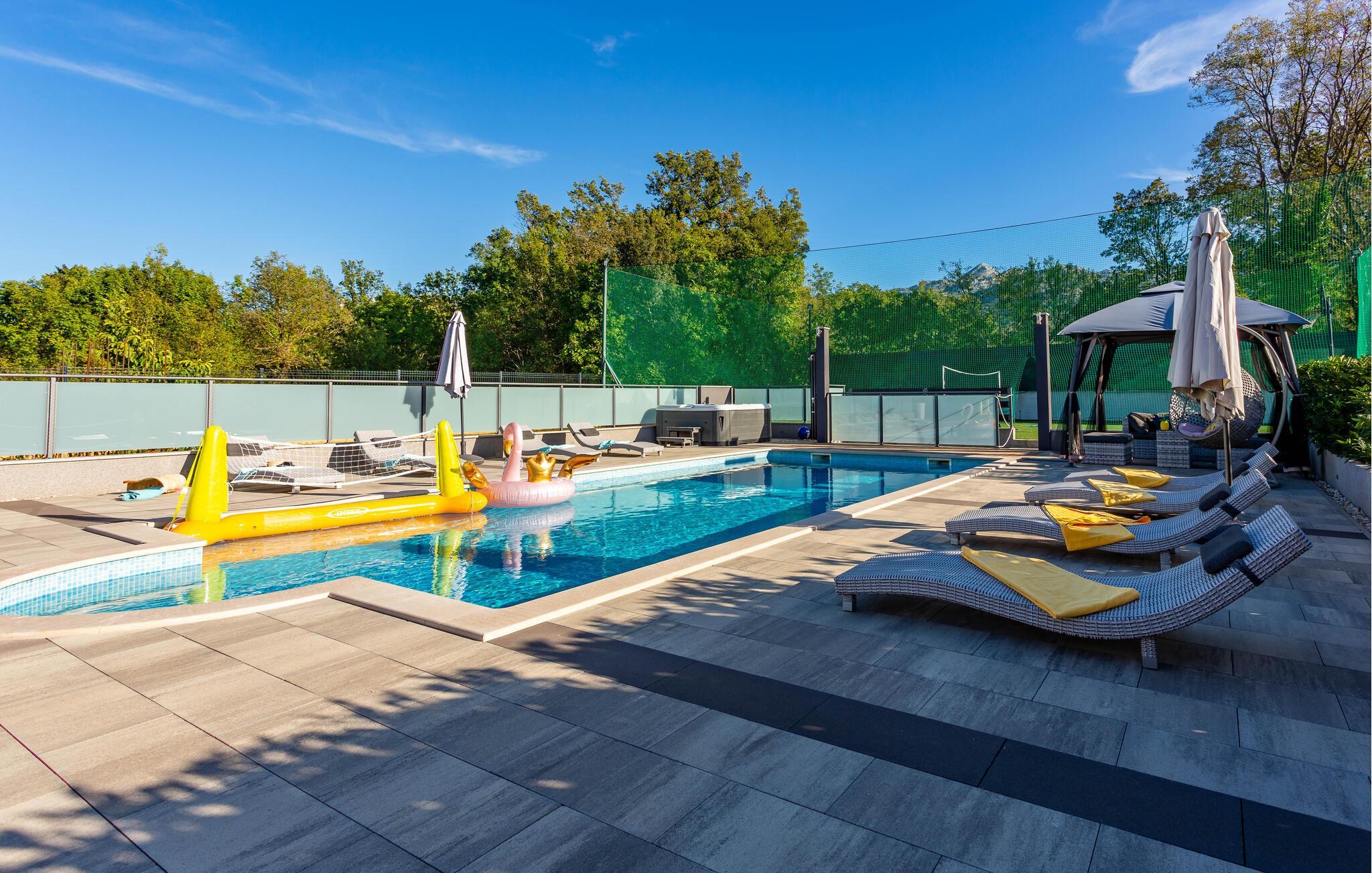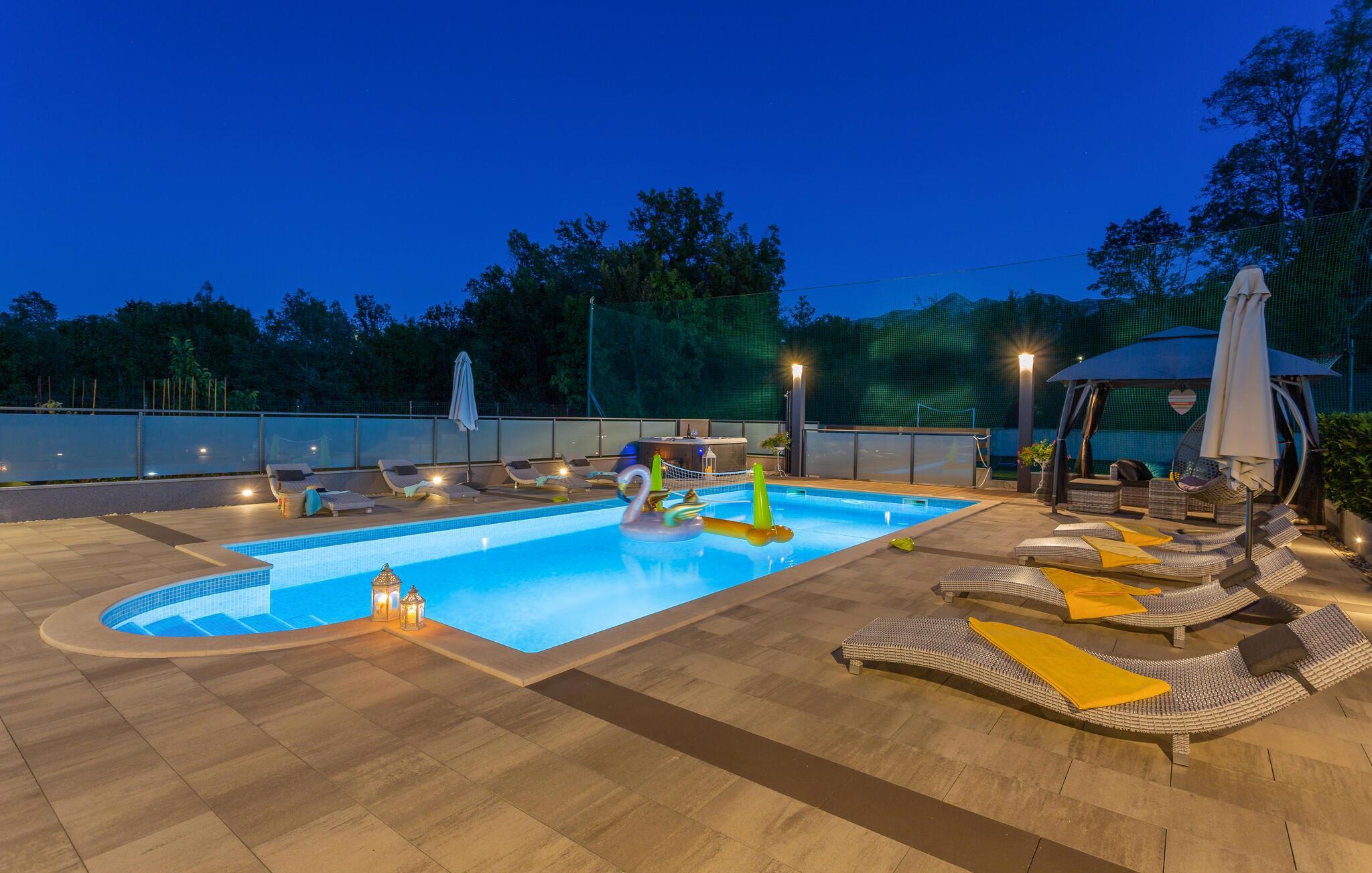 Velkommen til ditt drømmeferiehus i Dugopolje. Nyt ferien i denne moderne og smakfullt innredede boligen. Start dagen på den koselige terrassen med en solid frokost, og la blikket vandre over det romslige uteområdet med basseng og sitteplasser. De komfortable solsengene ved bassenget innbyr til avslapping og soling, mens boblebadet sørger for ren avslapning. Den velstelte hagen har en mursteinsgrill for koselige grillkvelder under stjernene. Sett deg godt til rette om kvelden, nyt et glass vin og den beroligende atmosfæren på dette unike stedet.