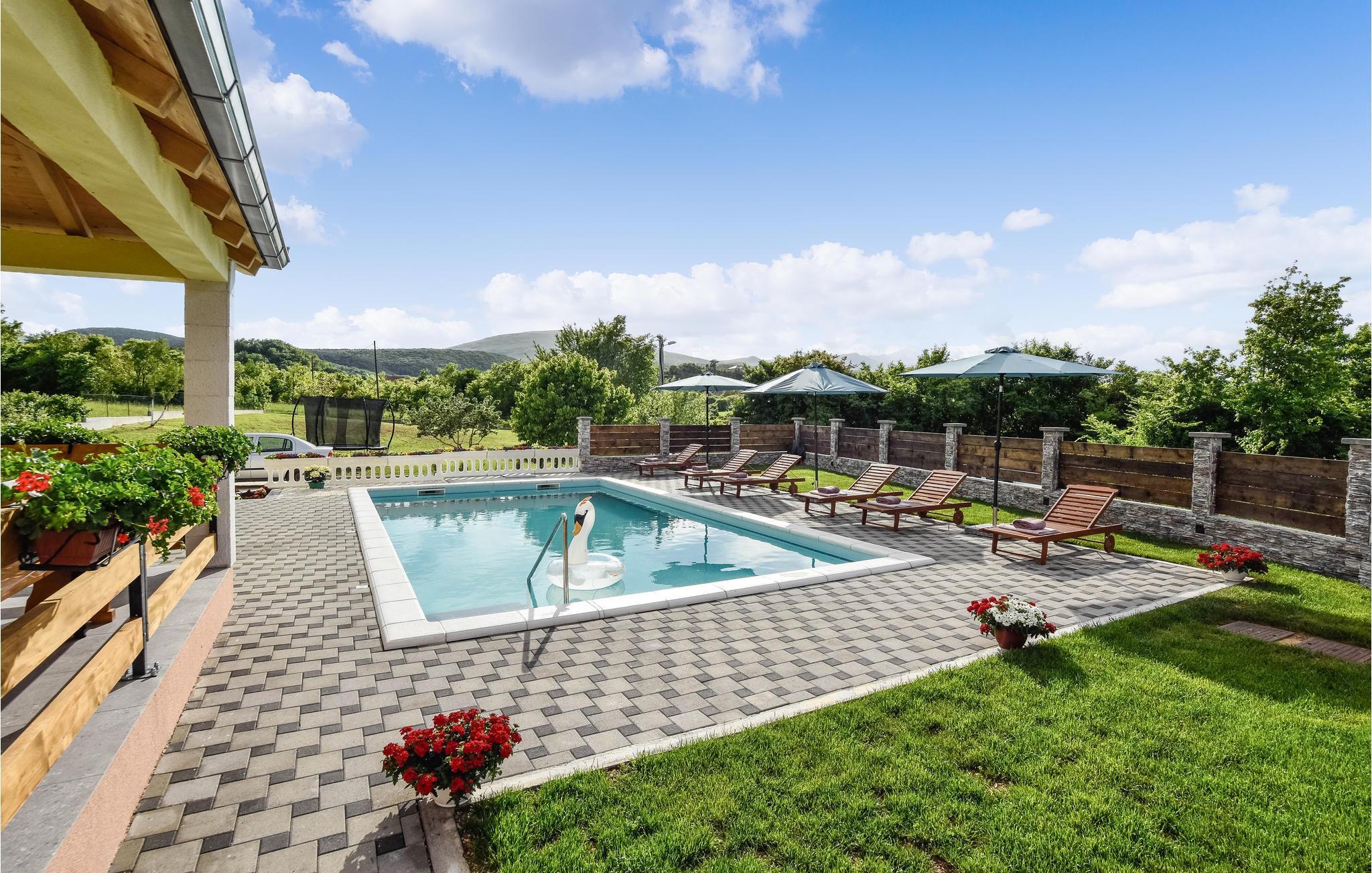 Dette feriehuset med basseng ligger i det dalmatiske innlandet. Interiøret er fordelt på to etasjer, mens det i den nedre delen er en stue med kjøkken og to bad, i første etasje er det fire soverom og et bad. Den inngjerdede hagen tilbyr et svømmebasseng, ideelt for forfriskning på varme sommerdager.