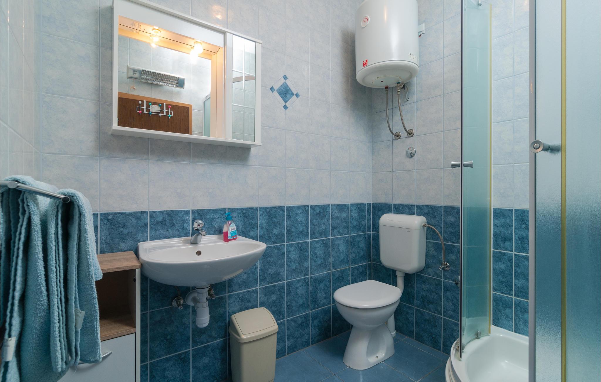 - WC med varmt og kaldt vann, Dusj