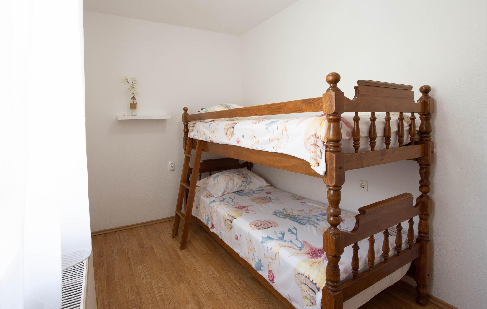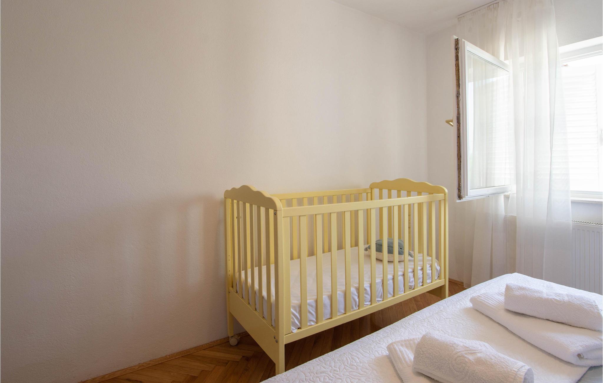 Denne boligen tilbyr deg et koselig interiør, utstyrt med alt du trenger for ferien i Kroatia. Utenfor har du tilgang til en balkong hvor du kan fange de første solstrålene, samt en terrasse med solsenger og basseng for å slappe av.