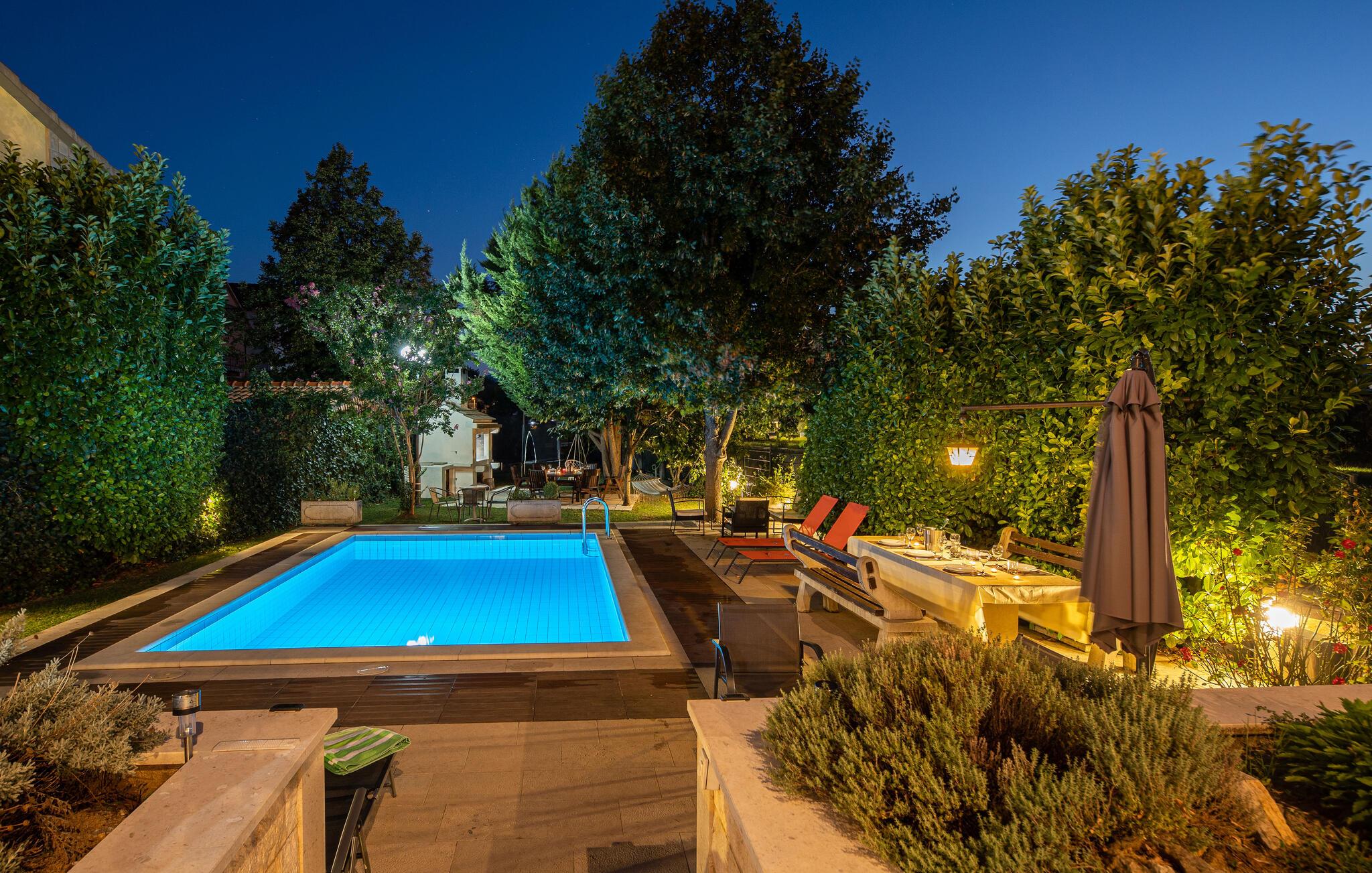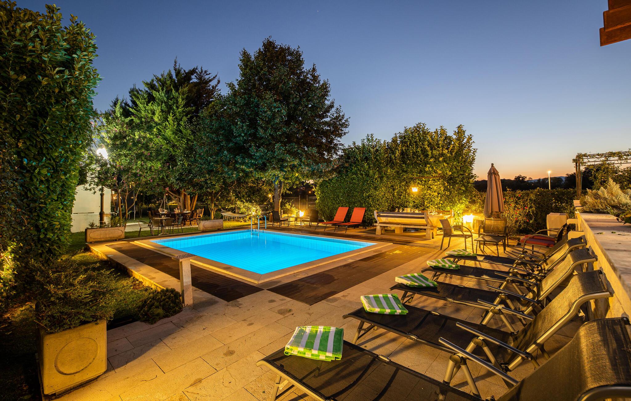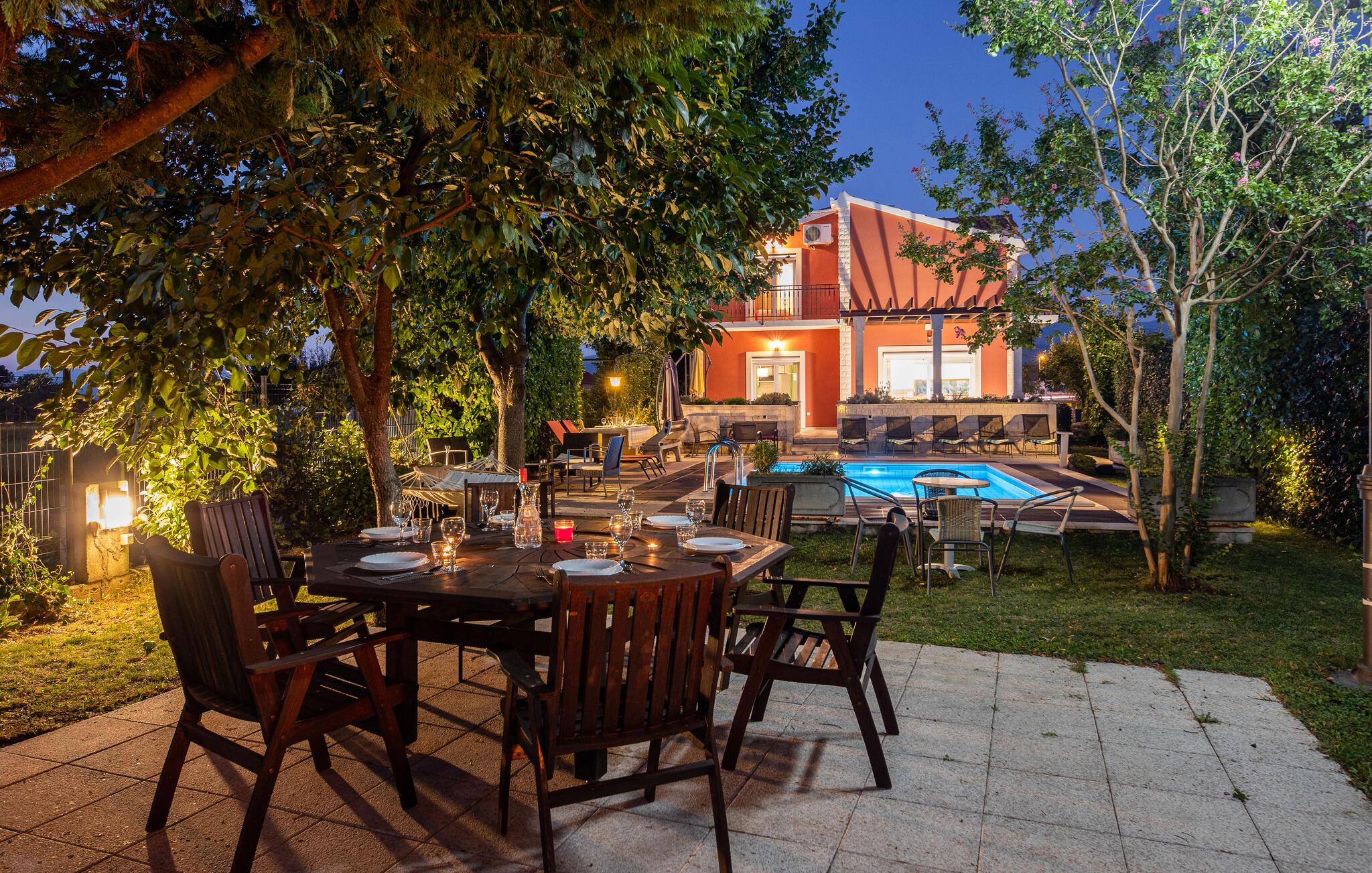 Dette vakre og komfortable feriehuset med oppvarmet basseng ligger i nærheten av elven Cetina og er den ideelle rammen for en uforglemmelig og avslappende ferie. Det er moderne innredet og kvalitativt utstyrt slik at du kan tilbringe en hyggelig familieferie her. Den store terrassen går inn i den vakre plenen der bassenget ligger. Det er mulig å fiske og svømme i den karstiske elven Cetina. Sentrum av den lille dalmatiske landsbyen Trilj ligger en 5-minutters spasertur fra huset og har mange gastronomiske og kommersielle tilbud å tilby. En spesiell lokal spesialitet er ørret.