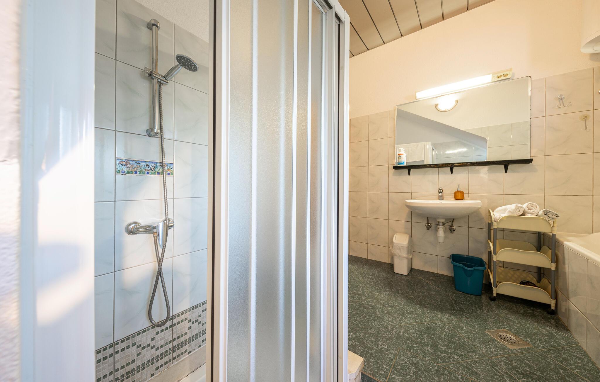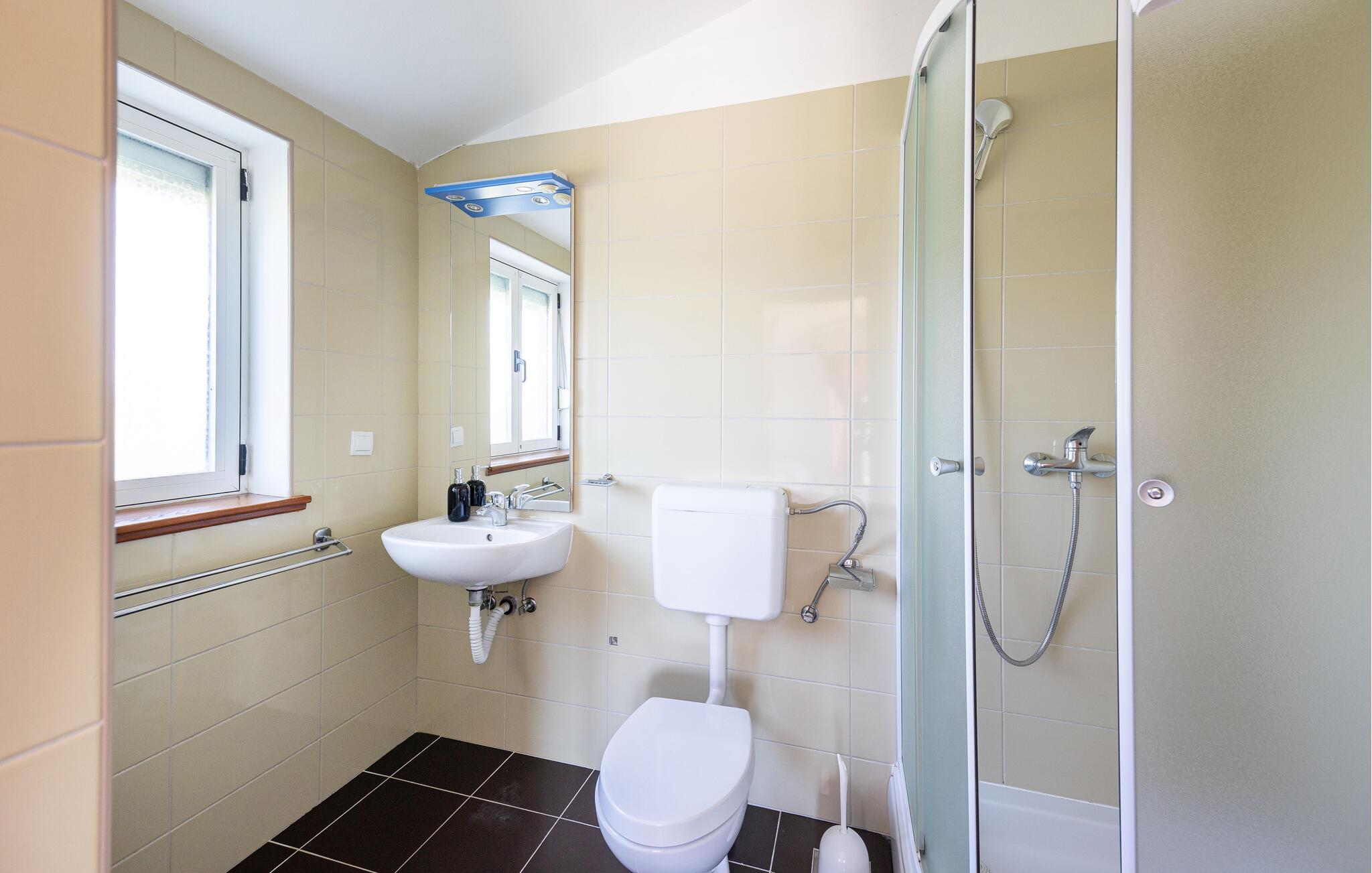 - WC med varmt og kaldt vann, Dusj