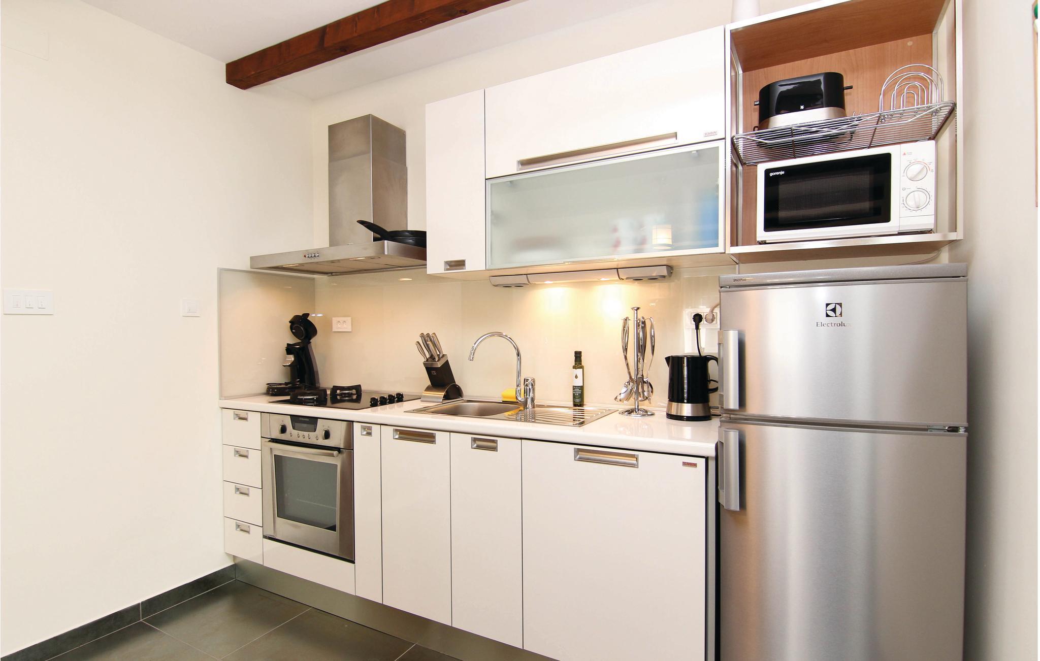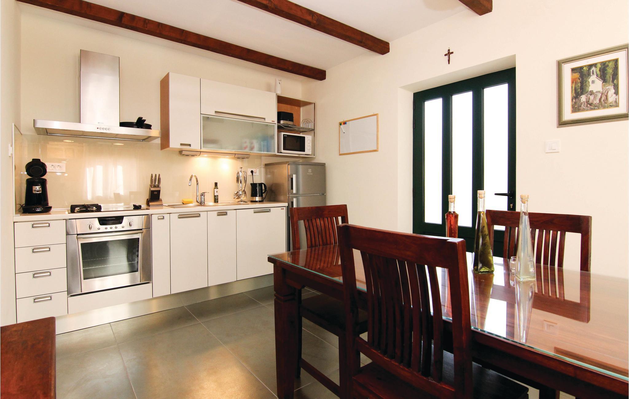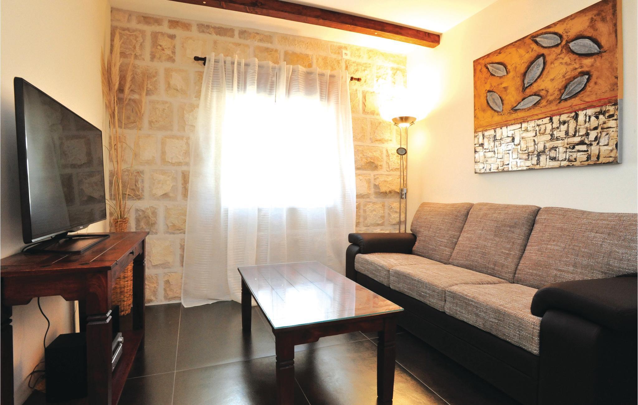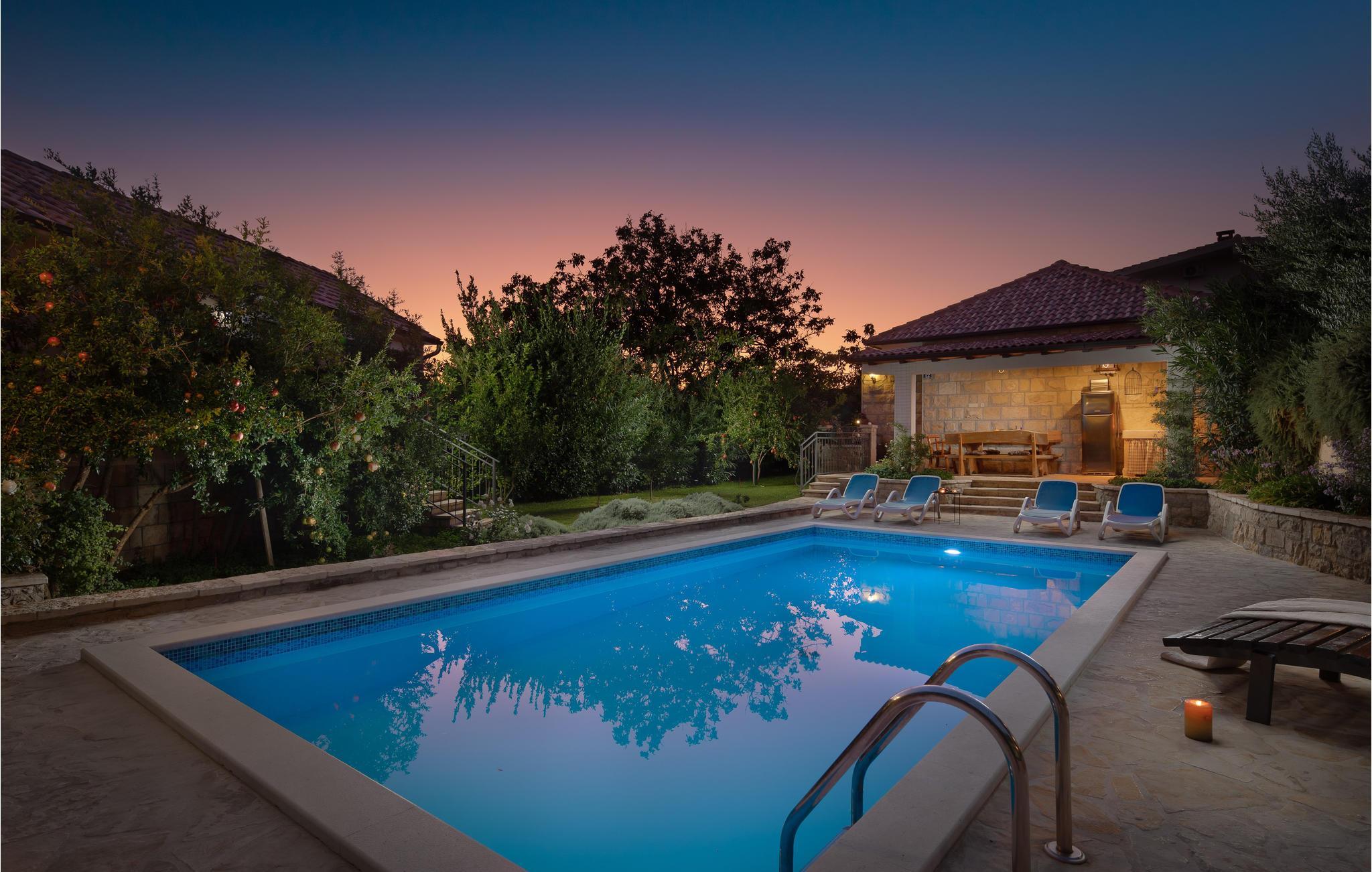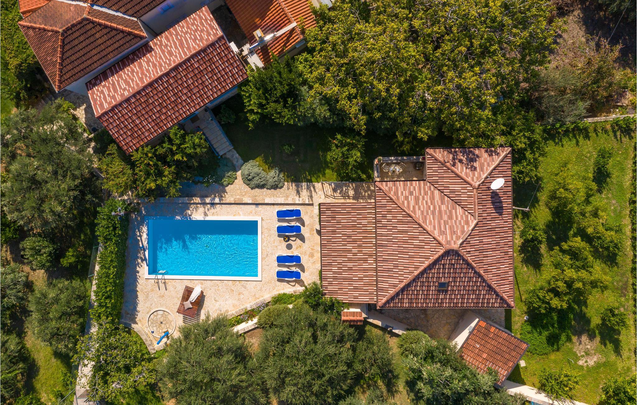 I en idyllisk naturlig beliggenhet i Zrnovnica har du dette nydelige feriehuset med et stilig interiør. Eiendommen består av 2 bygninger, en med kjøkken, stue, 2 soverom og romslig bad, den andre med stue, soverom og bad. Foran huset er en overbygd terrasse med grillplass, ved siden av er også bassenget hvor du kan ha det gøy. Ekstra toalett utenfor. Hvis du liker å spille golf eller tennis, er det baner ca 1 km unna mot et gebyr. På få minutters kjøretur kan du også nå sandstrender og den historiske byen Split.